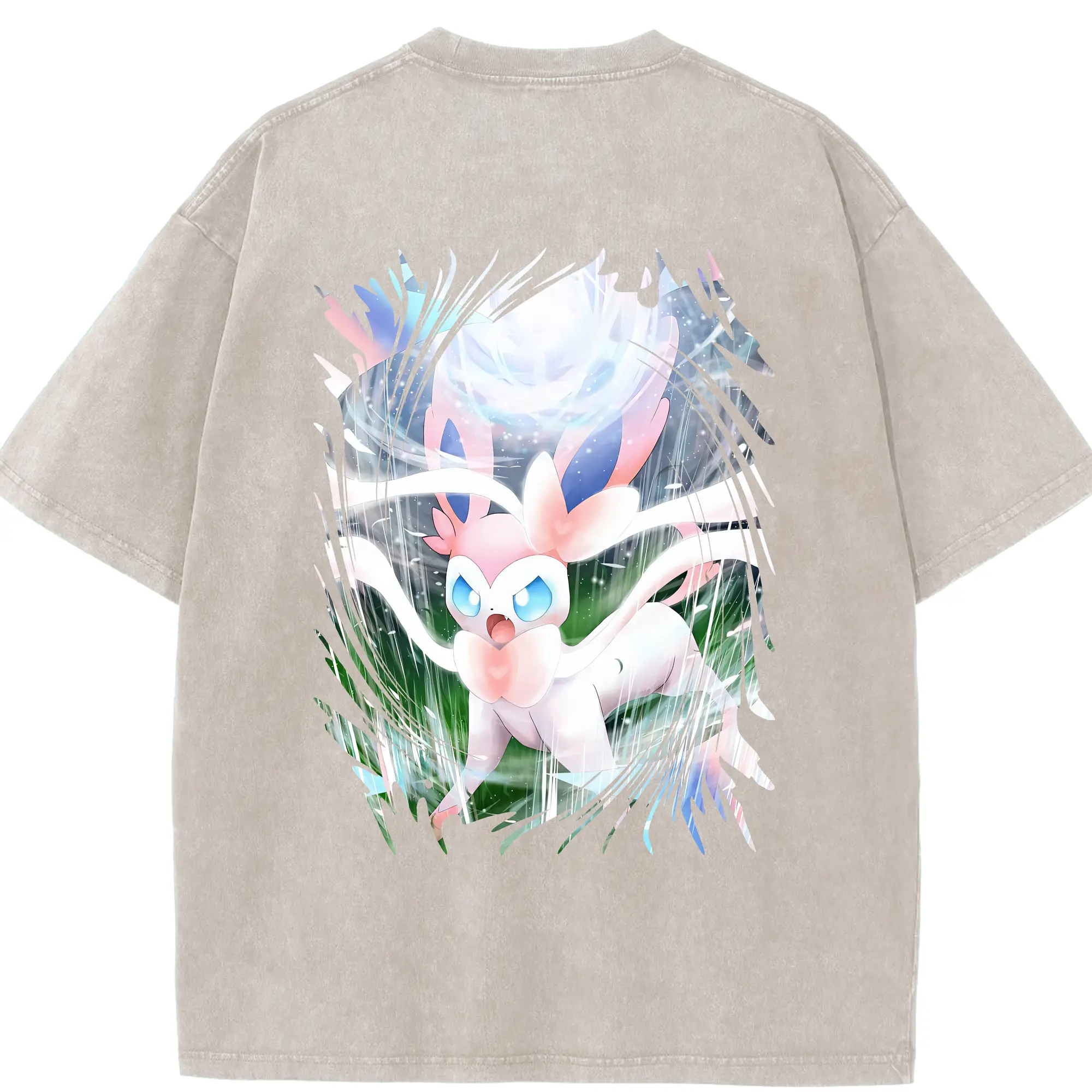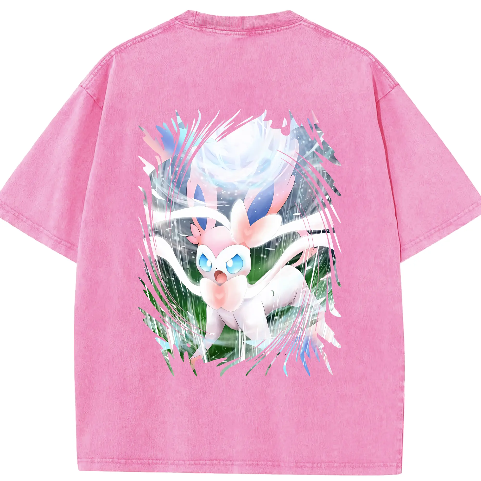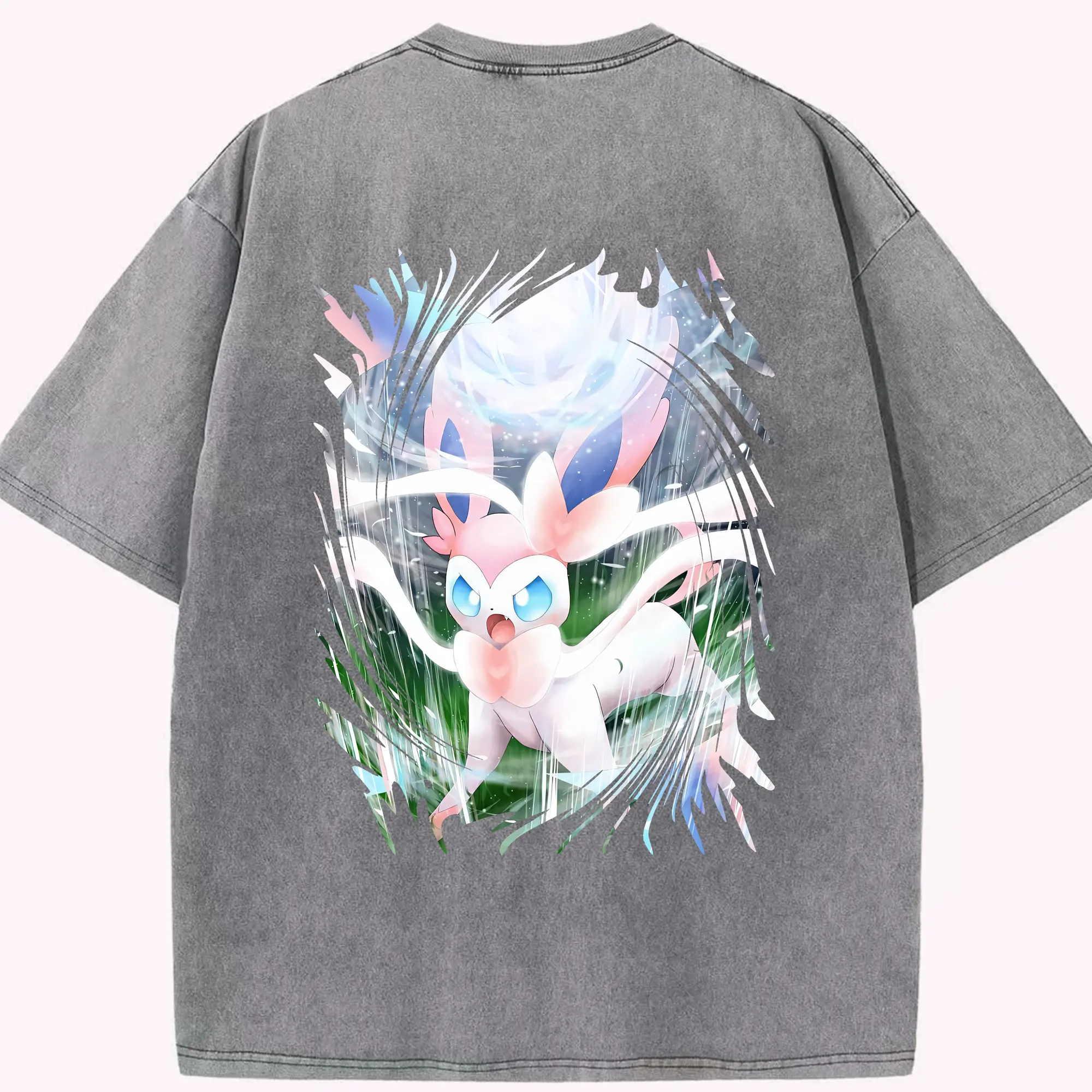 ポケモン グッズ,ニンフィア - 綿100% 半袖Tシャツ ・ バックプリント ・ 快適 通気性 ・ 日常使い 散歩 スポーツ用