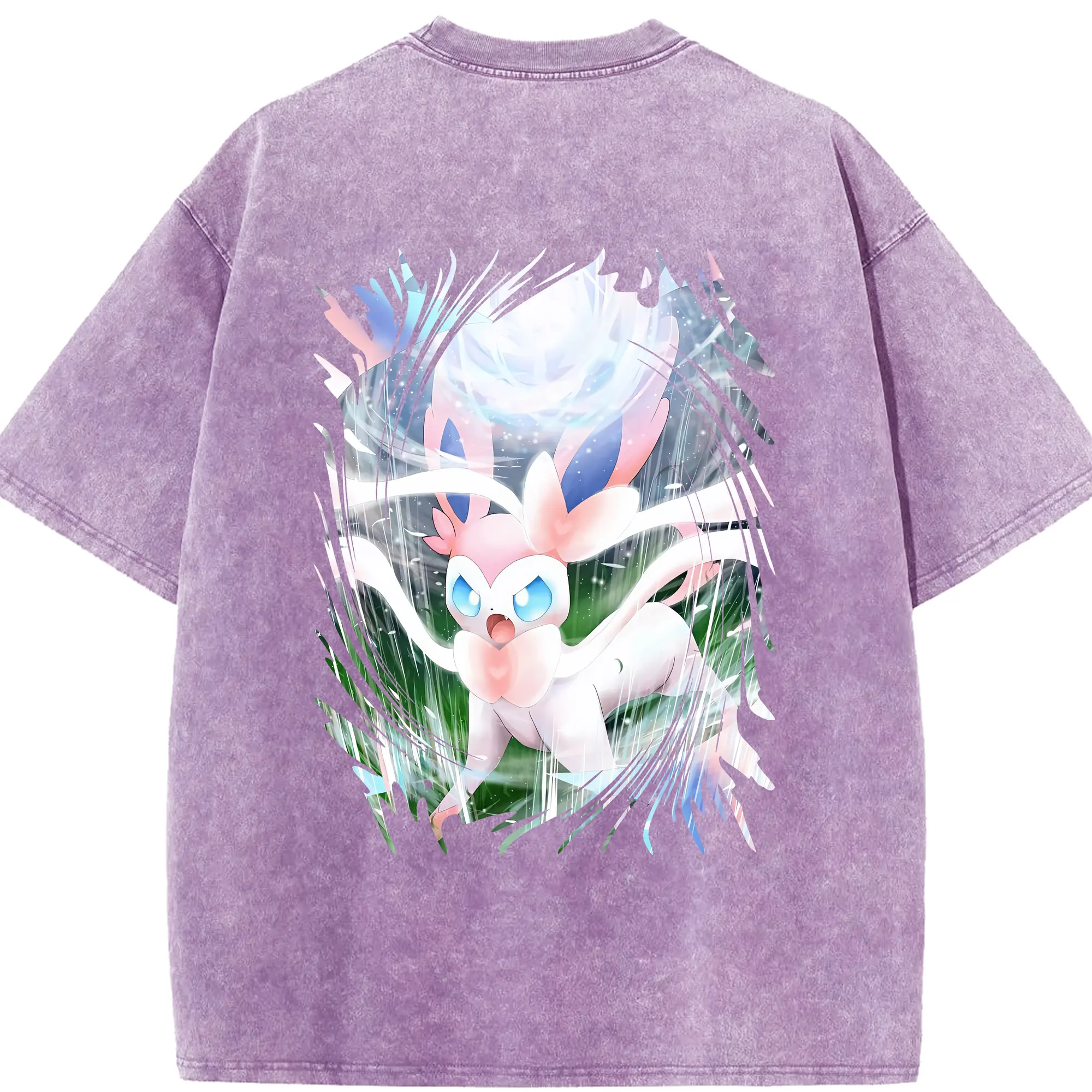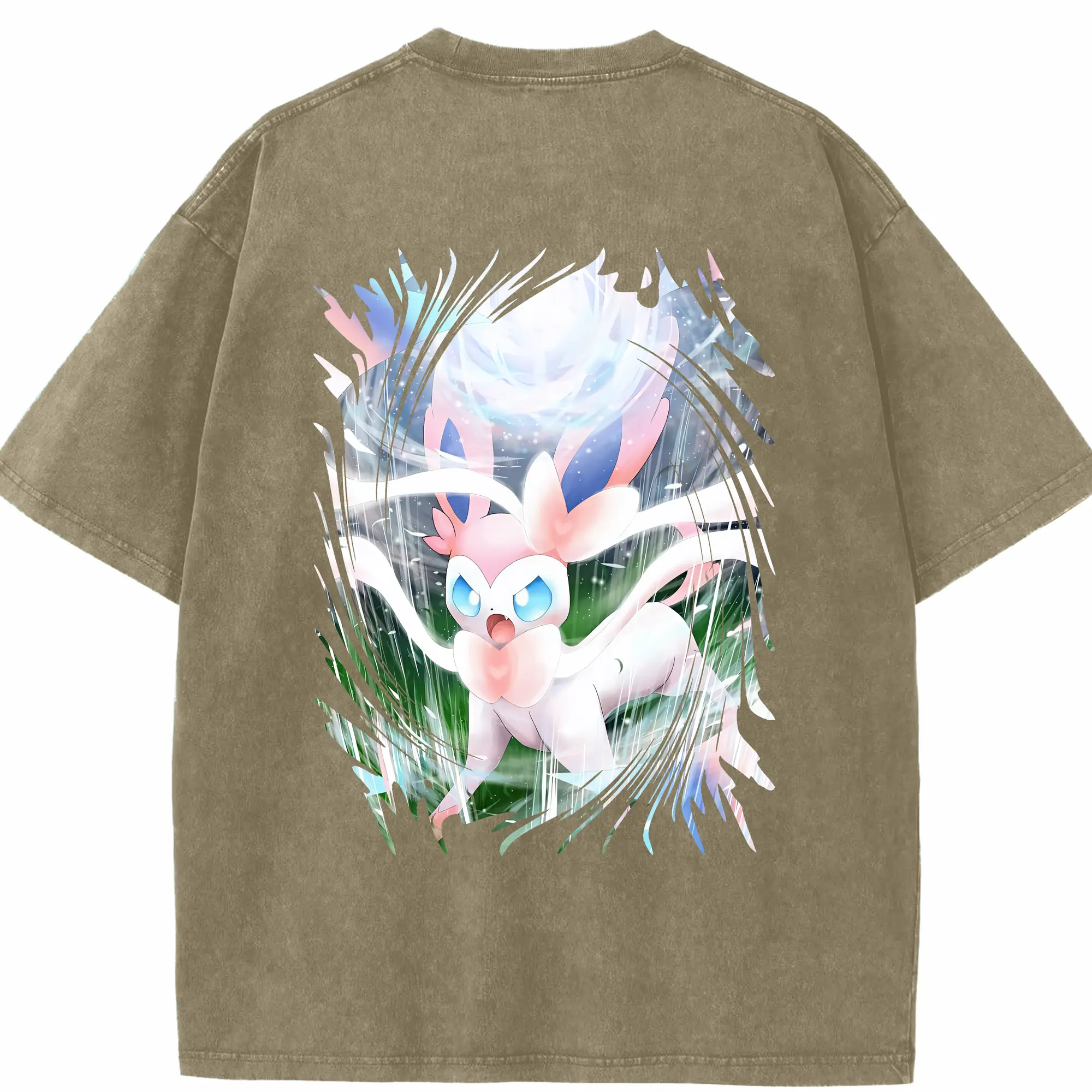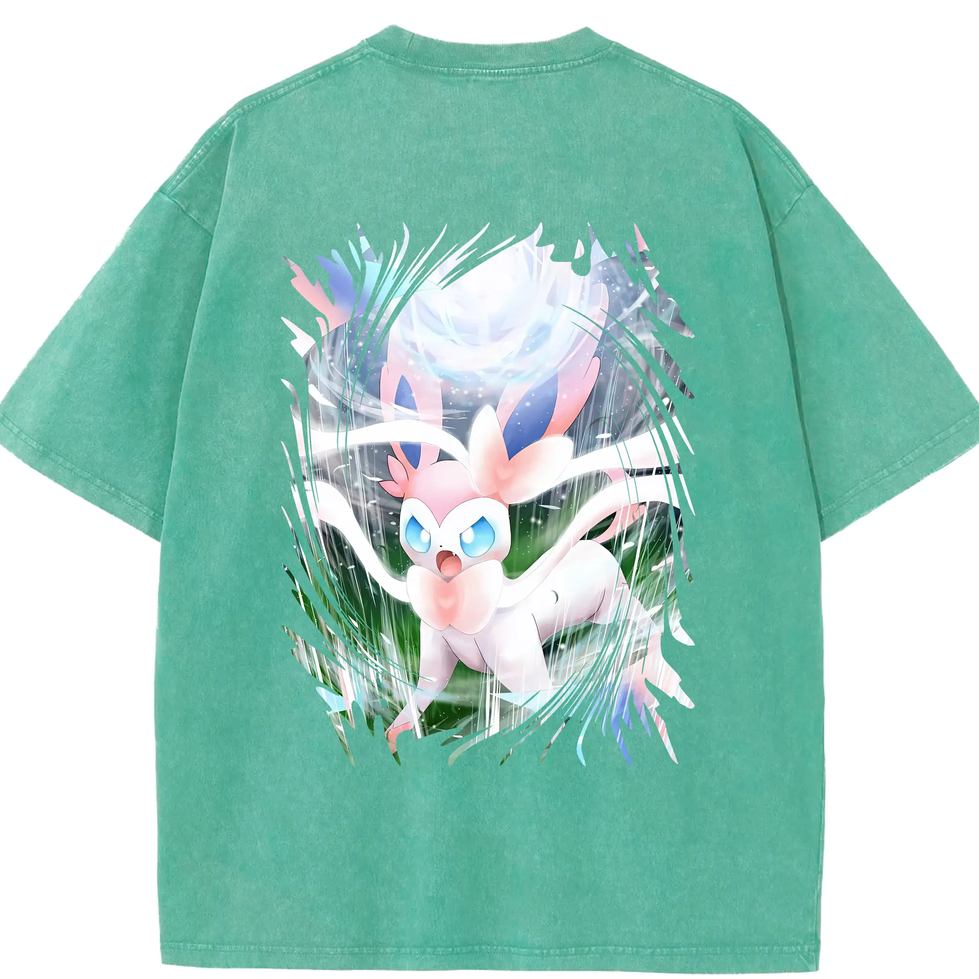 ポケモン グッズ,ニンフィア - 綿100% 半袖Tシャツ ・ バックプリント ・ 快適 通気性 ・ 日常使い 散歩 スポーツ用