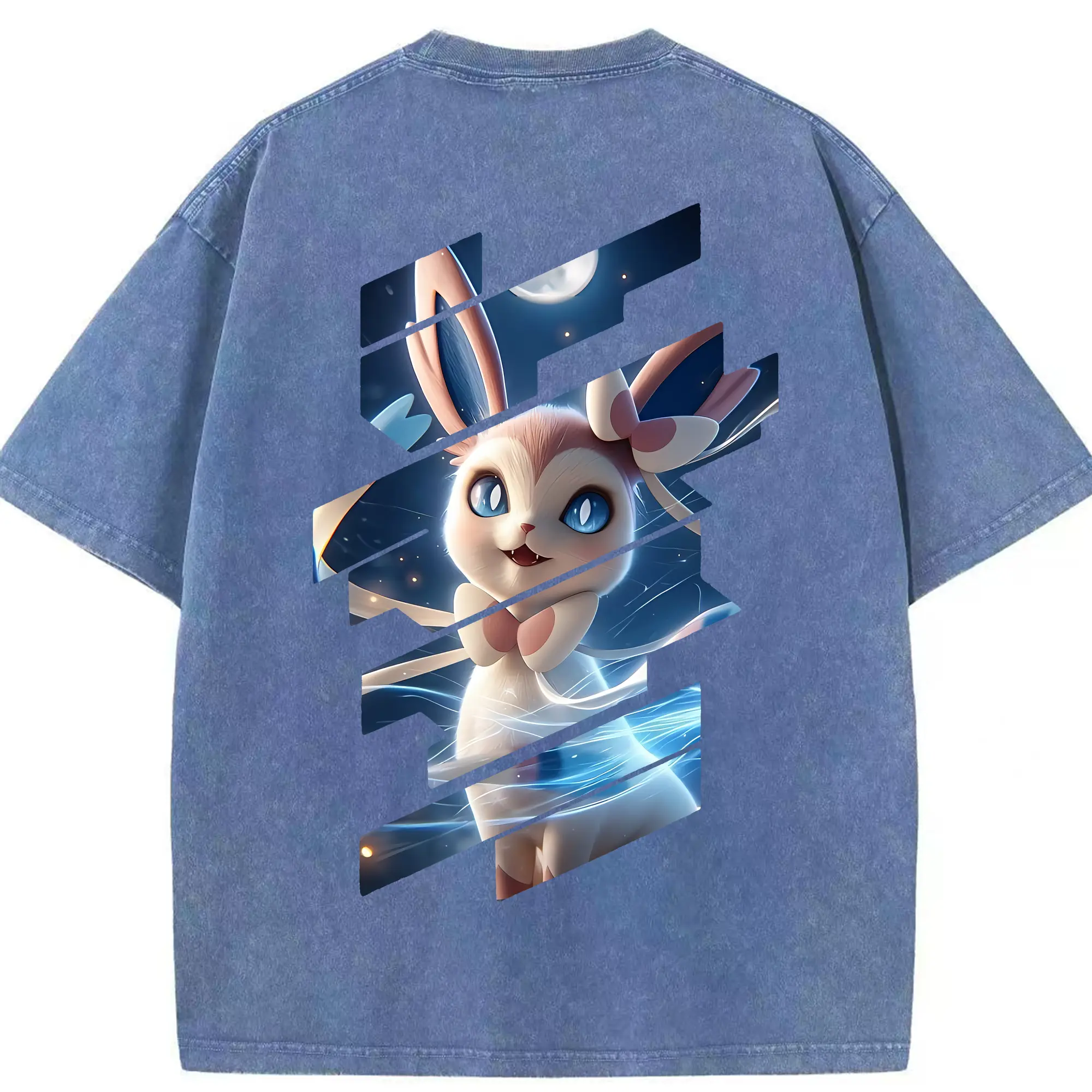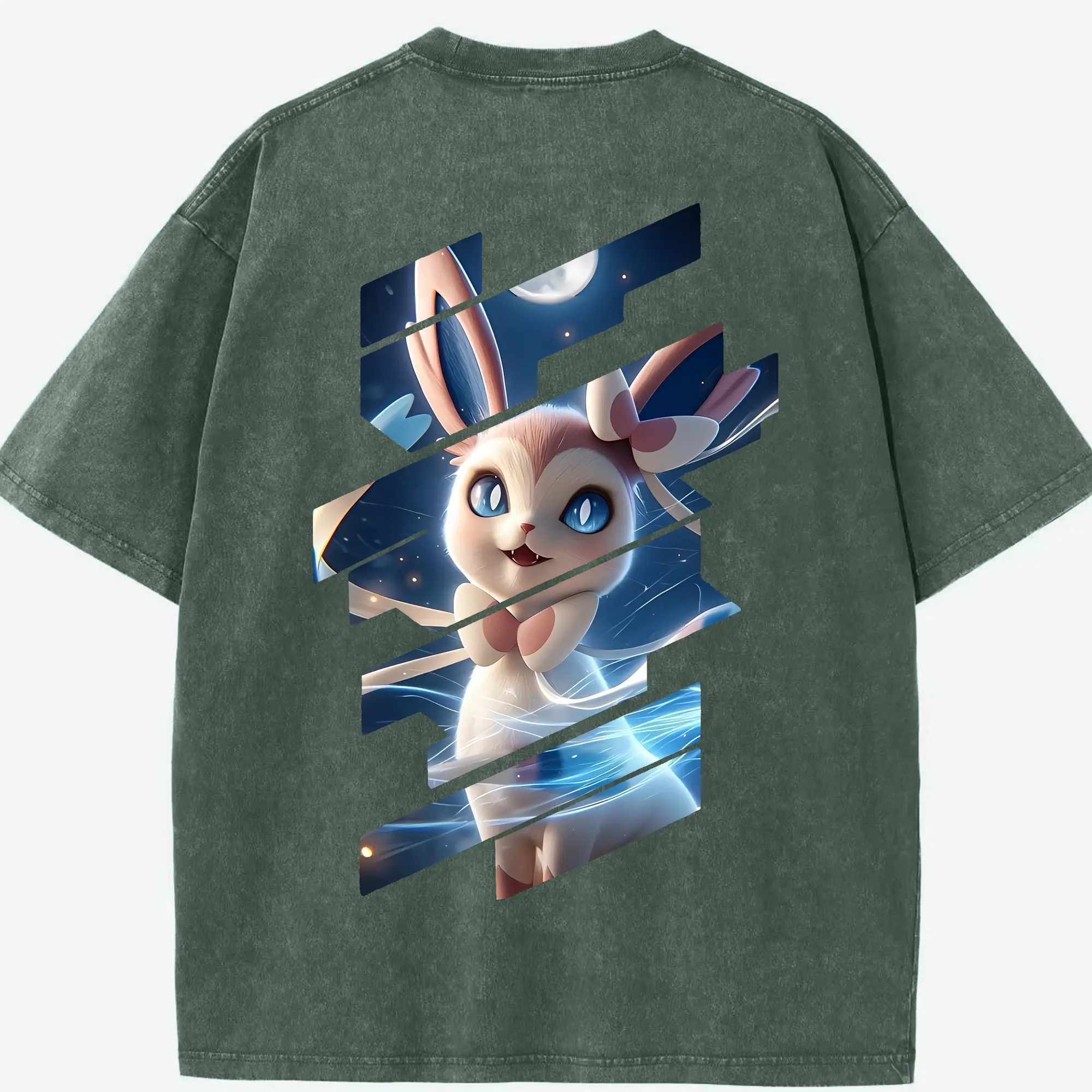 ポケモン グッズ,ニンフィア - 綿100% ヴィンテージ風 半袖Tシャツ ・ フロントプリント ・ 柔らか肌触り ・ 通気性 快適 ・ スポーツ カジュアル 外出用
