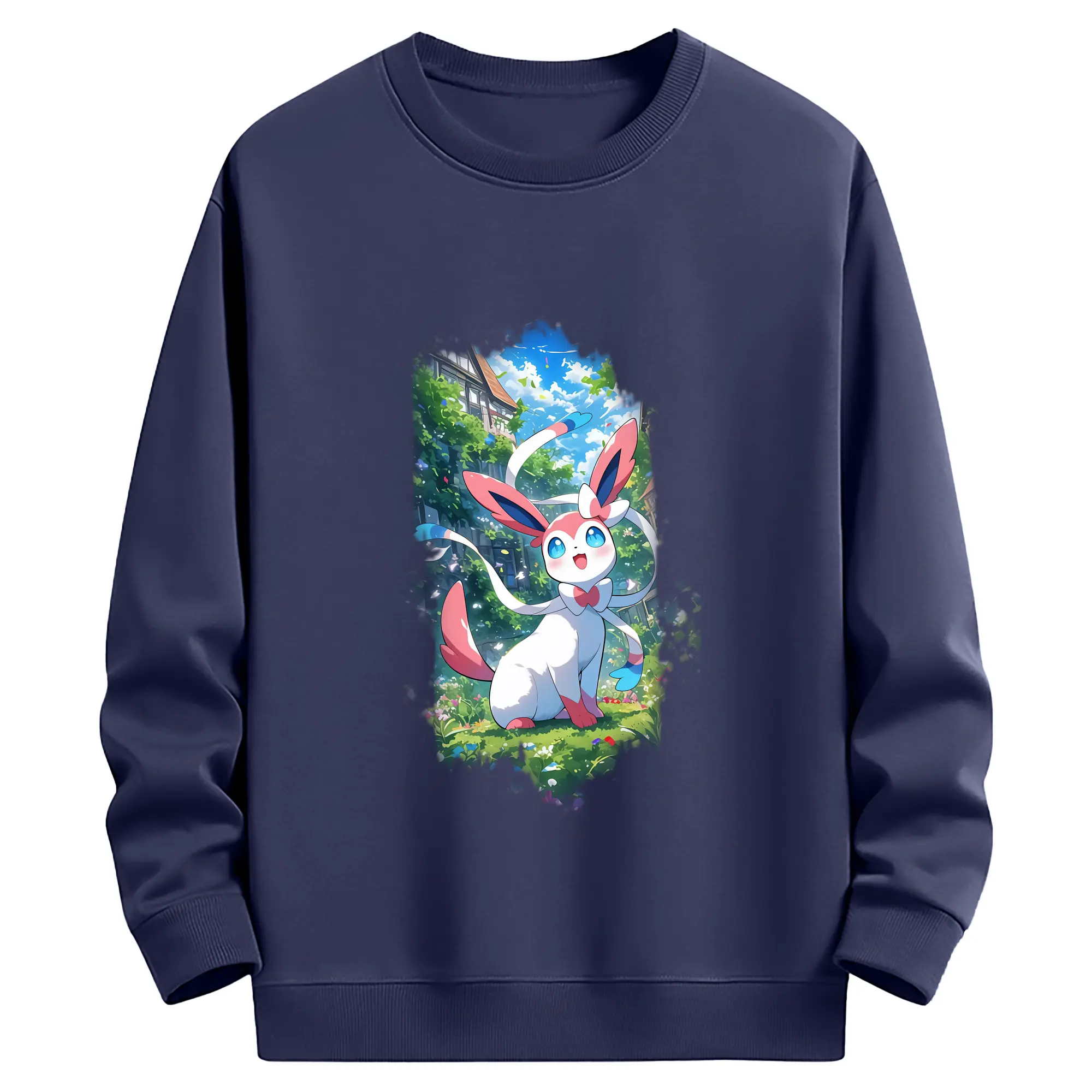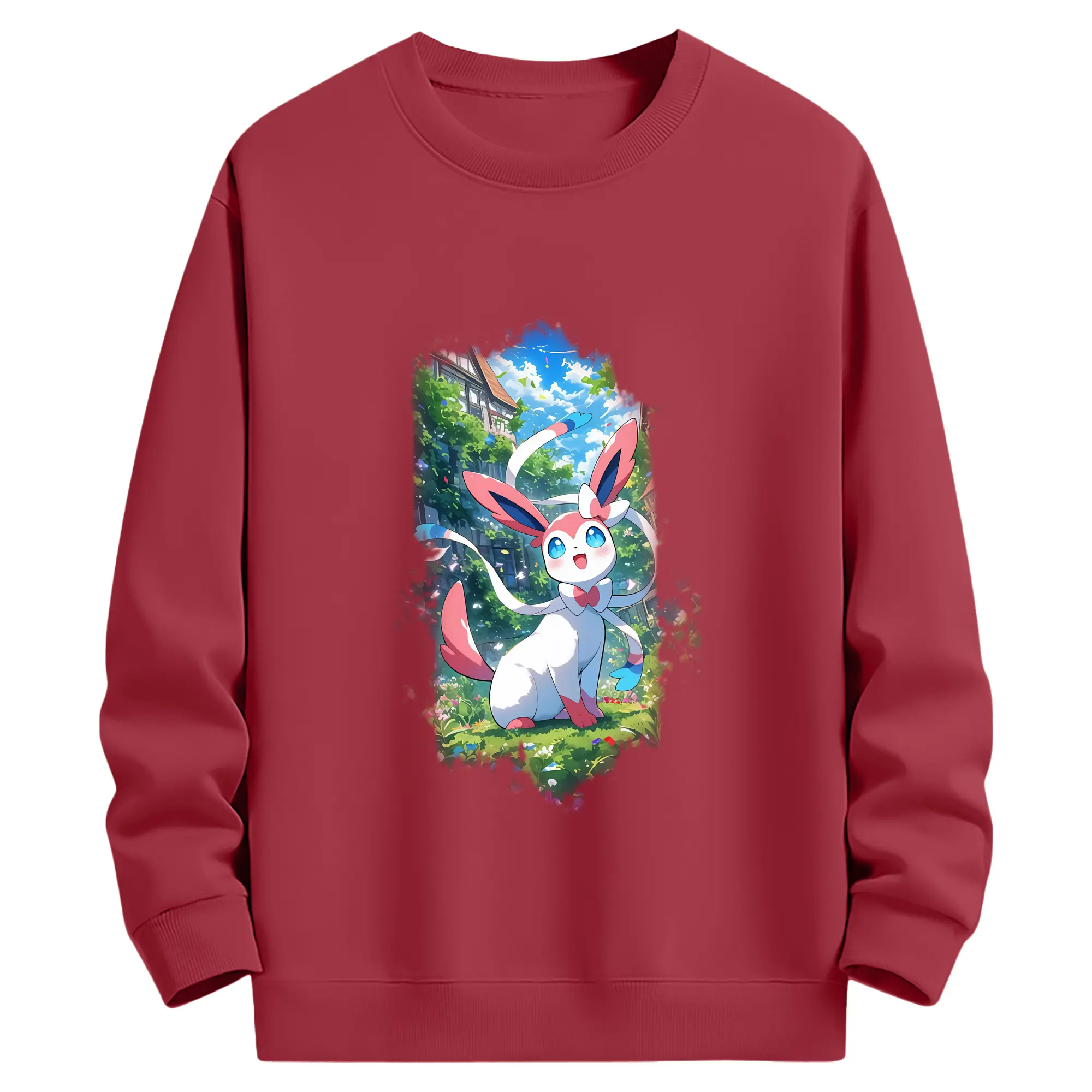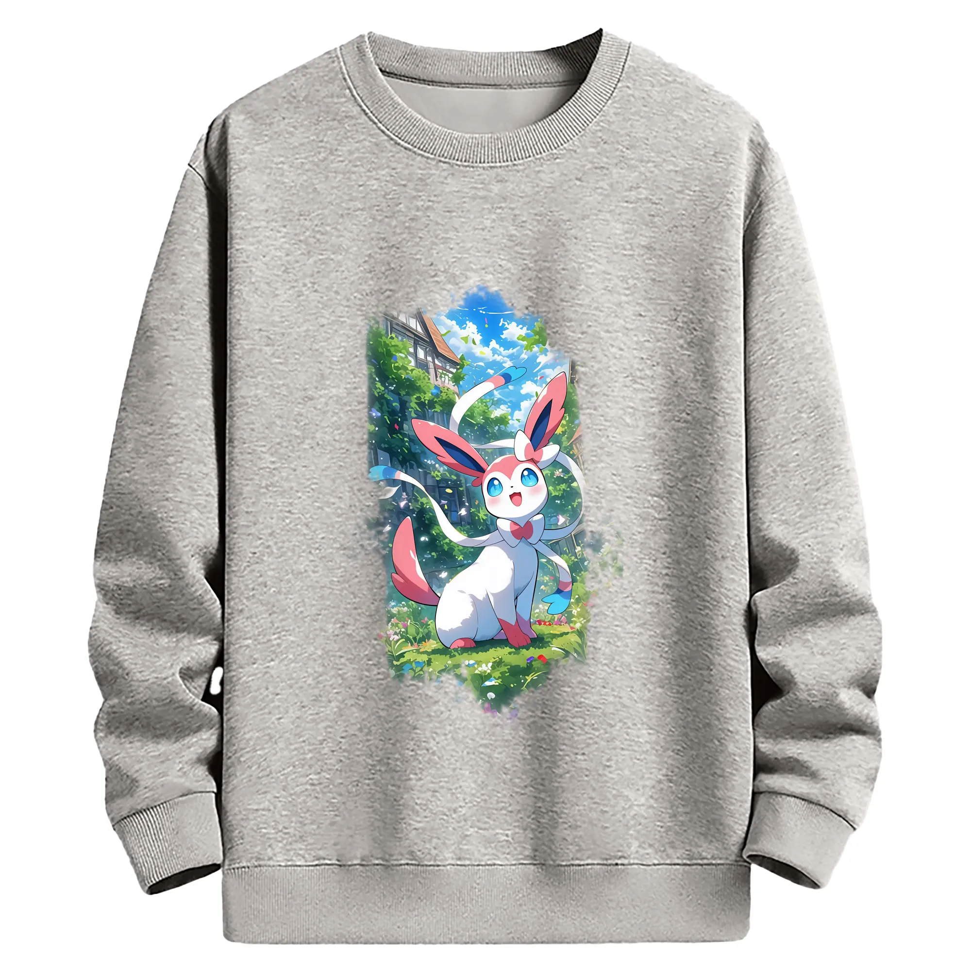 ポケモン グッズ,ニンフィア - 薄手 クルーネック スウェット 裏毛260g · ポリエステル 春秋向け カジュアル 男女兼用 · トレーナー デイリー スポーツ 散歩に最適