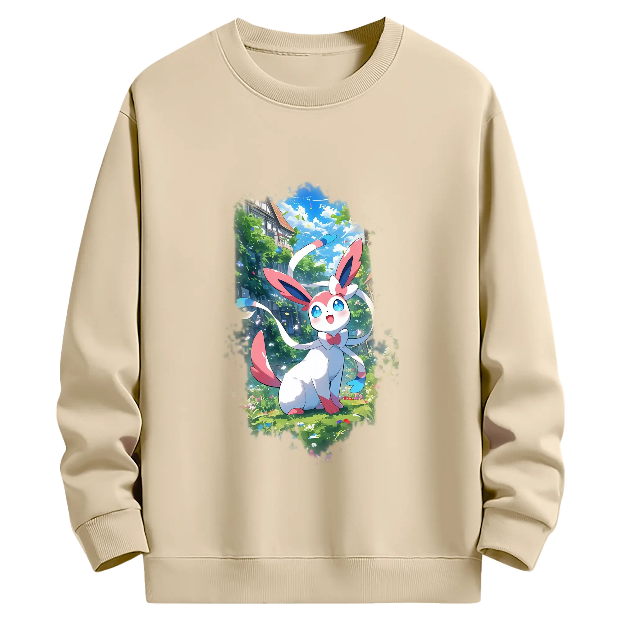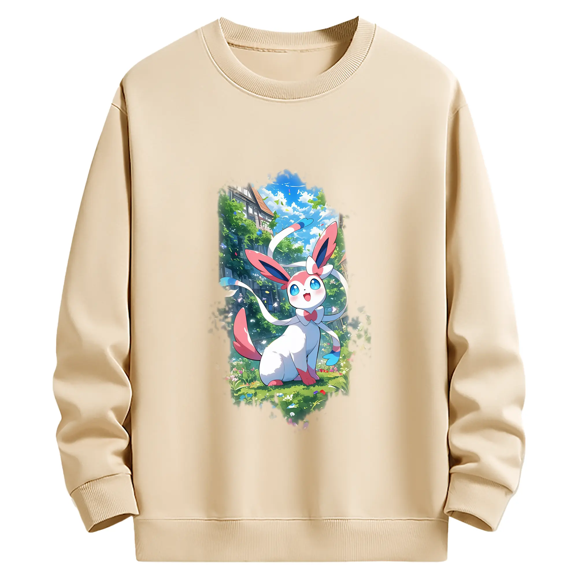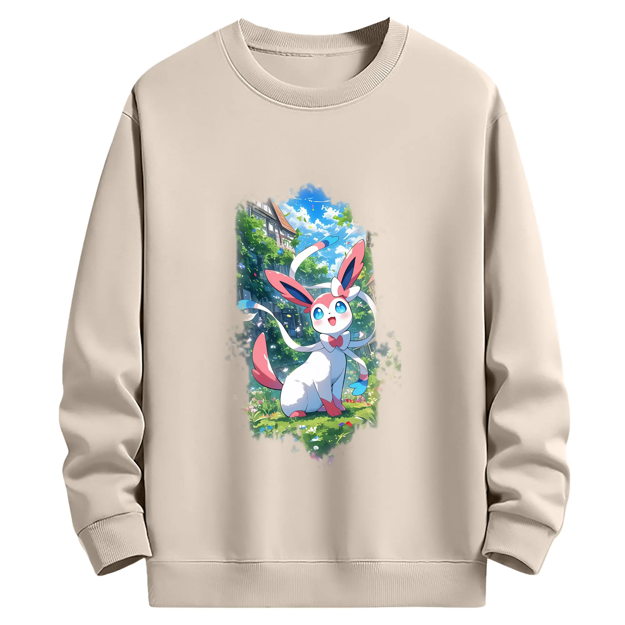 ポケモン グッズ,ニンフィア - 薄手 クルーネック スウェット 裏毛260g · ポリエステル 春秋向け カジュアル 男女兼用 · トレーナー デイリー スポーツ 散歩に最適