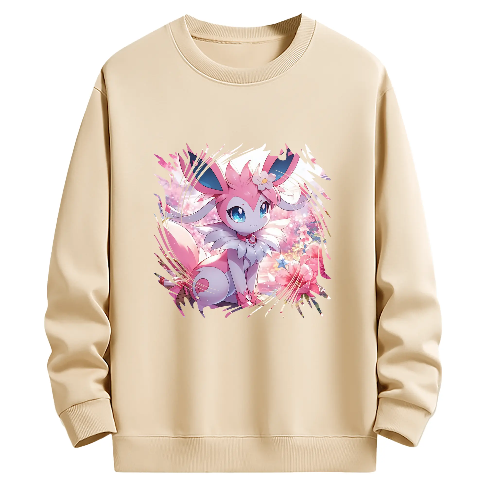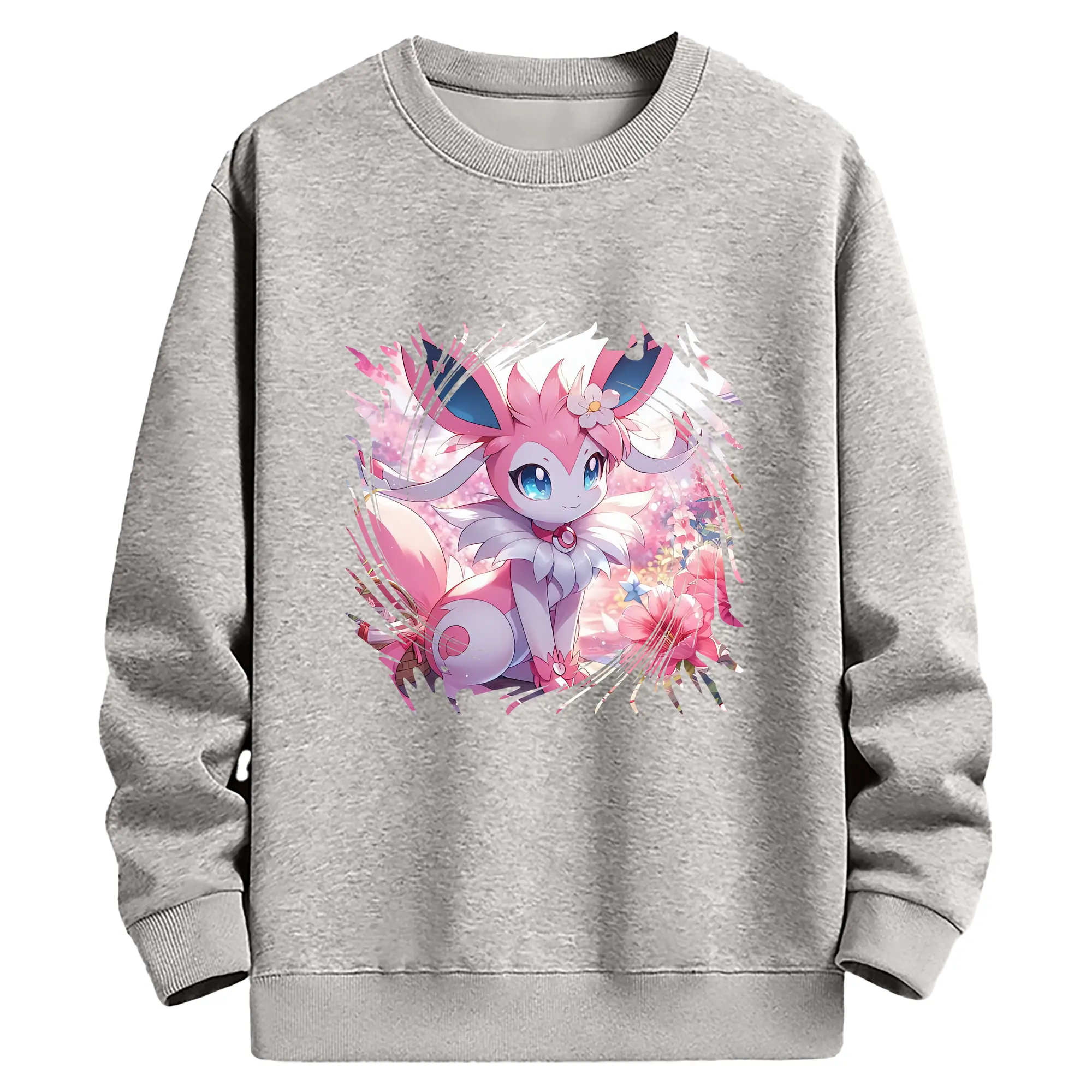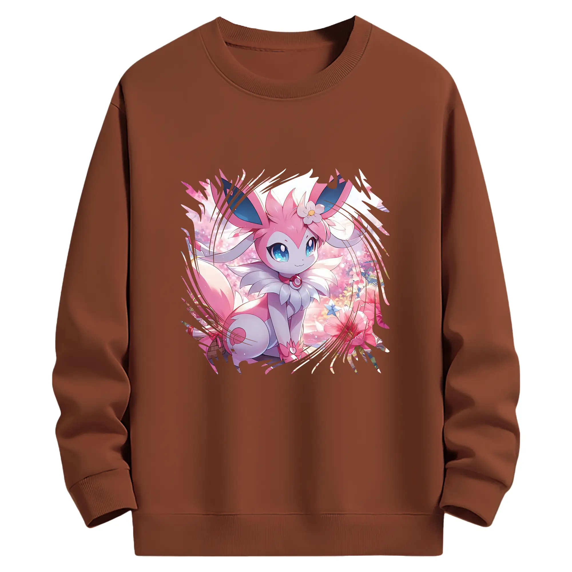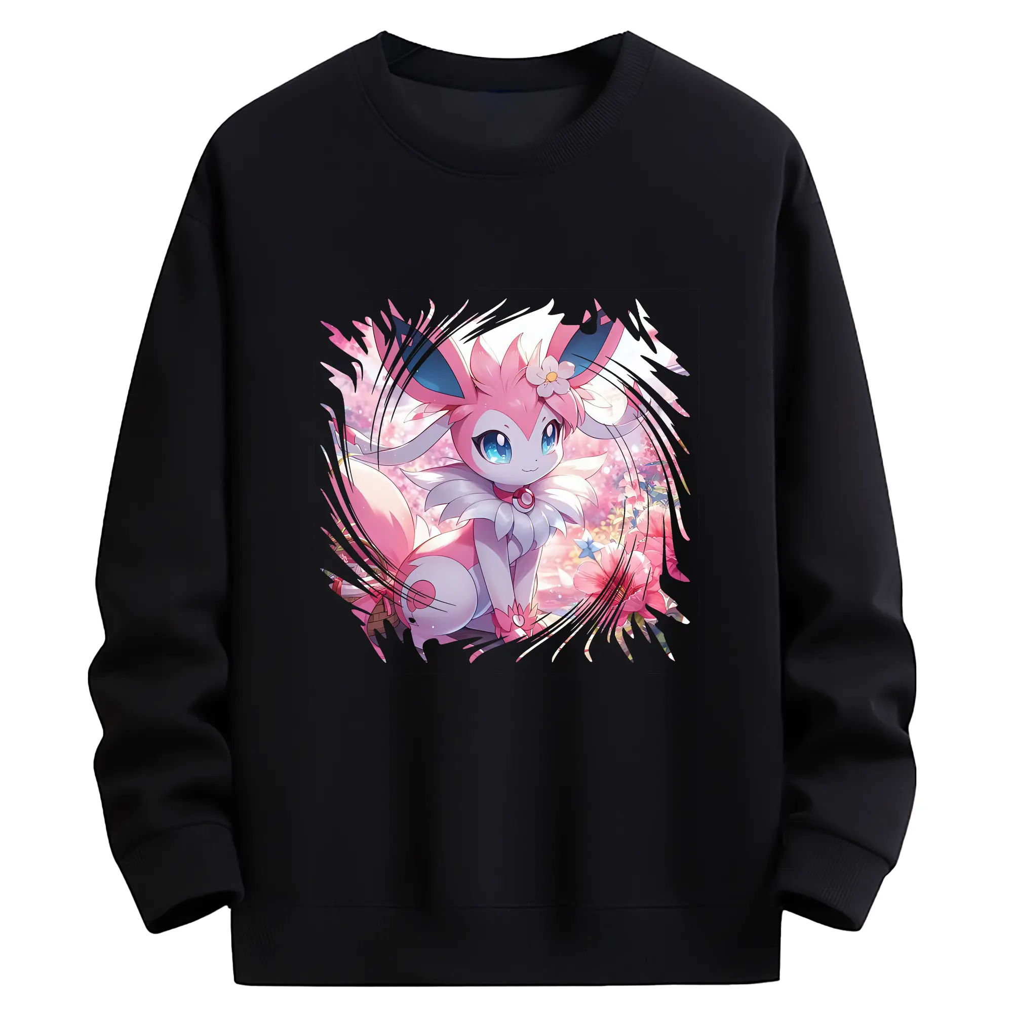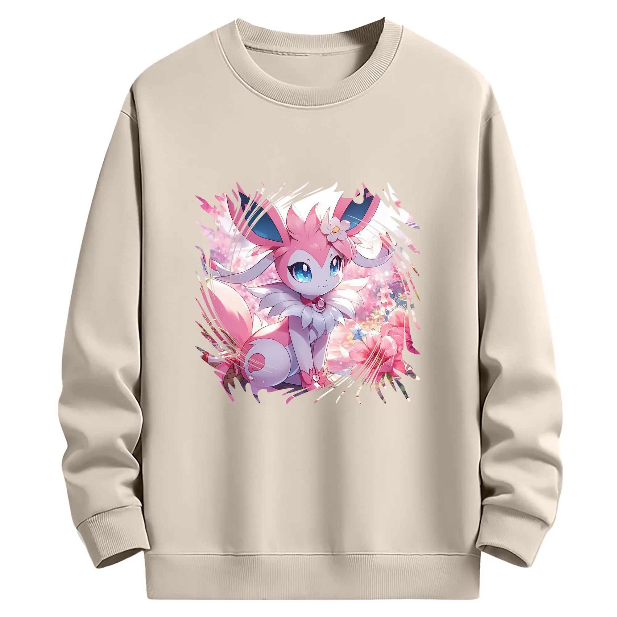 ポケモン グッズ,ニンフィア - 薄手 クルーネック スウェット 裏毛260g · ポリエステル 春秋向け カジュアル 男女兼用 · トレーナー デイリー スポーツ 散歩に最適