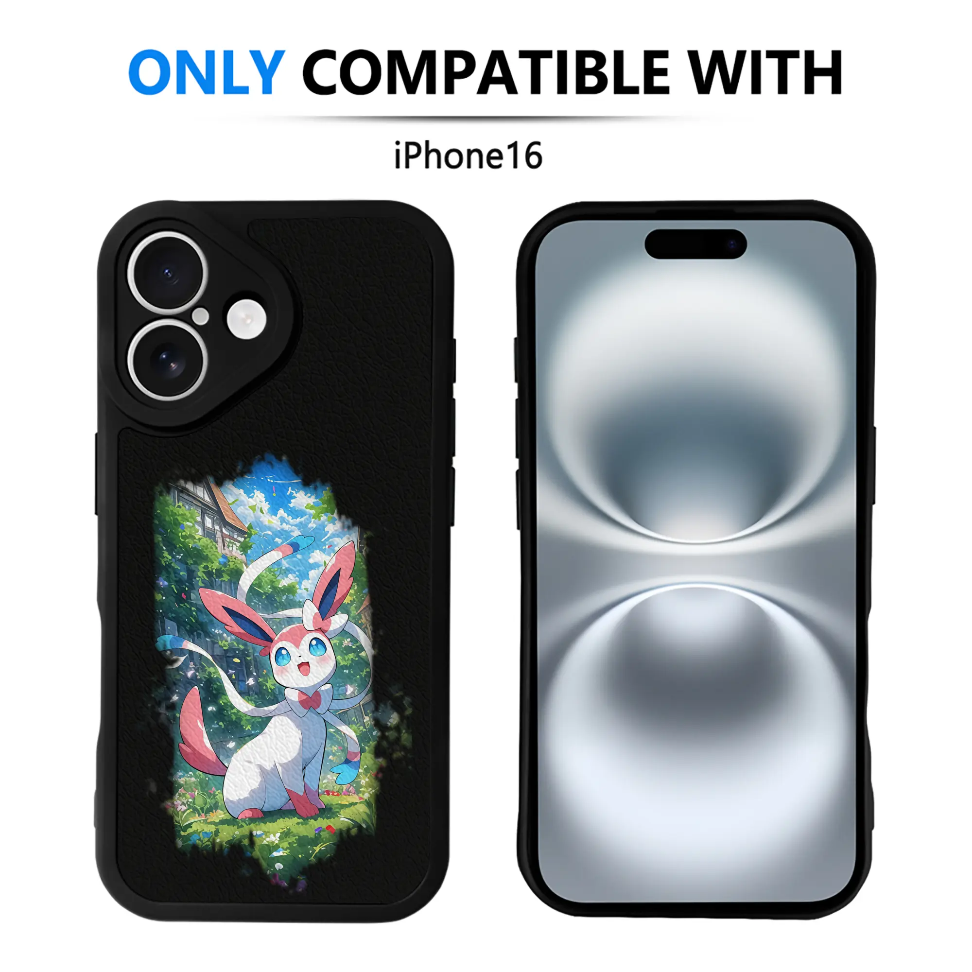 ポケモン グッズ,ニンフィア - IPhone 16シリーズ対応 ・ シリコンスマホケース ・ レザー調 ・ 高精度フィット ・ 耐衝撃 ・ ワイヤレス充電対応 ・ 精密カット