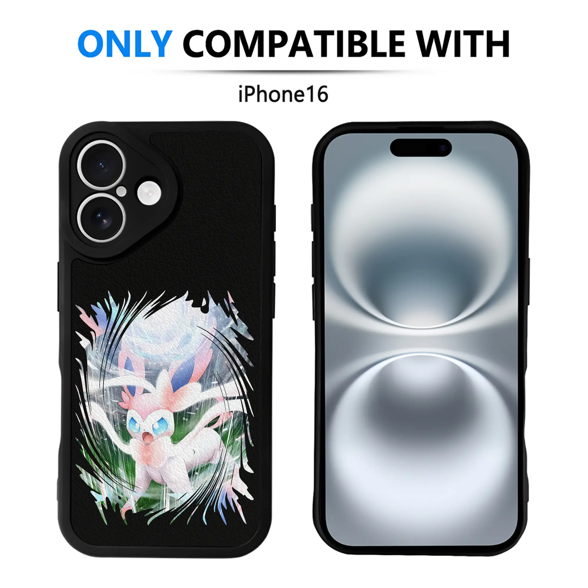 ポケモン グッズ,ニンフィア - IPhone 16シリーズ対応 ・ シリコンスマホケース ・ レザー調 ・ 高精度フィット ・ 耐衝撃 ・ ワイヤレス充電対応 ・ 精密カット