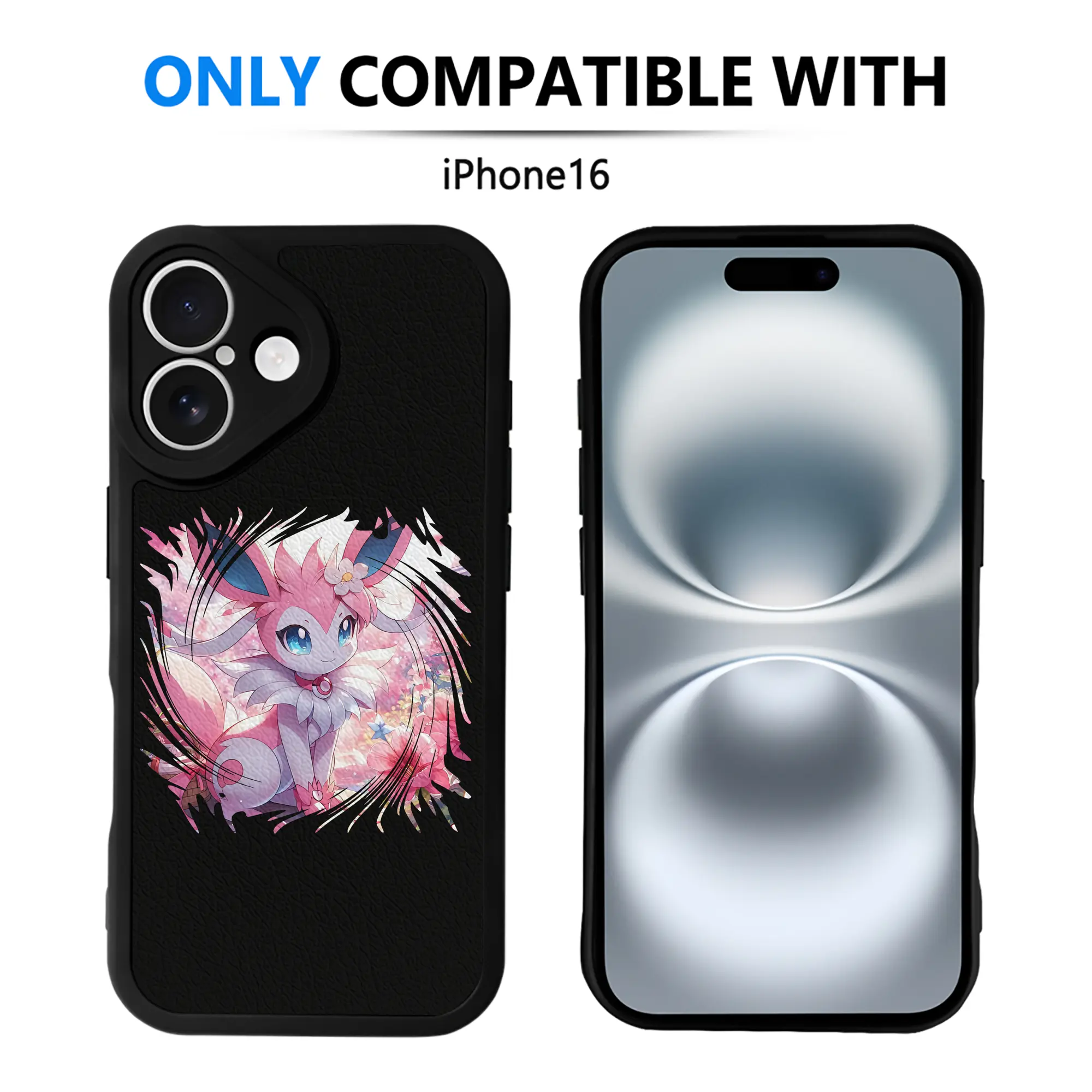 ポケモン グッズ,ニンフィア - IPhone 16シリーズ対応 ・ シリコンスマホケース ・ レザー調 ・ 高精度フィット ・ 耐衝撃 ・ ワイヤレス充電対応 ・ 精密カット