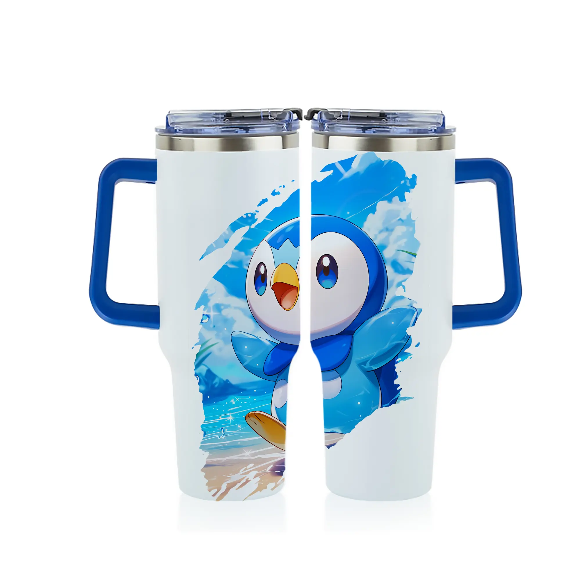ポケモン グッズ,ポッチャマ - 1200mL フルプリント車用タンブラー ・ 304ステンレス 内側 ・ 201ステンレス 外側 ・ 保温 保冷 ・ 通勤 ドライブ アウトドア用