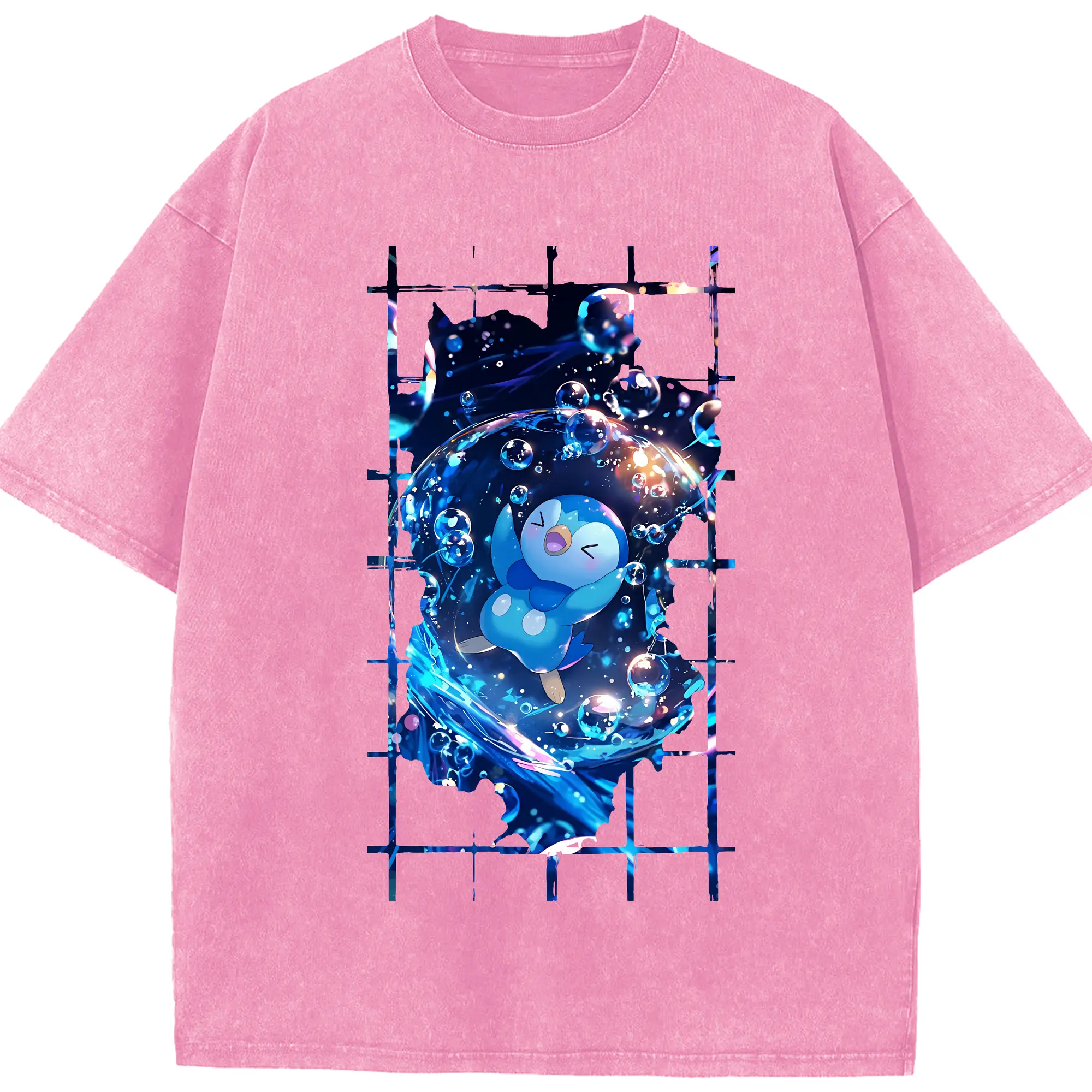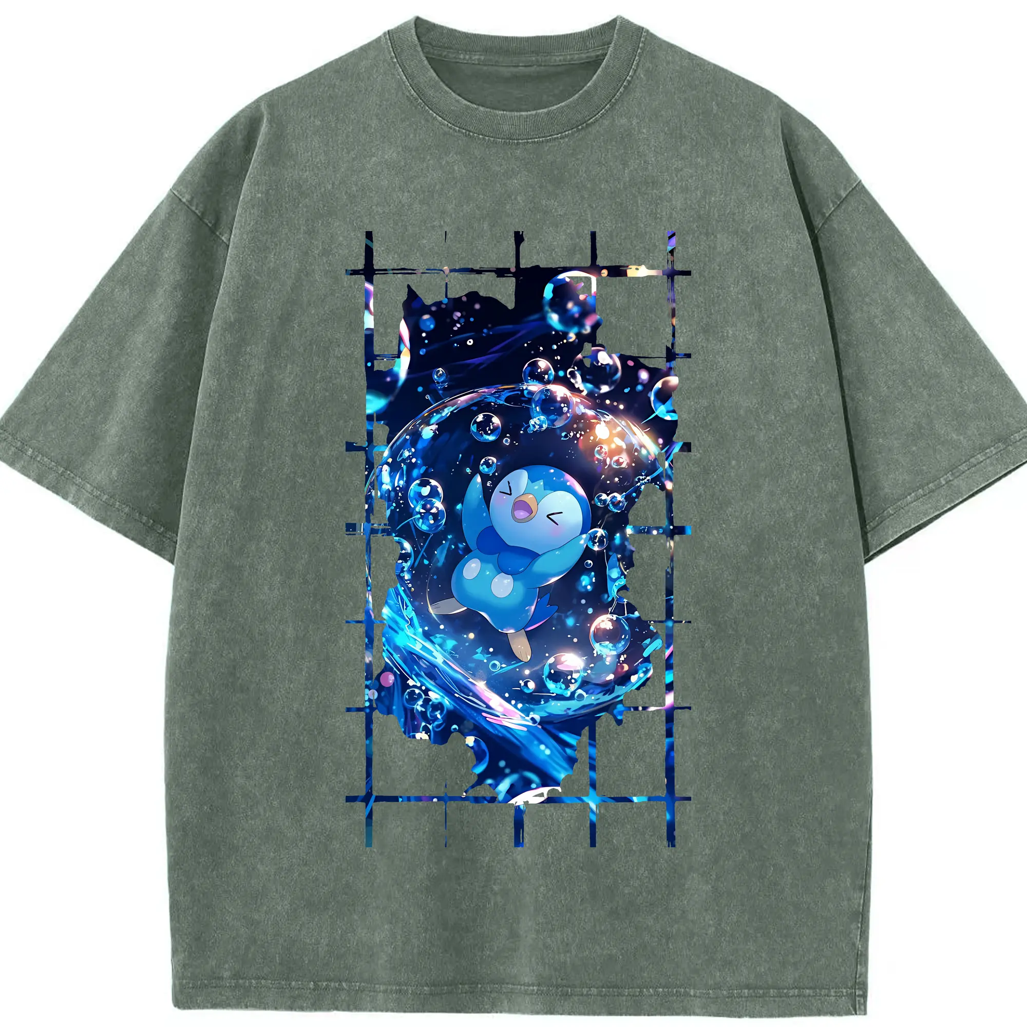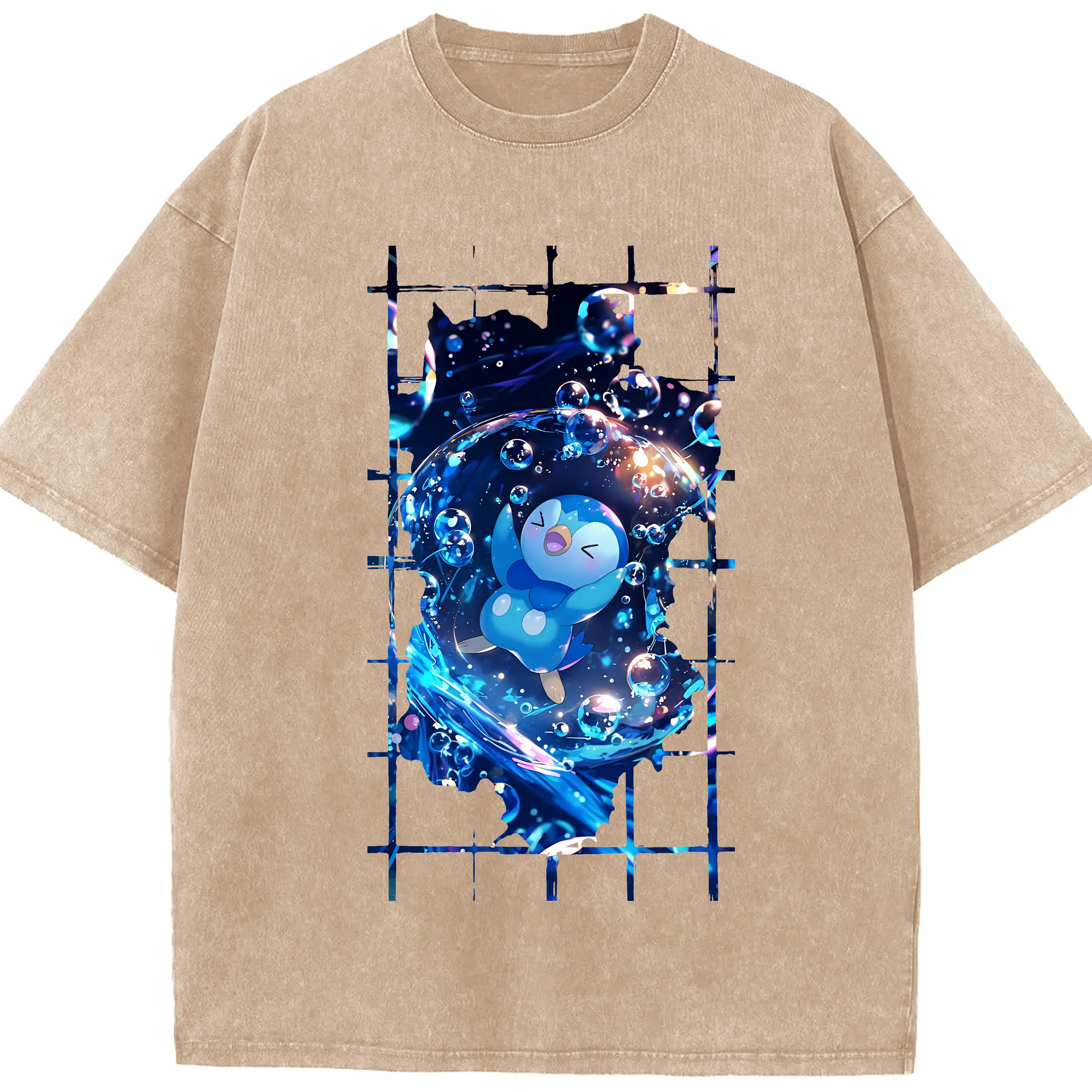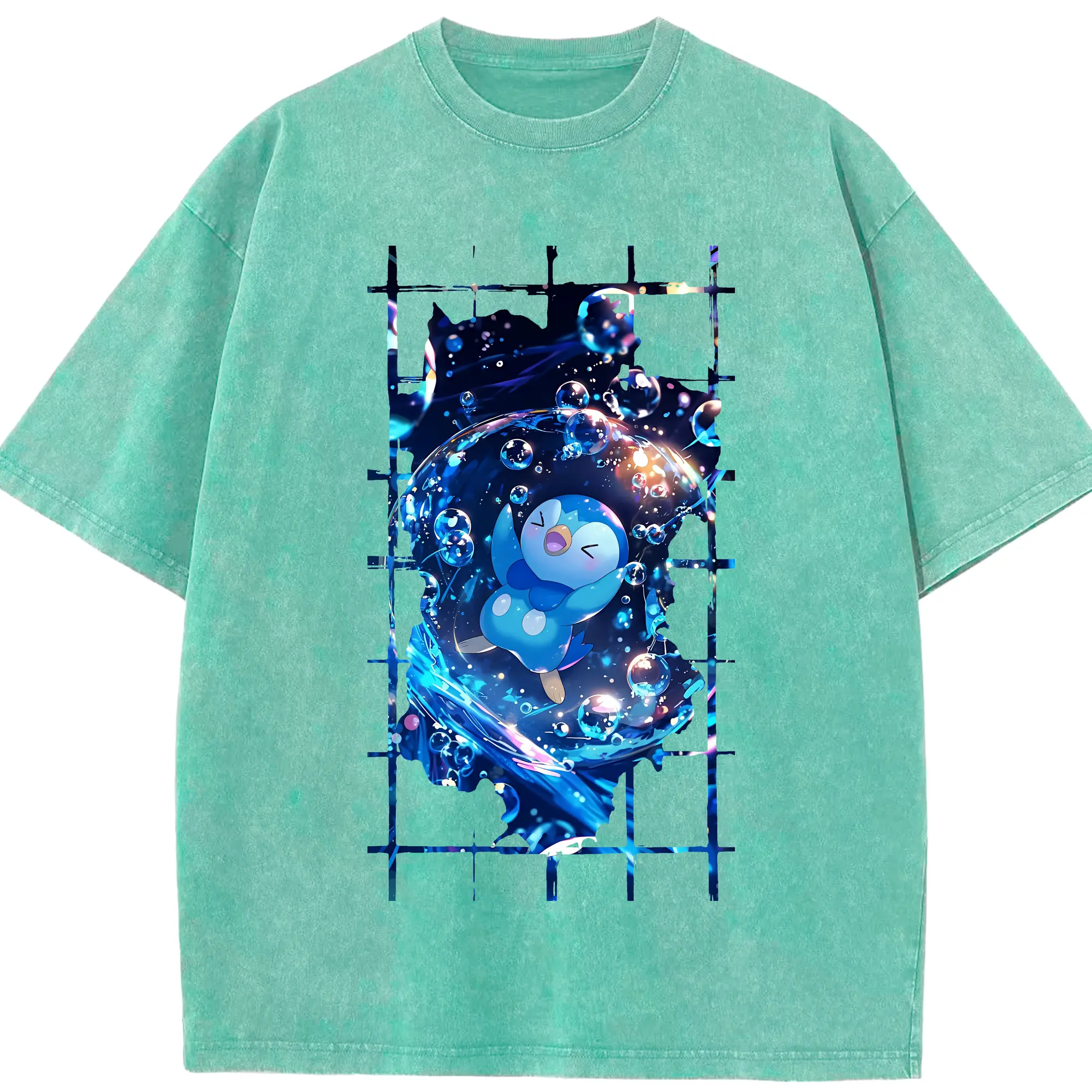 ポケモン グッズ,ポッチャマ - 綿100% ヴィンテージ風 半袖Tシャツ ・ 背面プリント ・ 柔らか肌触り ・ 通気性 快適 ・ スポーツ カジュアル 外出用