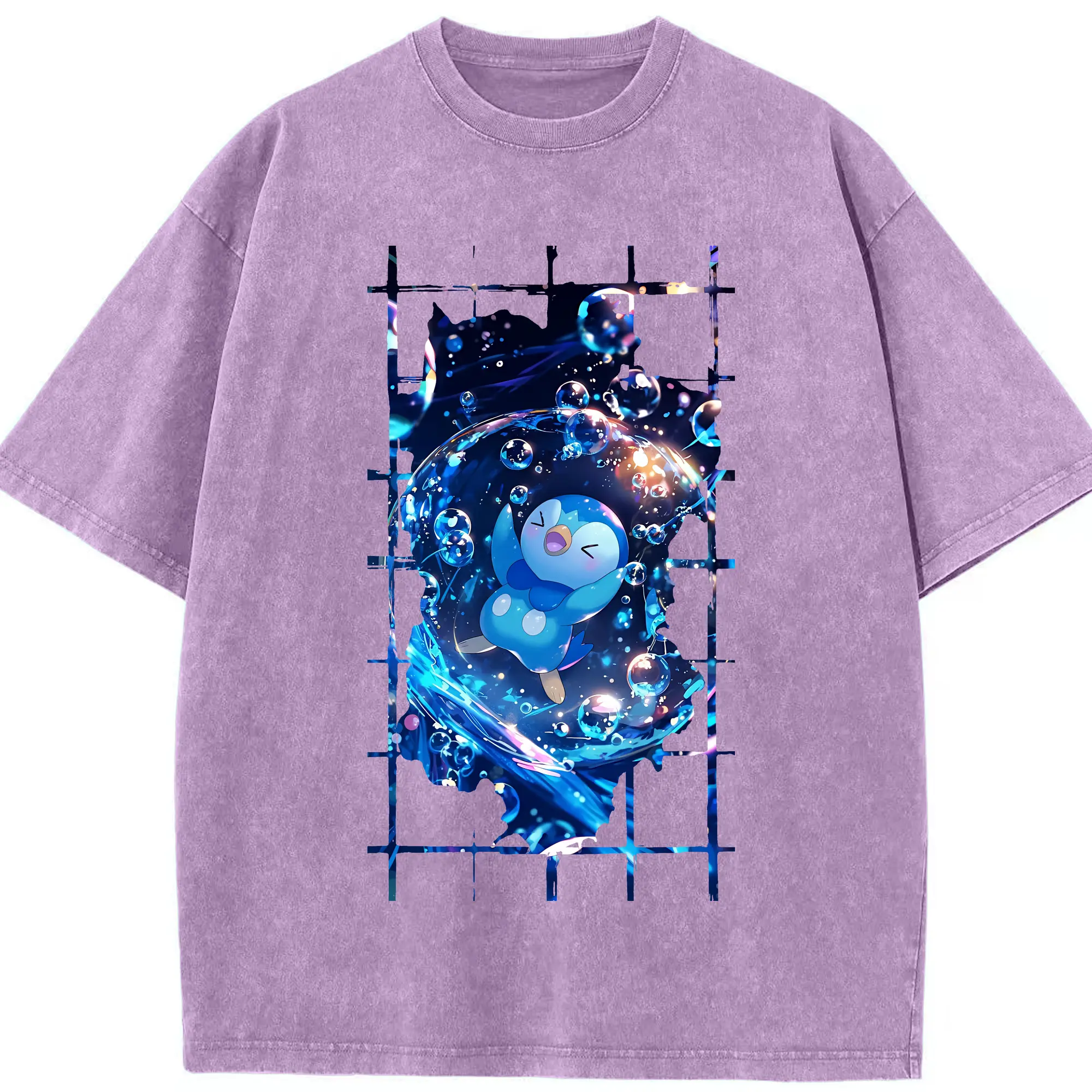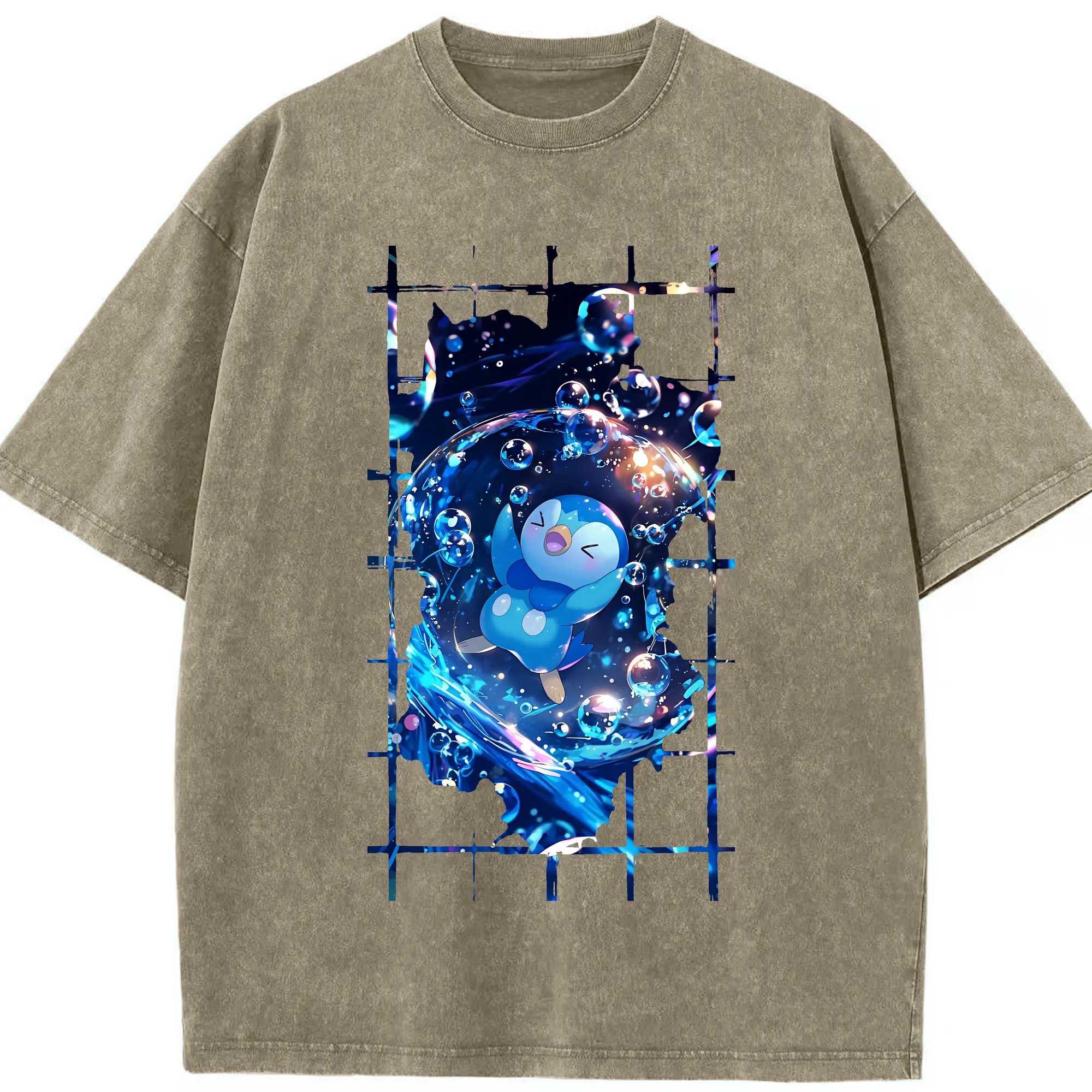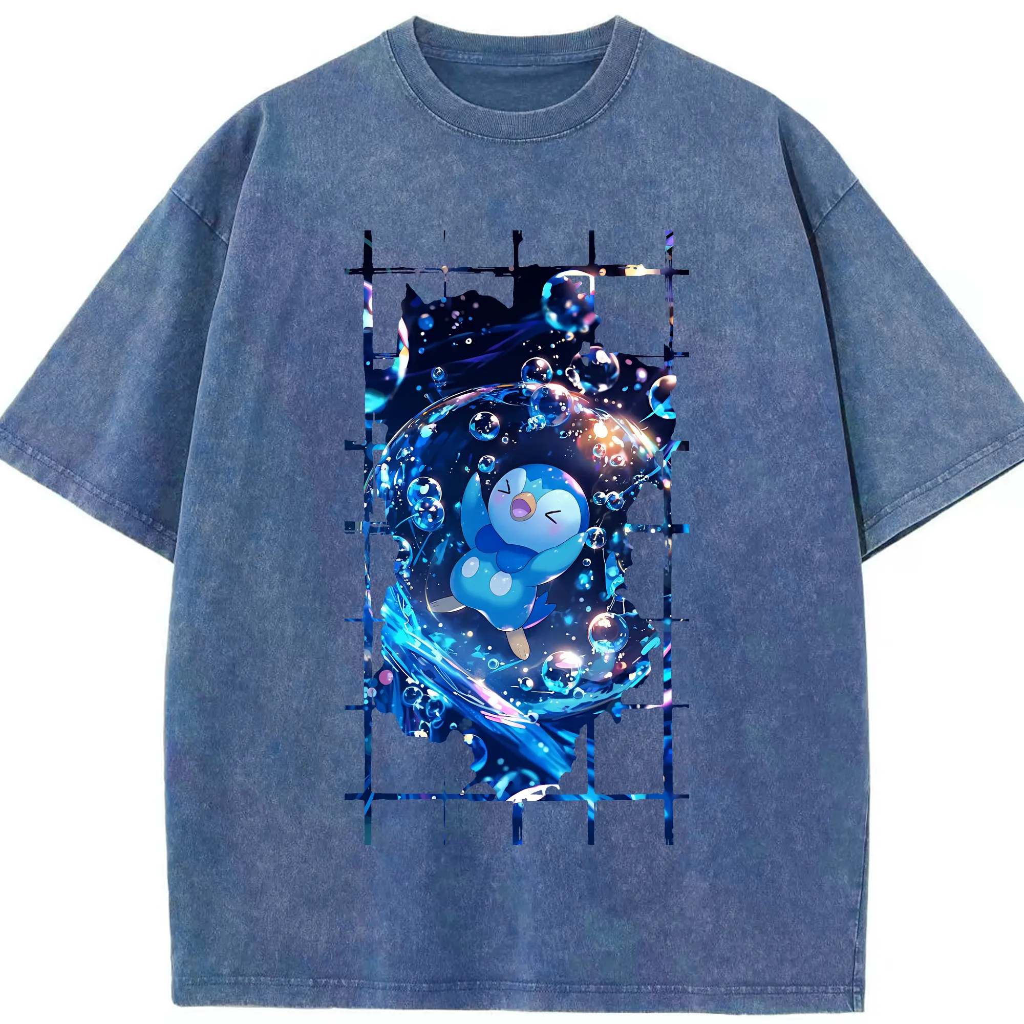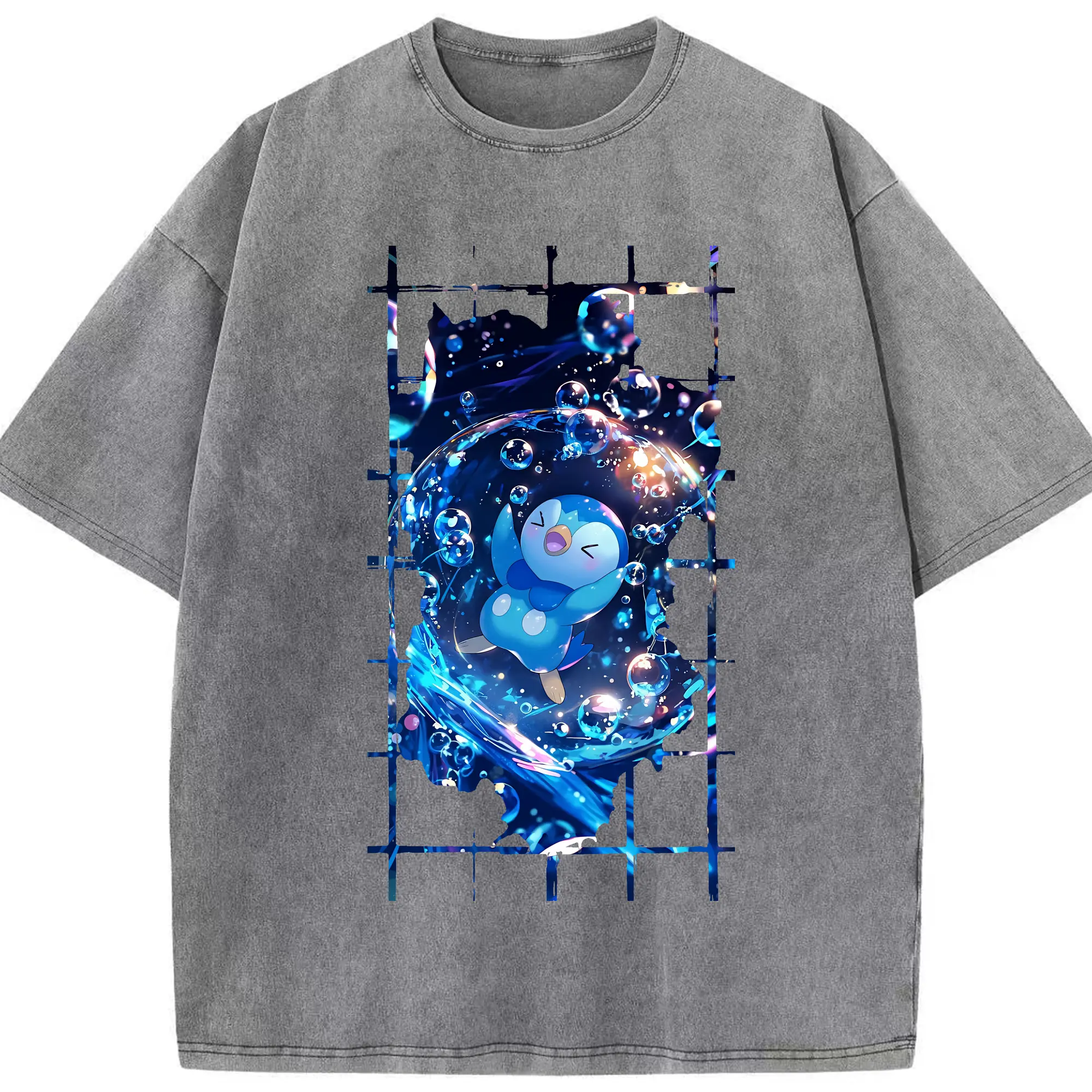 ポケモン グッズ,ポッチャマ - 綿100% ヴィンテージ風 半袖Tシャツ ・ 背面プリント ・ 柔らか肌触り ・ 通気性 快適 ・ スポーツ カジュアル 外出用