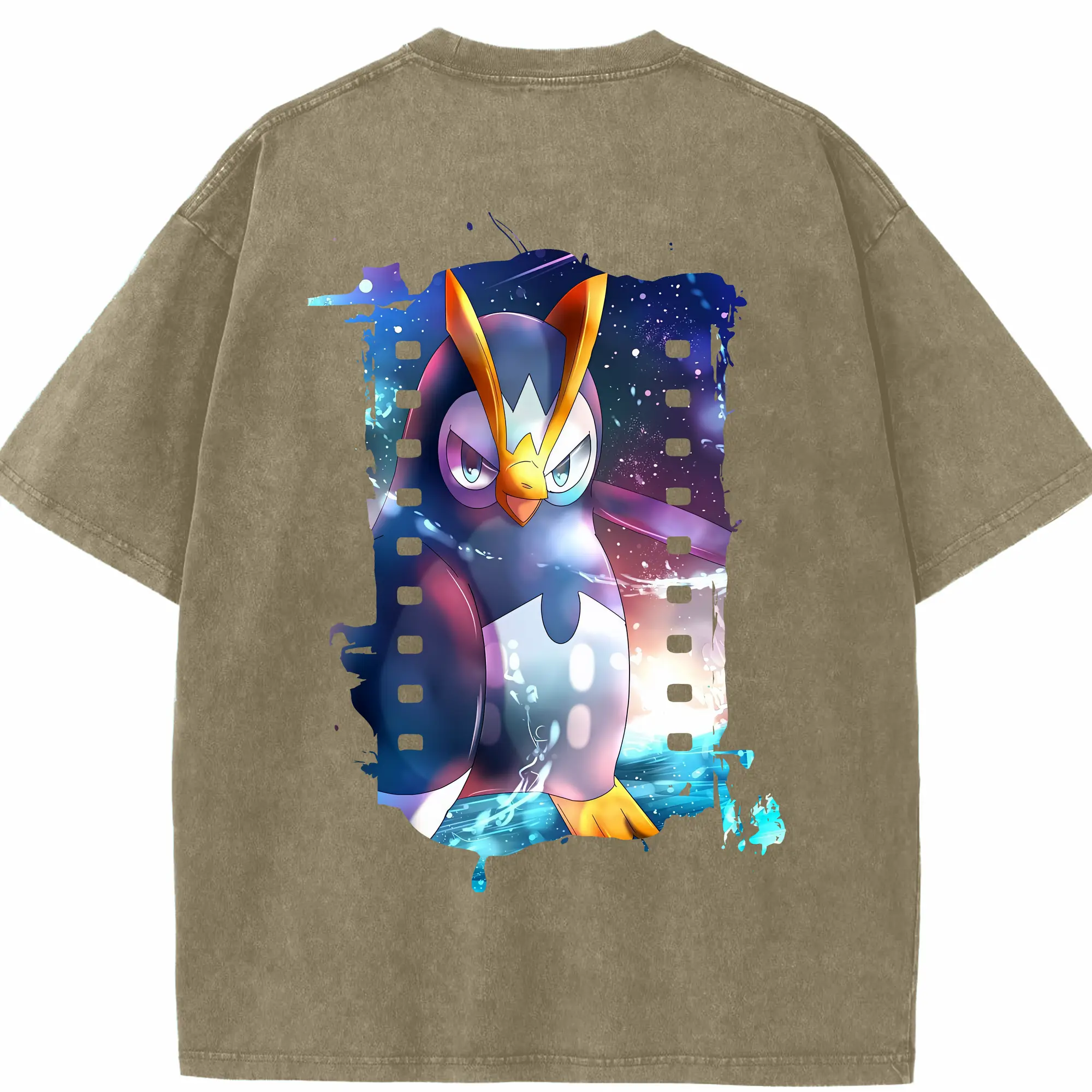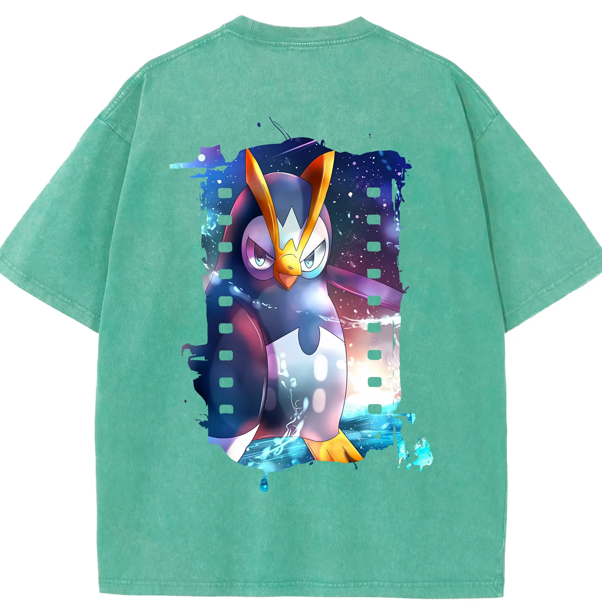 ポケモン グッズ,ポッチャマ - 綿100% ヴィンテージ風 半袖Tシャツ ・ フロントプリント ・ 柔らか肌触り ・ 通気性 快適 ・ スポーツ カジュアル 外出用