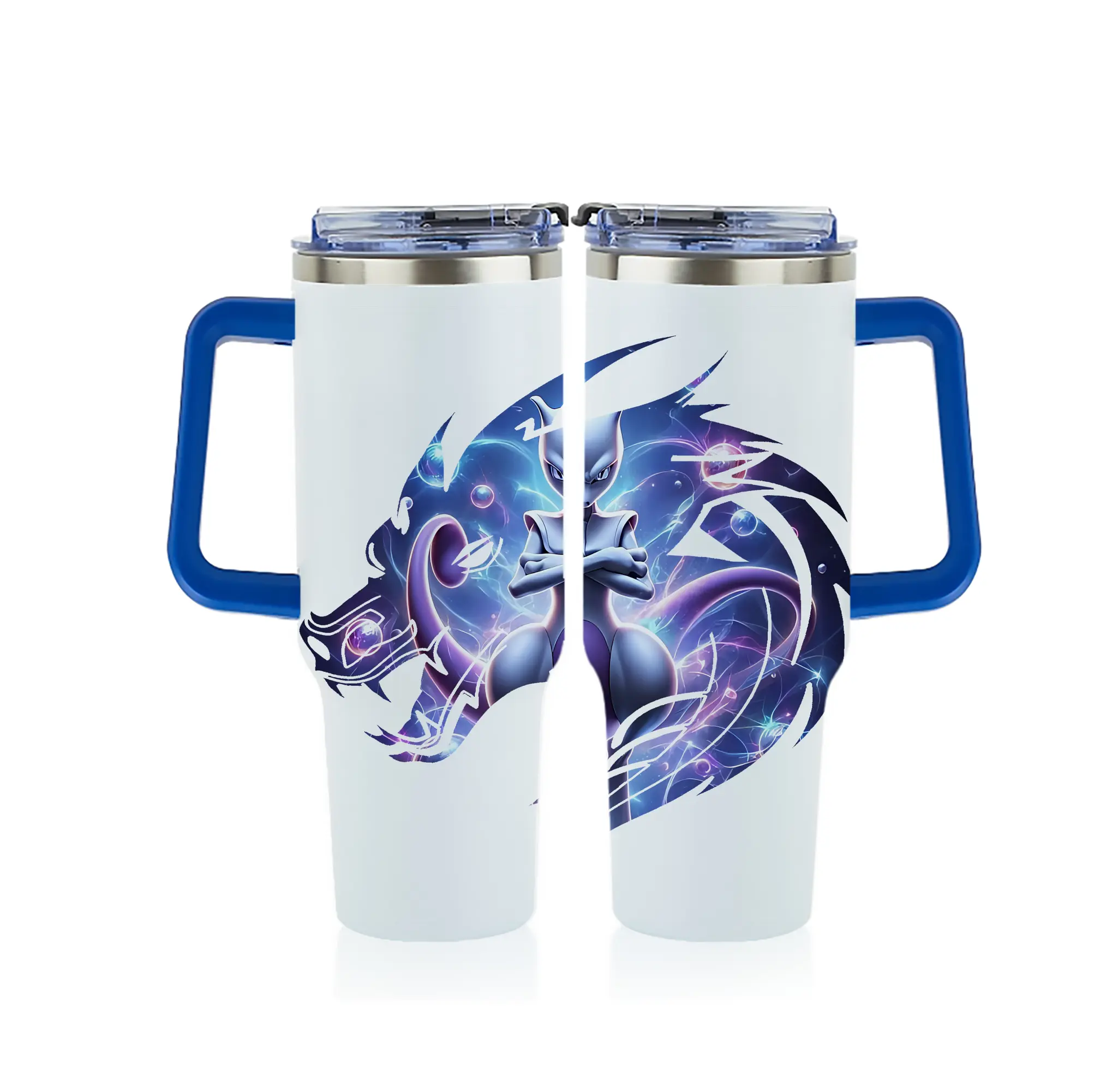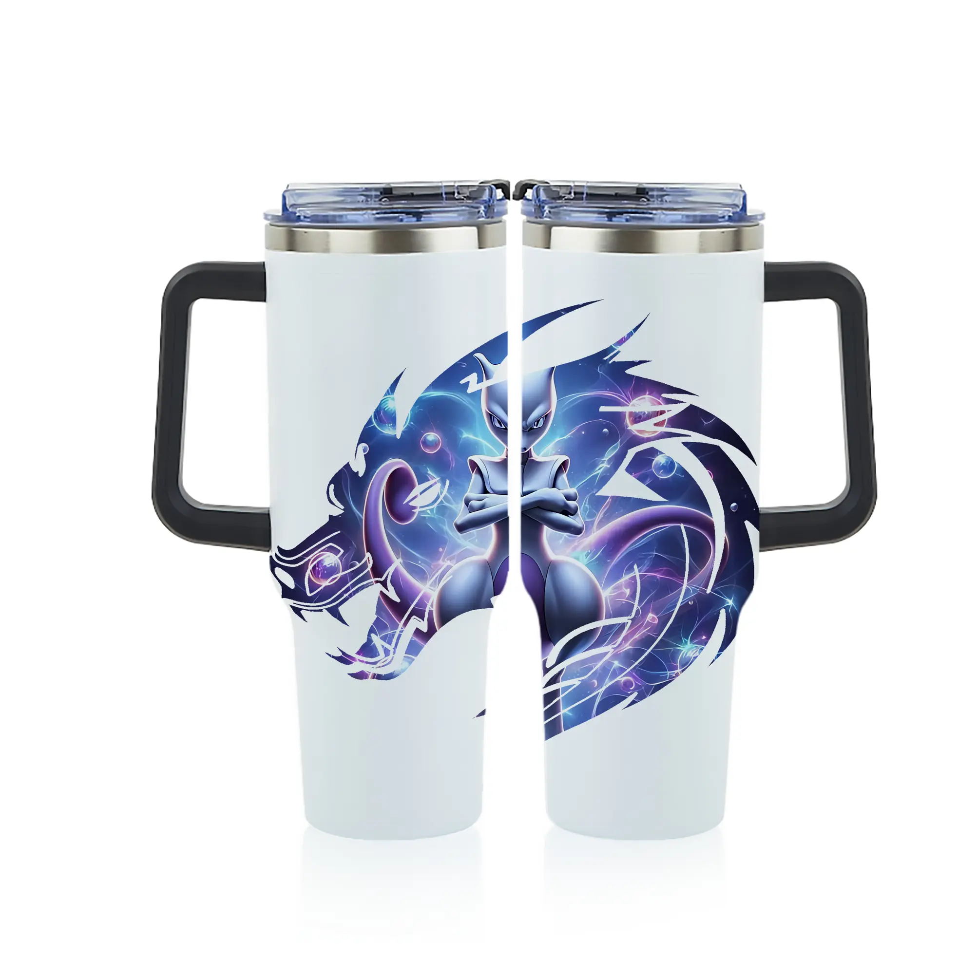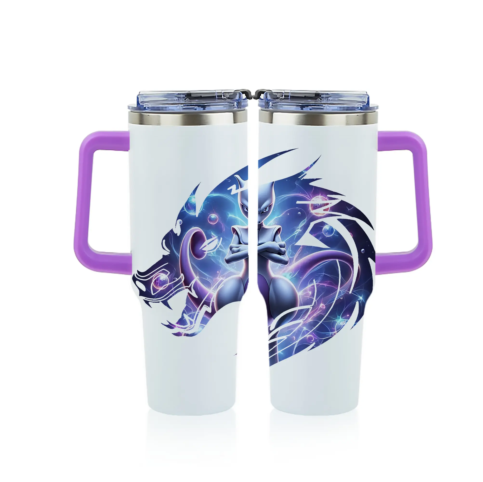 ポケモン グッズ,ミュウツー - 1200mL フルプリント車用タンブラー ・ 304ステンレス 内側 ・ 201ステンレス 外側 ・ 保温 保冷 ・ 通勤 ドライブ アウトドア用