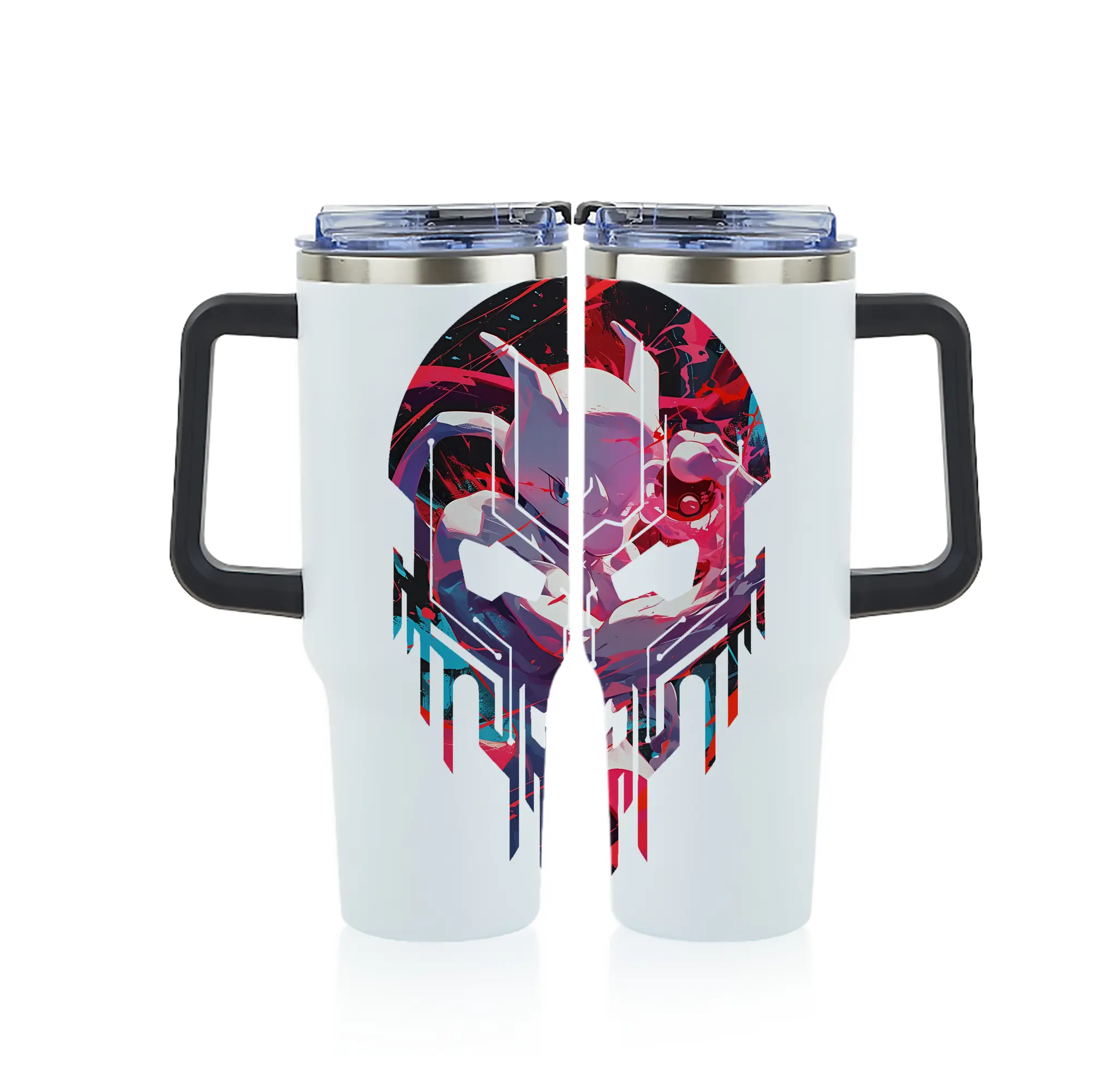 ポケモン グッズ,ミュウツー - 1200mL フルプリント車用タンブラー ・ 304ステンレス 内側 ・ 201ステンレス 外側 ・ 保温 保冷 ・ 通勤 ドライブ アウトドア用