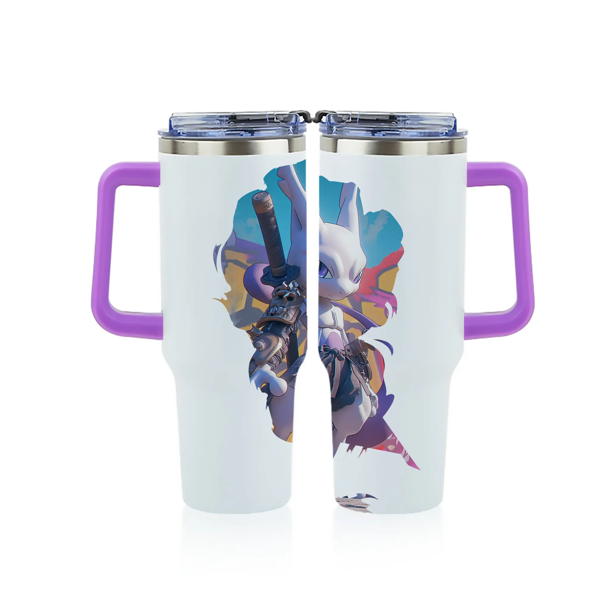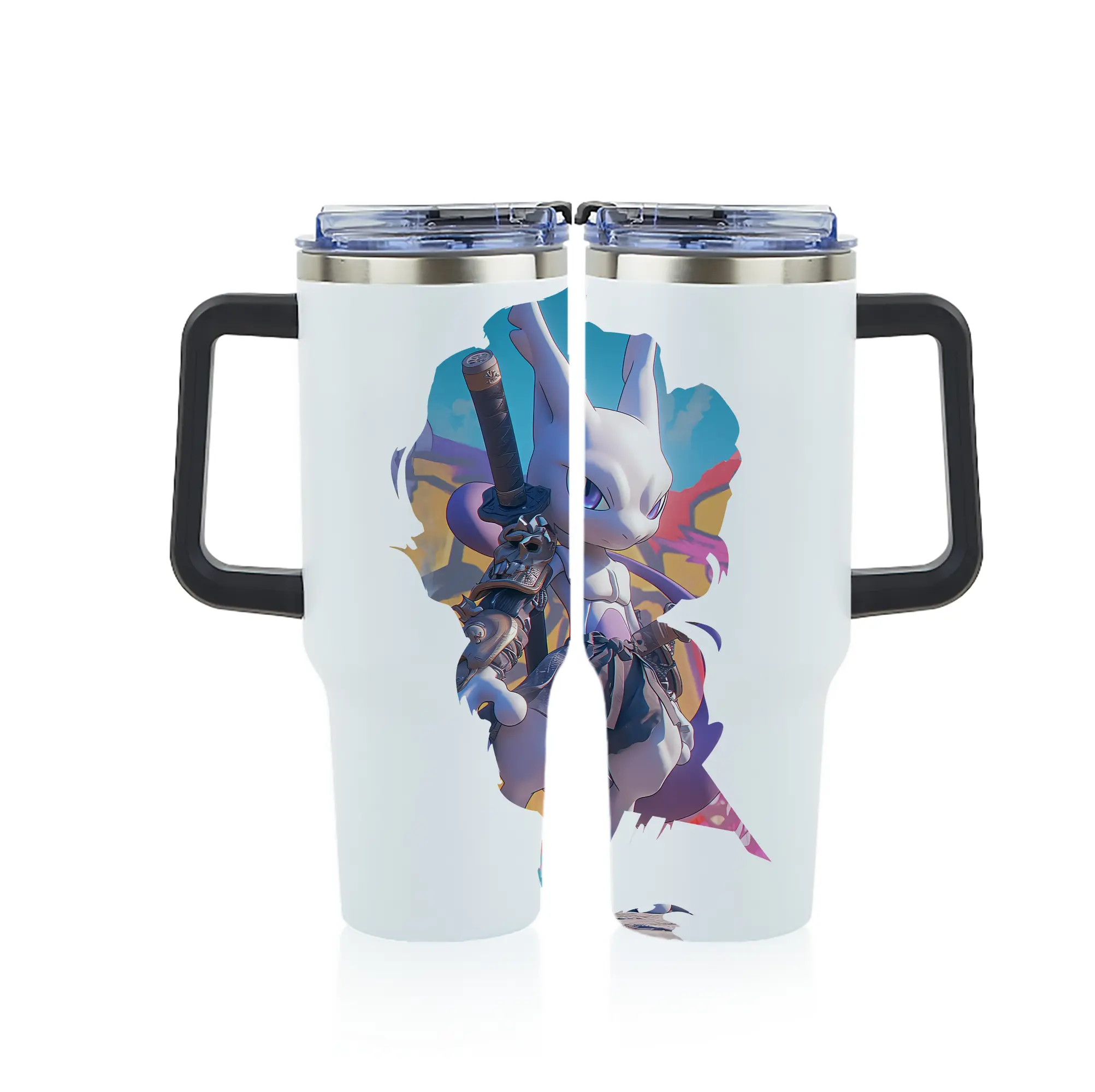 ポケモン グッズ,ミュウツー - 1200mL フルプリント車用タンブラー ・ 304ステンレス 内側 ・ 201ステンレス 外側 ・ 保温 保冷 ・ 通勤 ドライブ アウトドア用
