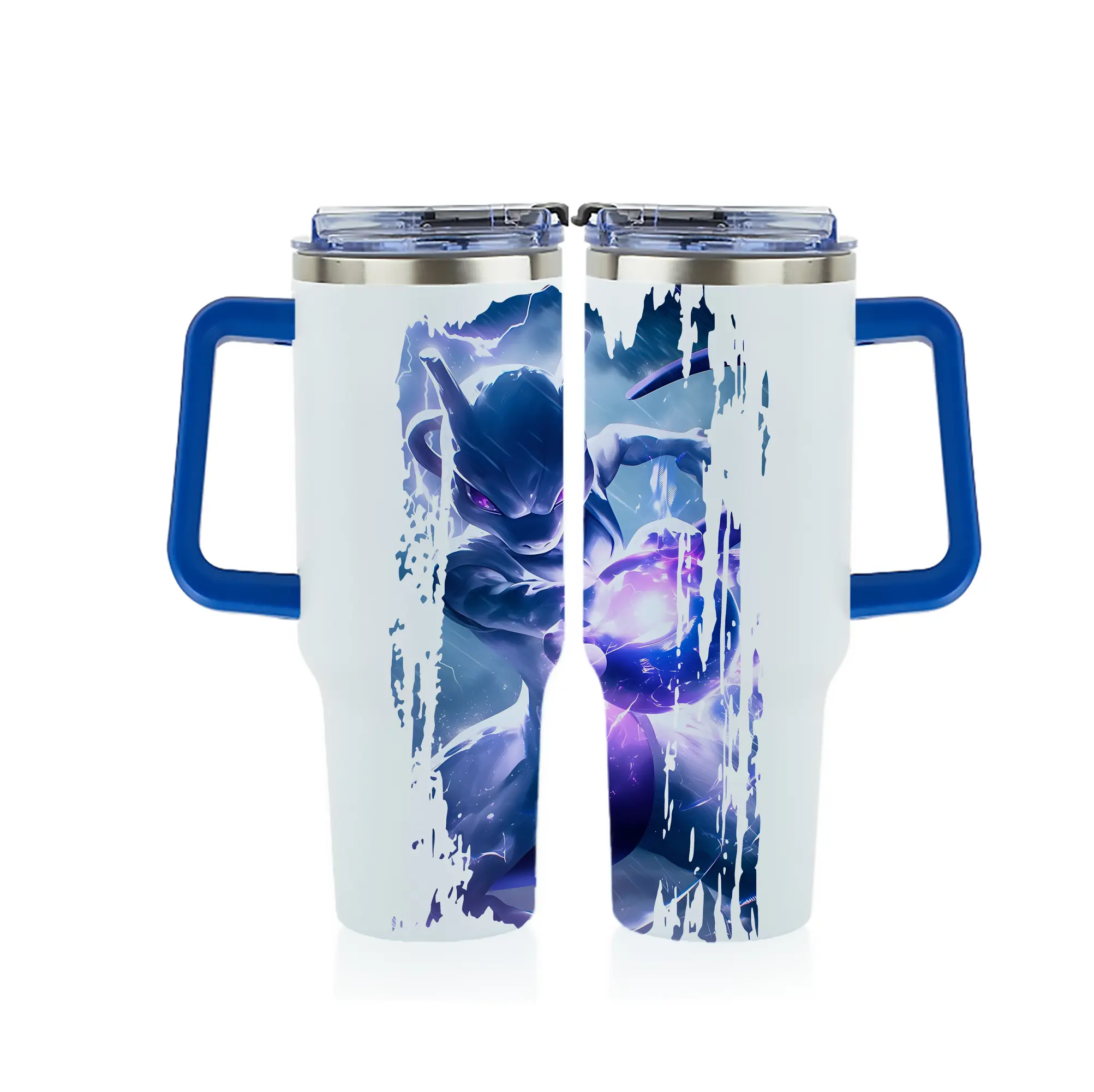 ポケモン グッズ,ミュウツー - 1200mL フルプリント車用タンブラー ・ 304ステンレス 内側 ・ 201ステンレス 外側 ・ 保温 保冷 ・ 通勤 ドライブ アウトドア用