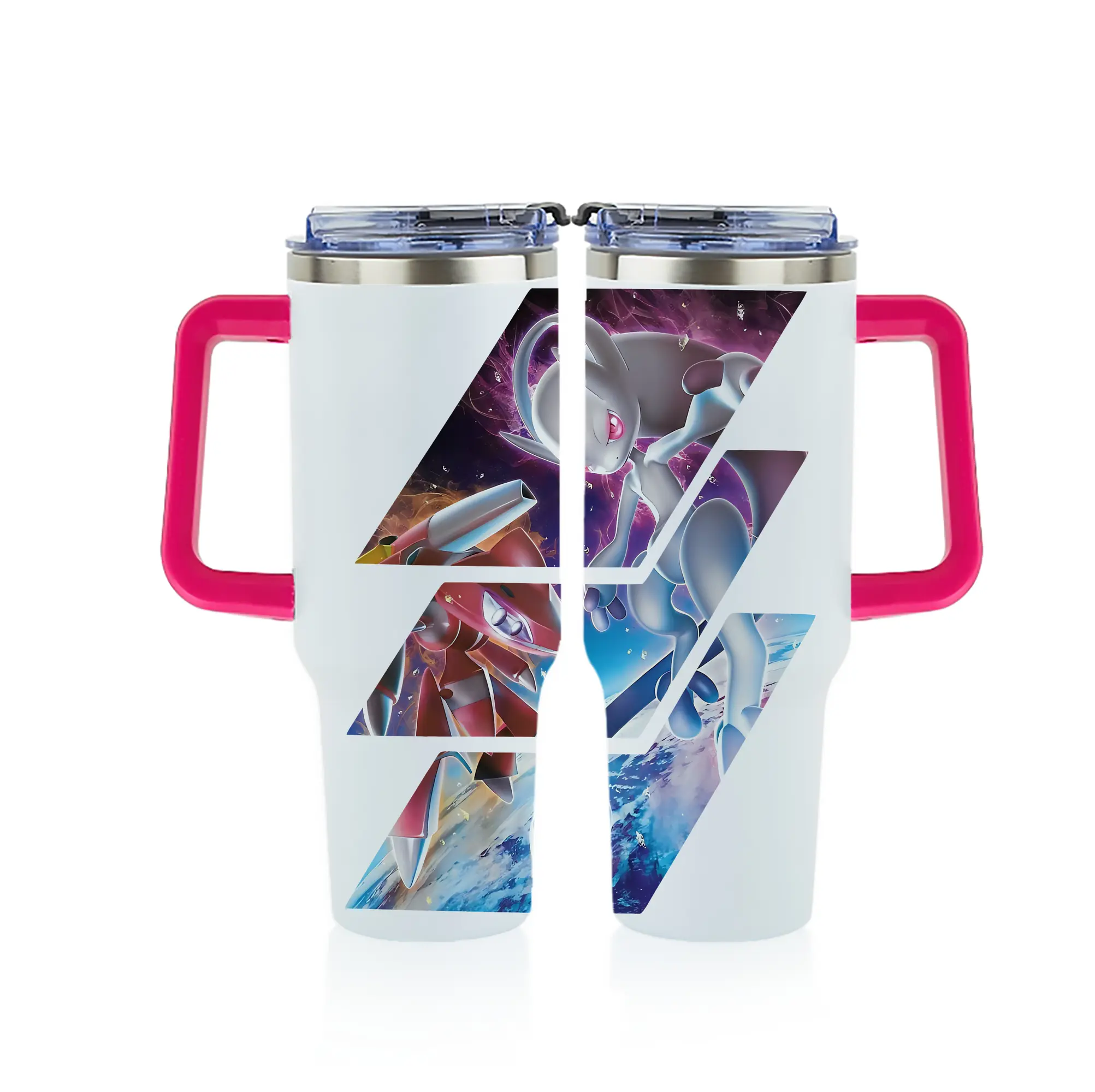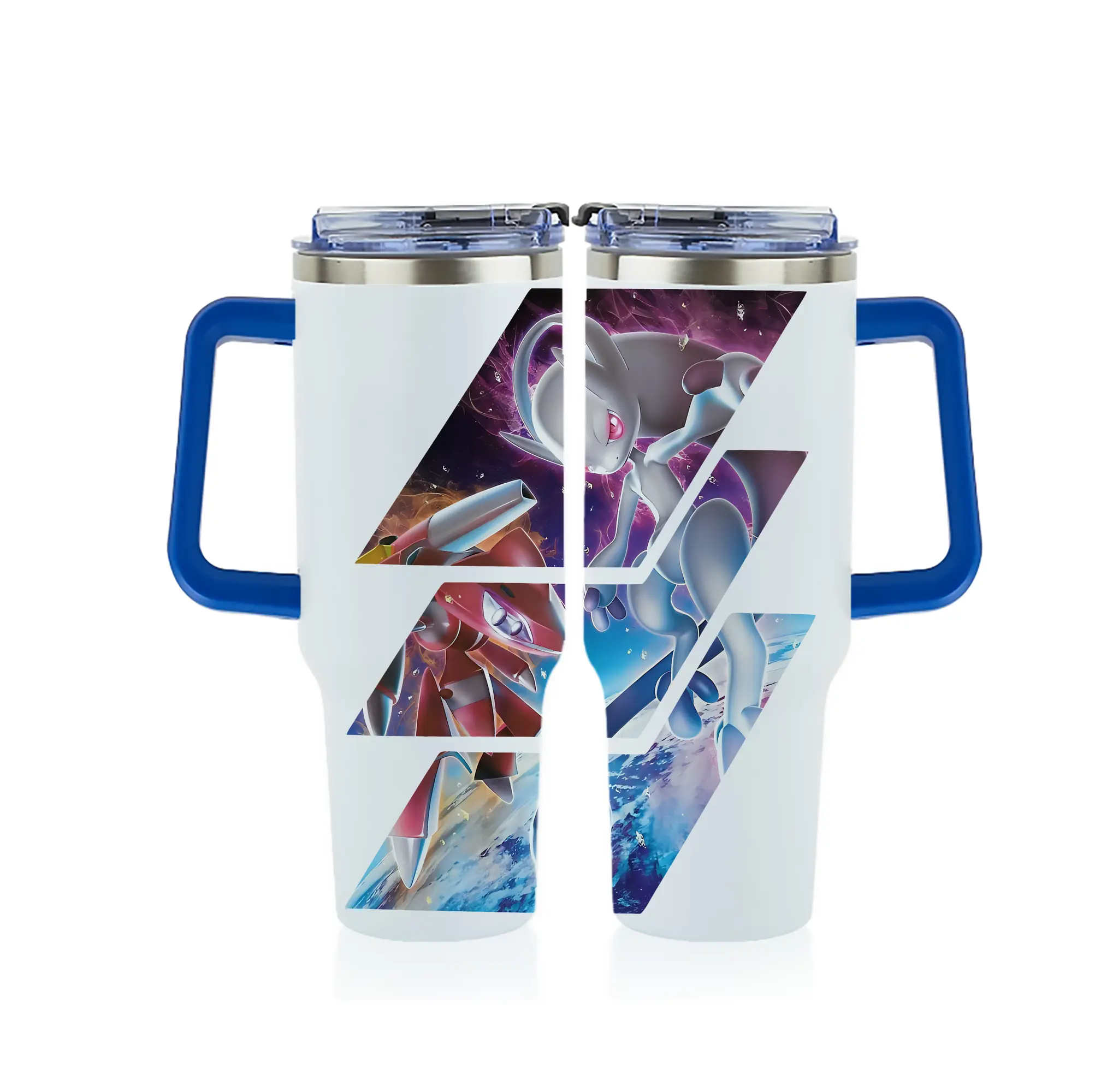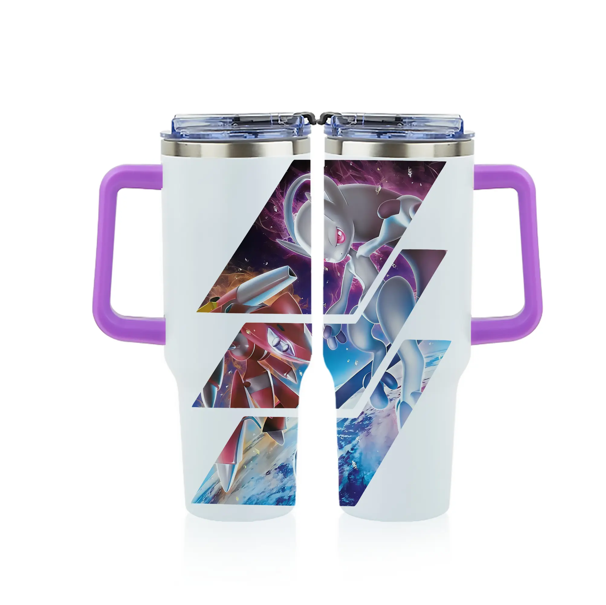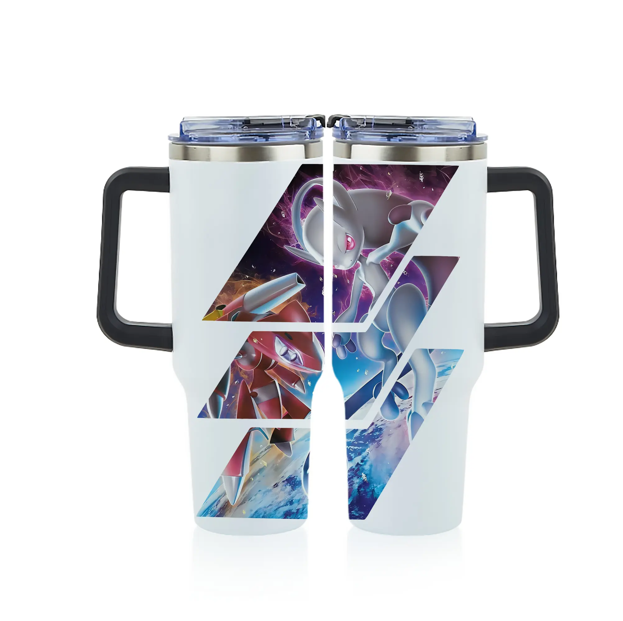 ポケモン グッズ,ミュウツー - 1200mL フルプリント車用タンブラー ・ 304ステンレス 内側 ・ 201ステンレス 外側 ・ 保温 保冷 ・ 通勤 ドライブ アウトドア用