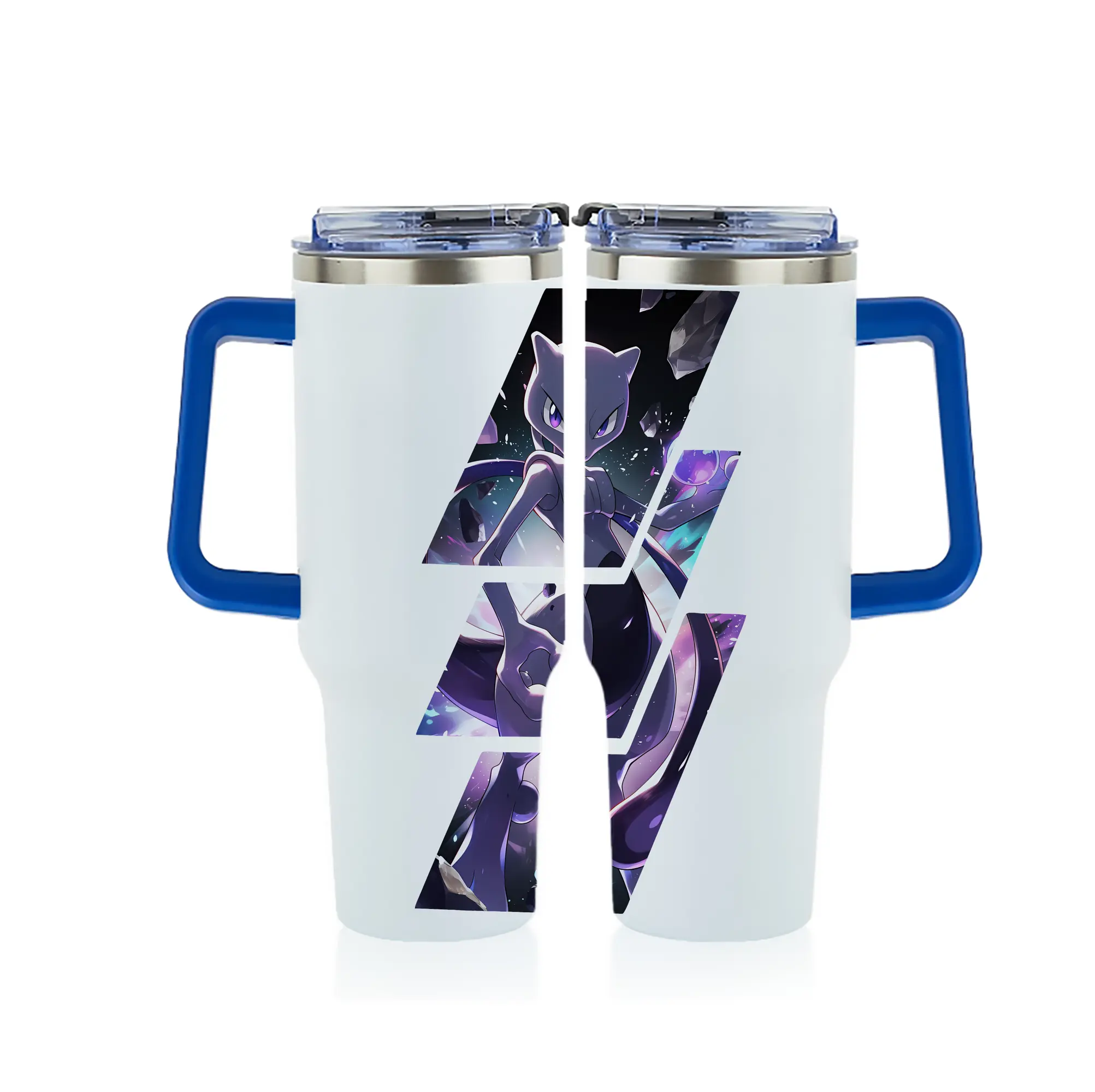ポケモン グッズ,ミュウツー - 1200mL フルプリント車用タンブラー ・ 304ステンレス 内側 ・ 201ステンレス 外側 ・ 保温 保冷 ・ 通勤 ドライブ アウトドア用