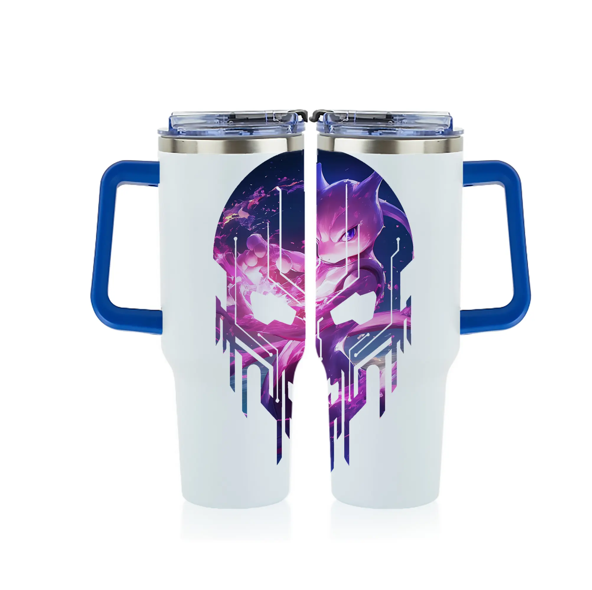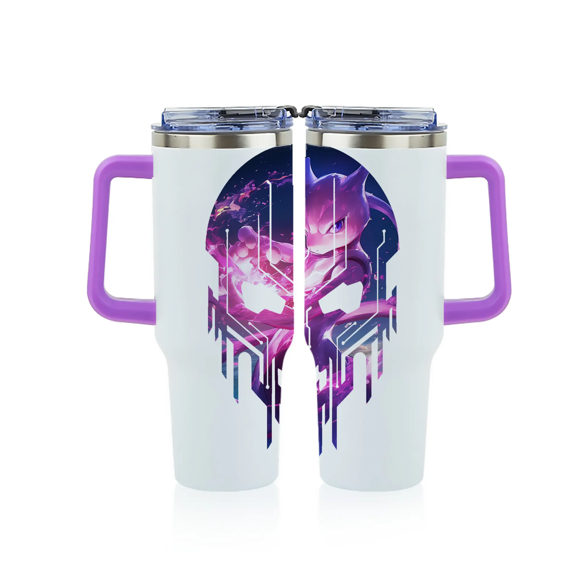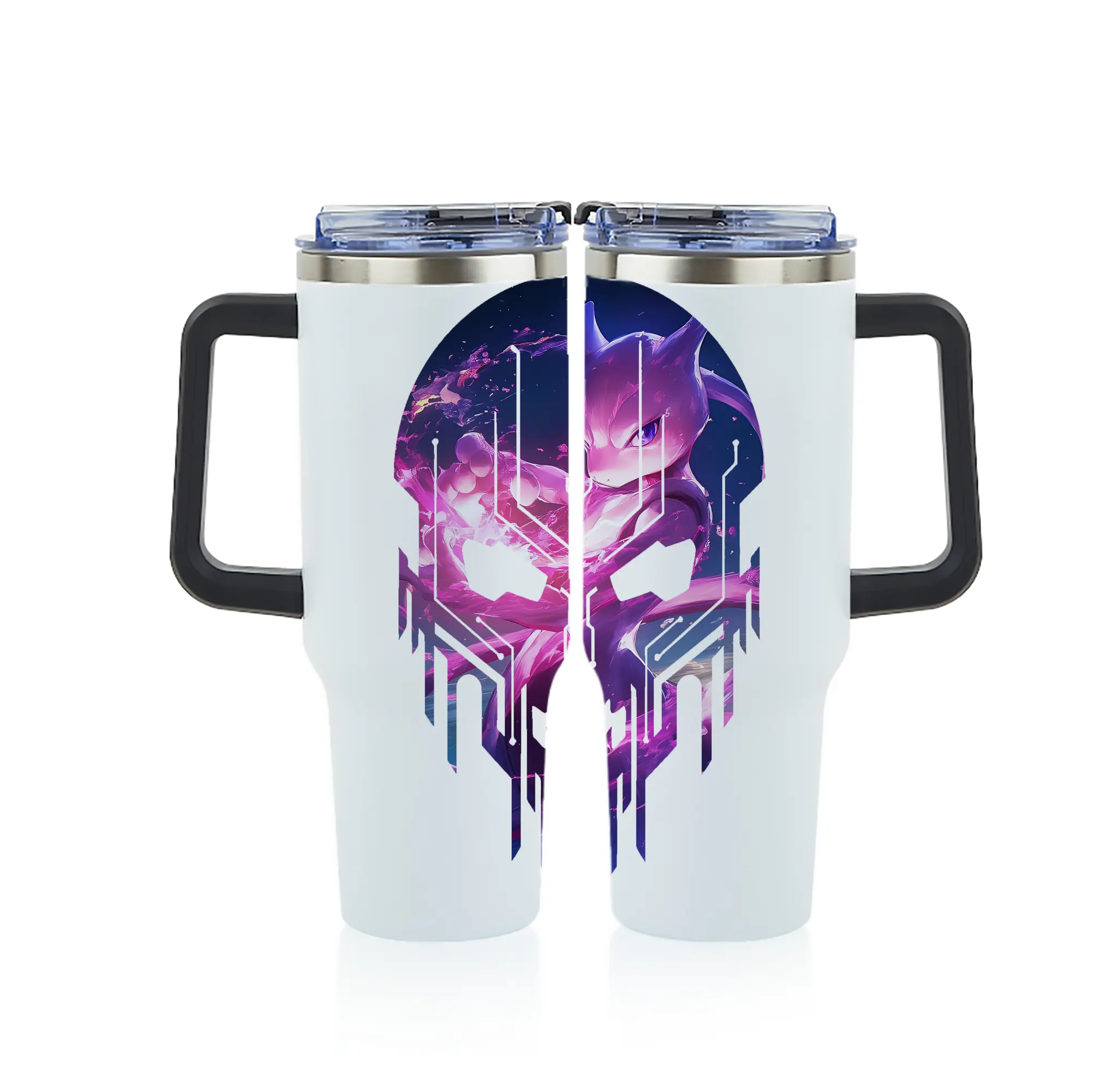 ポケモン グッズ,ミュウツー - 1200mL フルプリント車用タンブラー ・ 304ステンレス 内側 ・ 201ステンレス 外側 ・ 保温 保冷 ・ 通勤 ドライブ アウトドア用