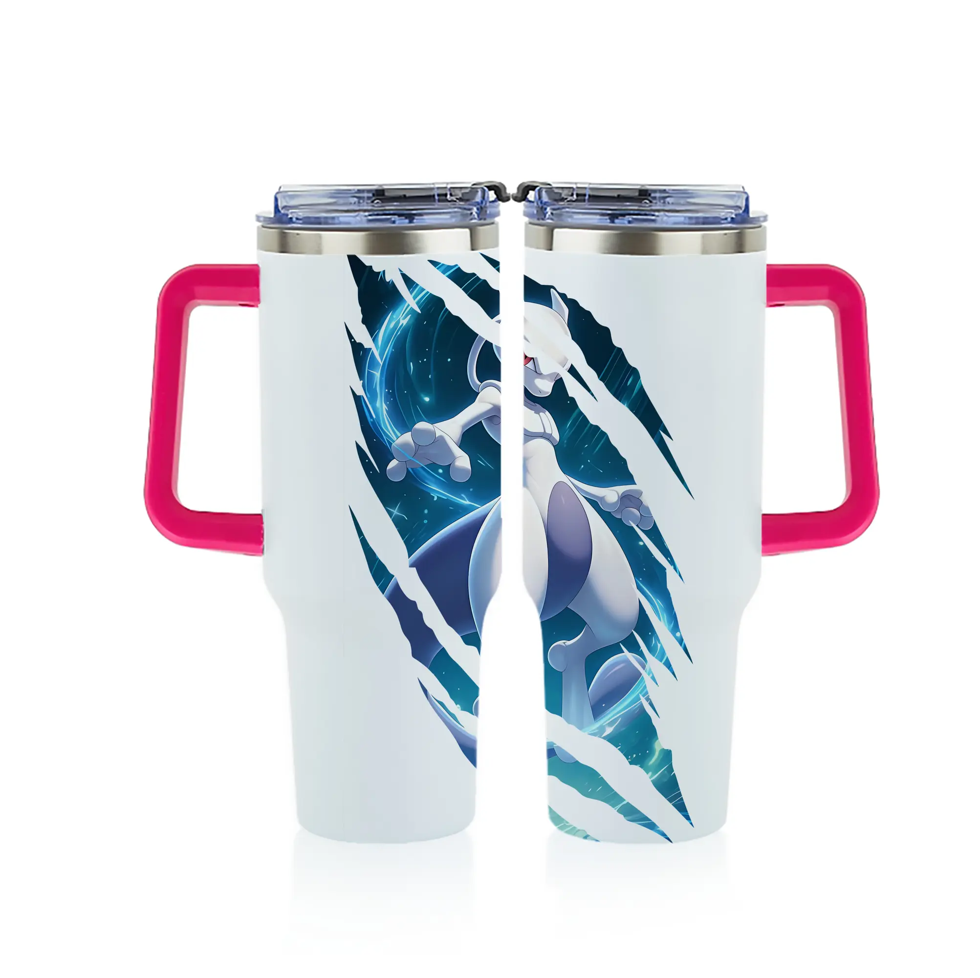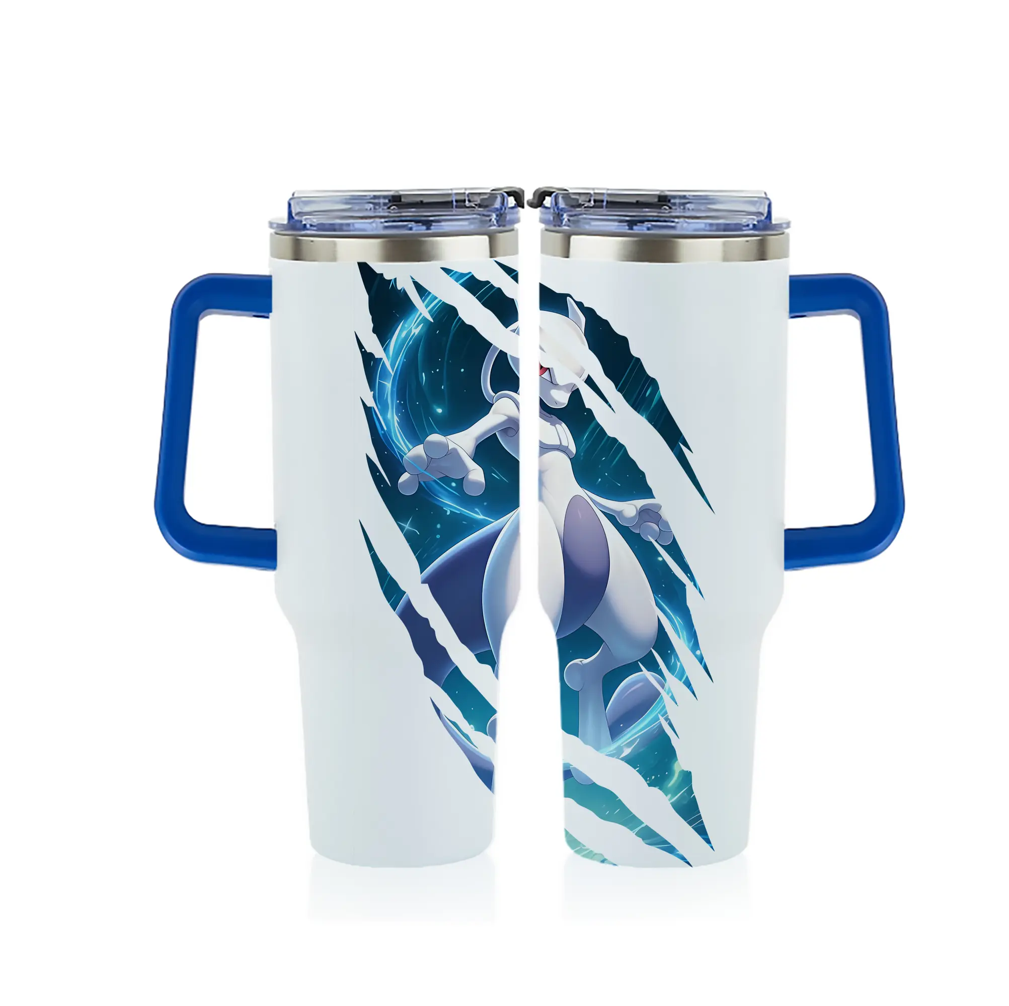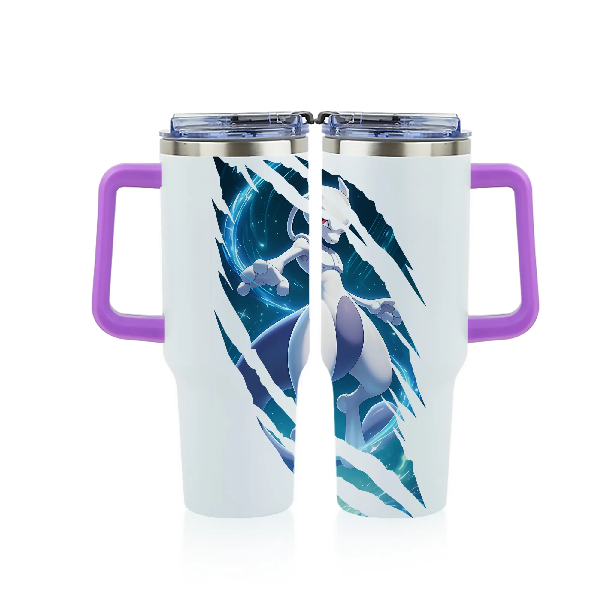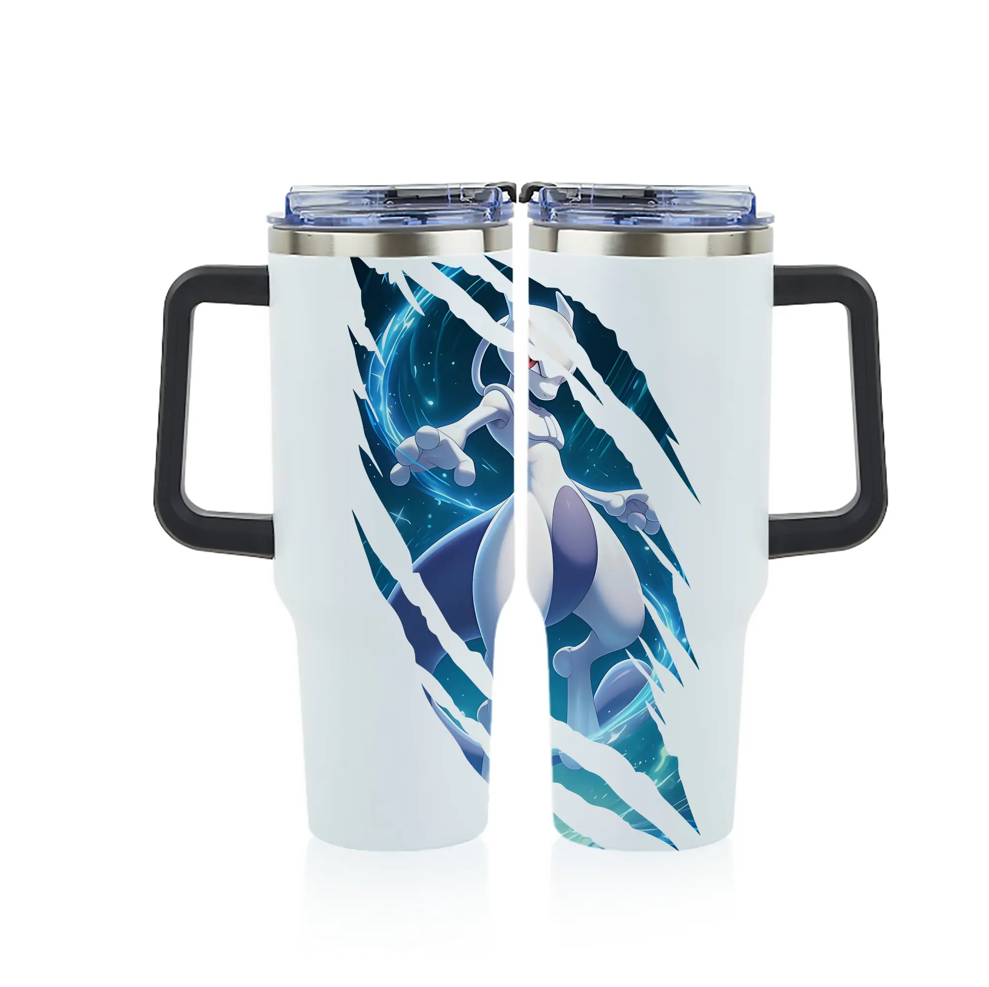 ポケモン グッズ,ミュウツー - 1200mL フルプリント車用タンブラー ・ 304ステンレス 内側 ・ 201ステンレス 外側 ・ 保温 保冷 ・ 通勤 ドライブ アウトドア用