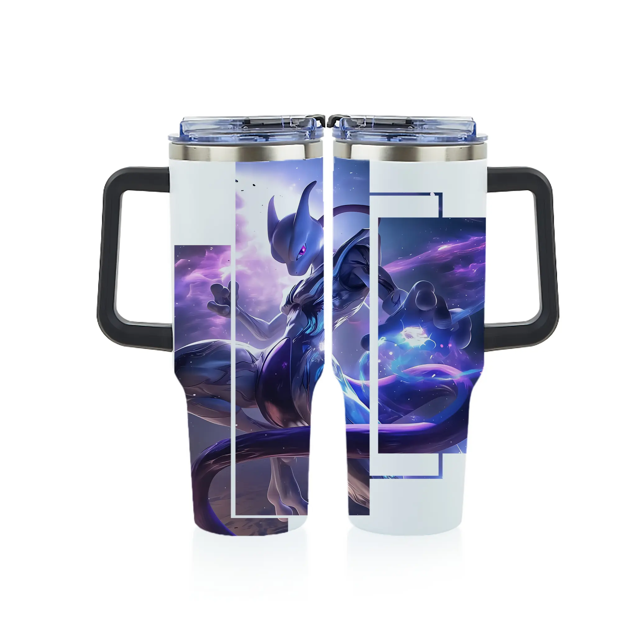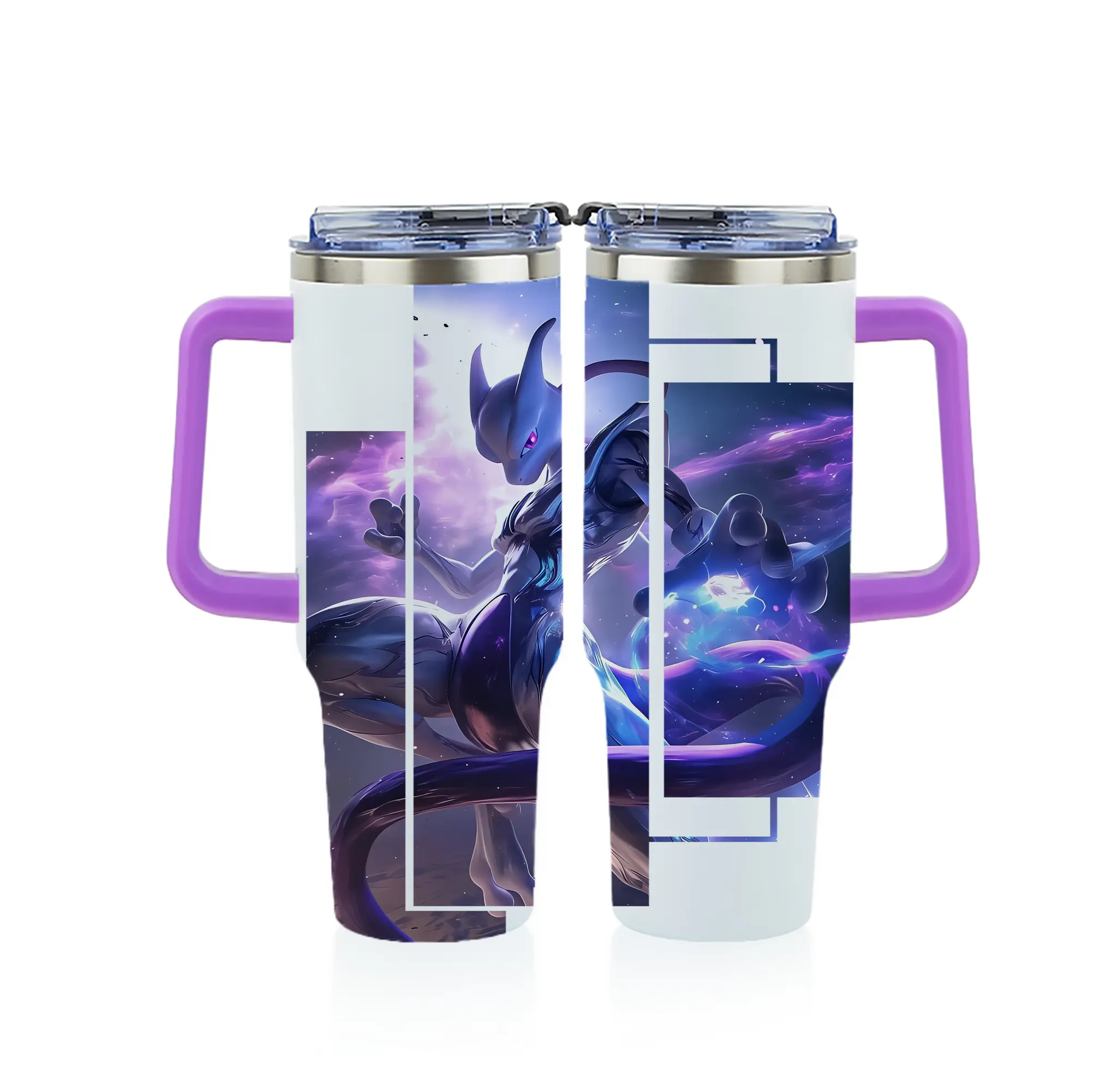 ポケモン グッズ,ミュウツー - 1200mL フルプリント車用タンブラー ・ 304ステンレス 内側 ・ 201ステンレス 外側 ・ 保温 保冷 ・ 通勤 ドライブ アウトドア用