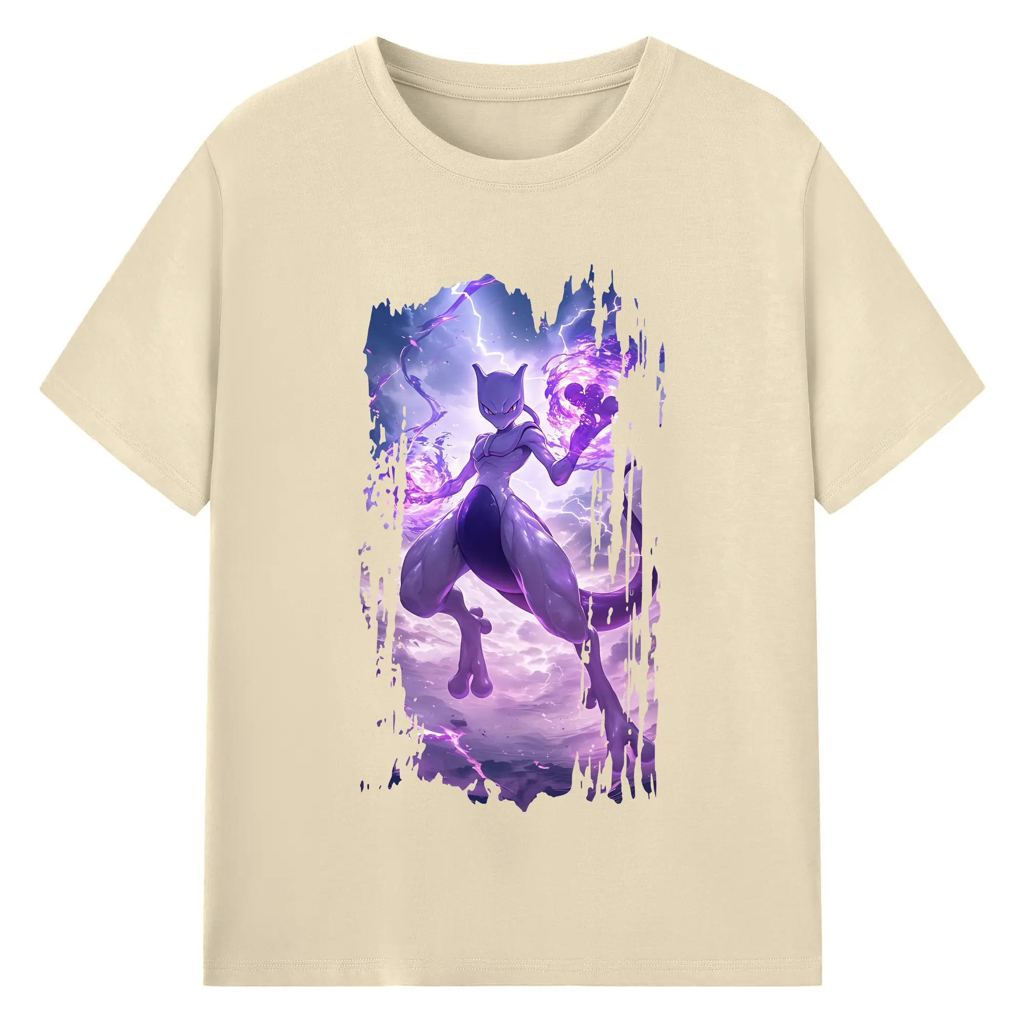 ポケモン グッズ,ミュウツー - 綿100% 半袖Tシャツ ・ フロントプリント ・ 快適 通気性 ・ 日常使い 散歩 スポーツ用