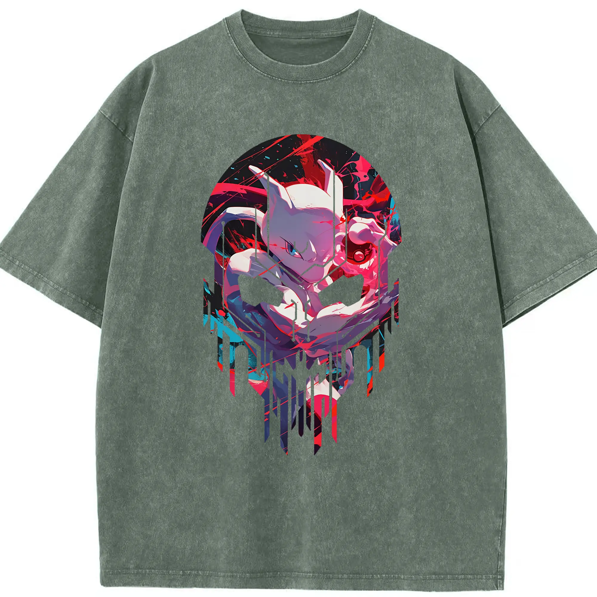 ポケモン グッズ,ミュウツー - 綿100% ヴィンテージ風 半袖Tシャツ ・ 背面プリント ・ 柔らか肌触り ・ 通気性 快適 ・ スポーツ カジュアル 外出用