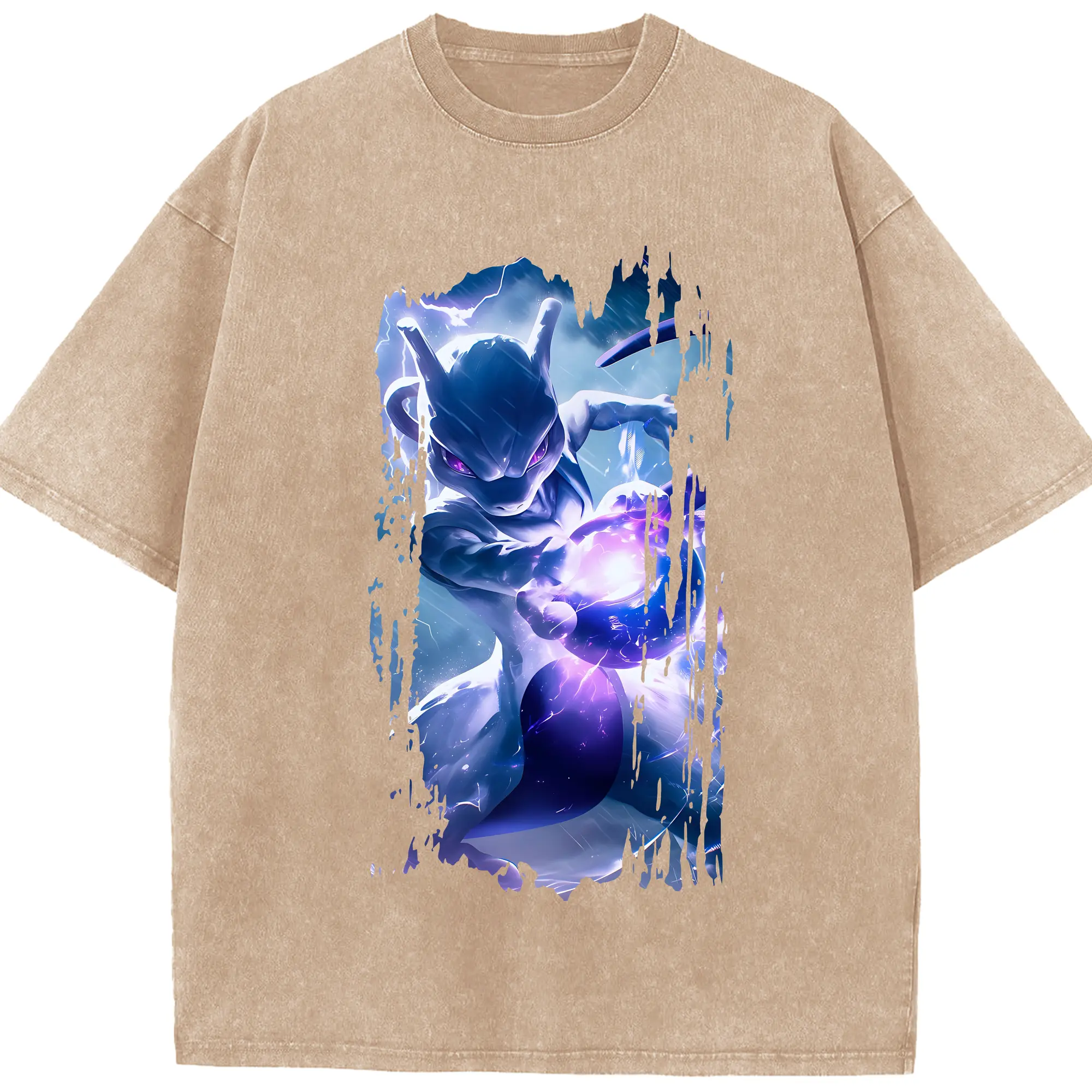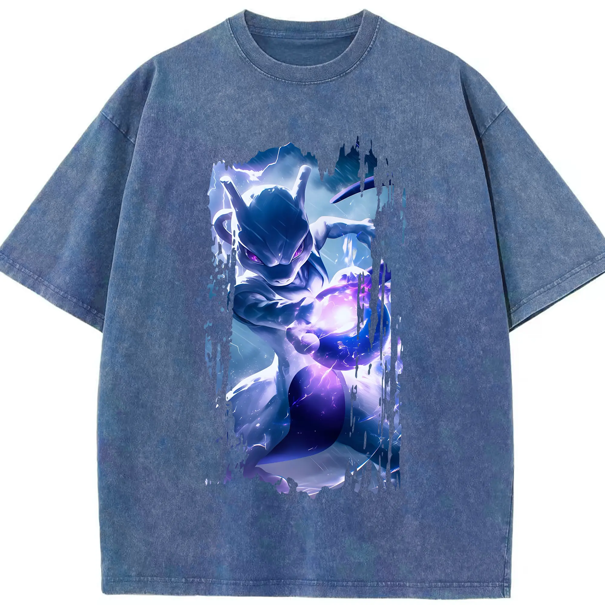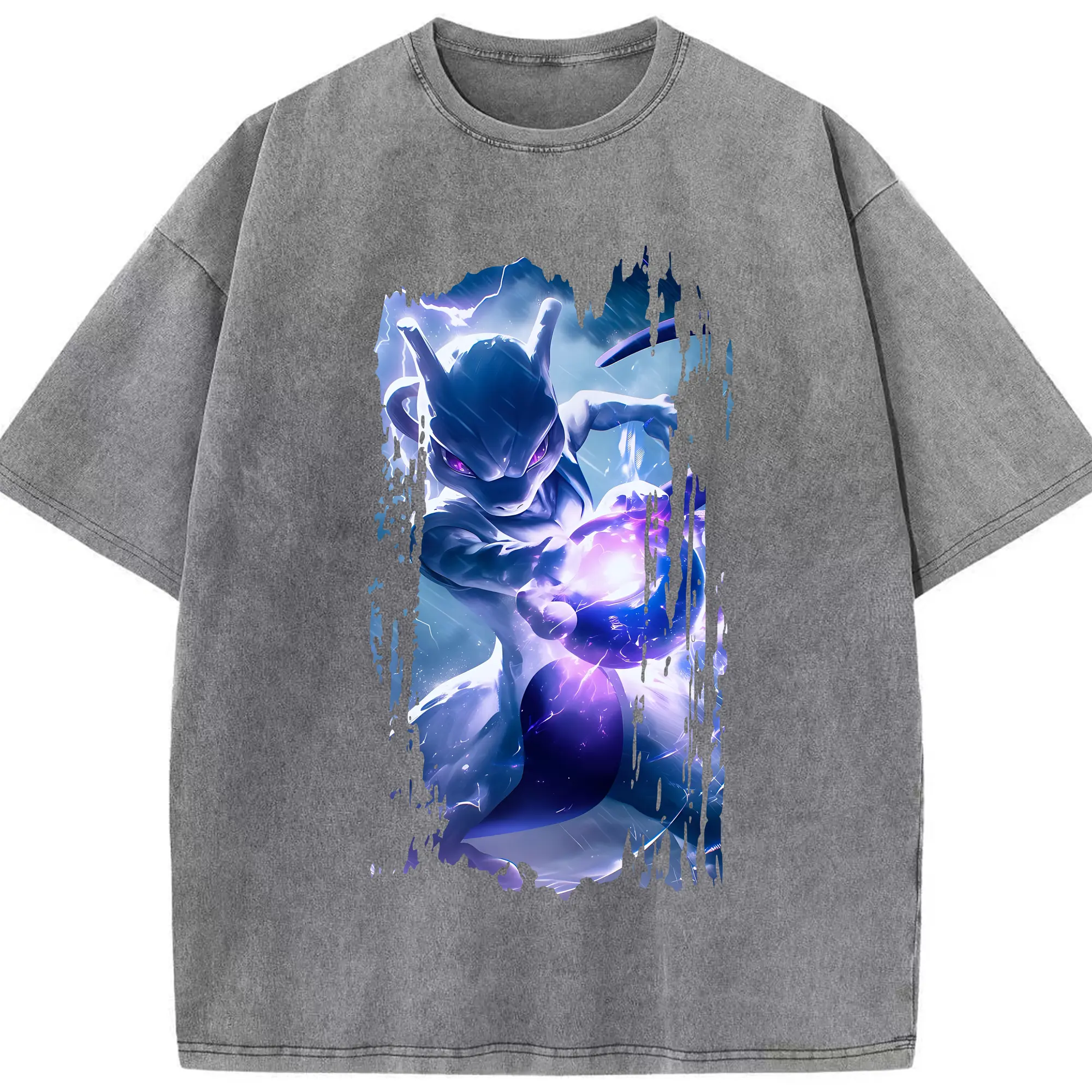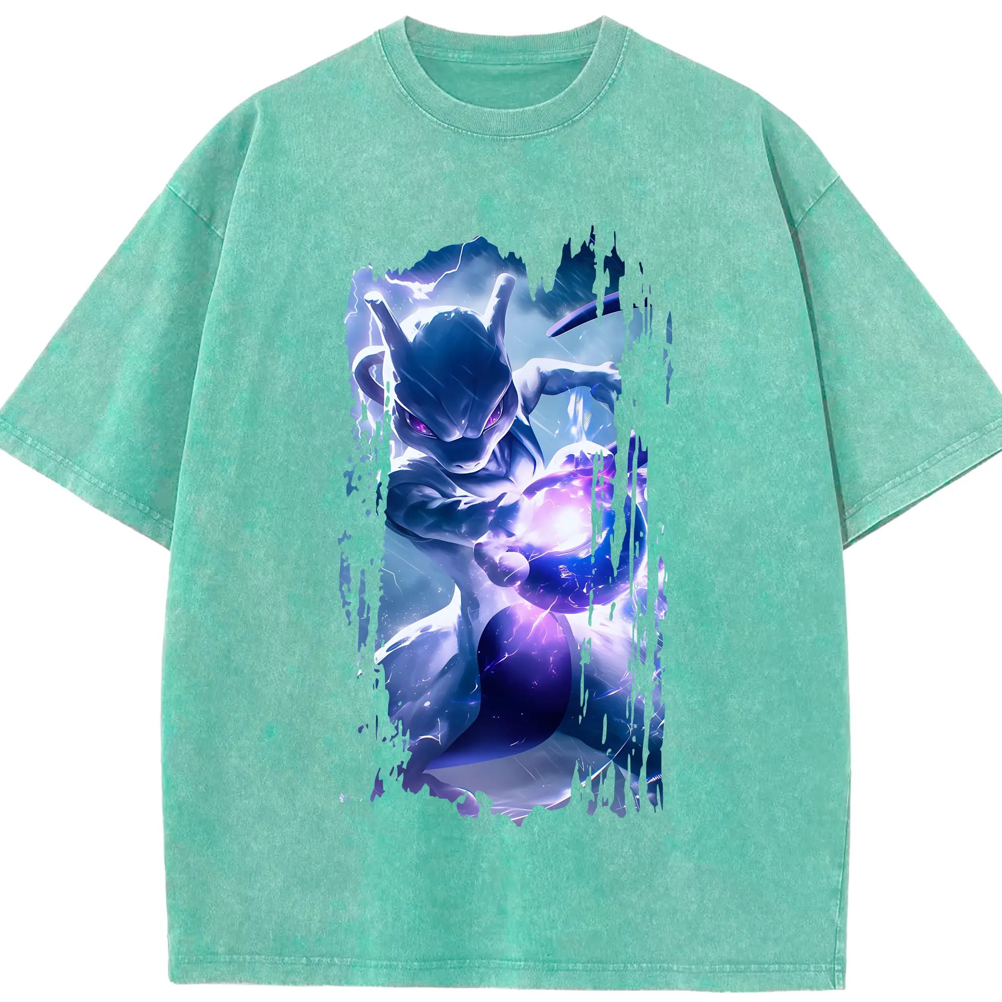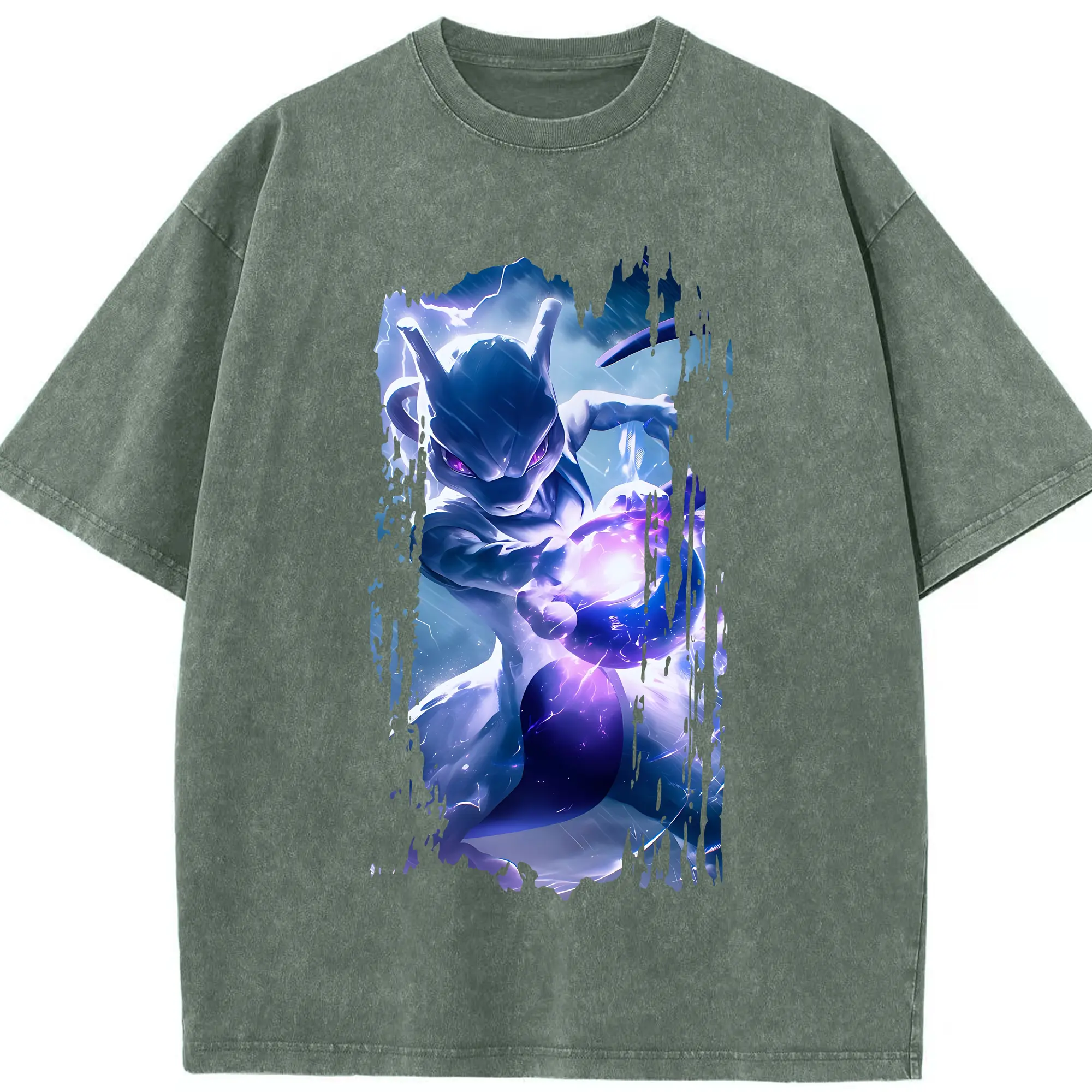 ポケモン グッズ,ミュウツー - 綿100% ヴィンテージ風 半袖Tシャツ ・ 背面プリント ・ 柔らか肌触り ・ 通気性 快適 ・ スポーツ カジュアル 外出用