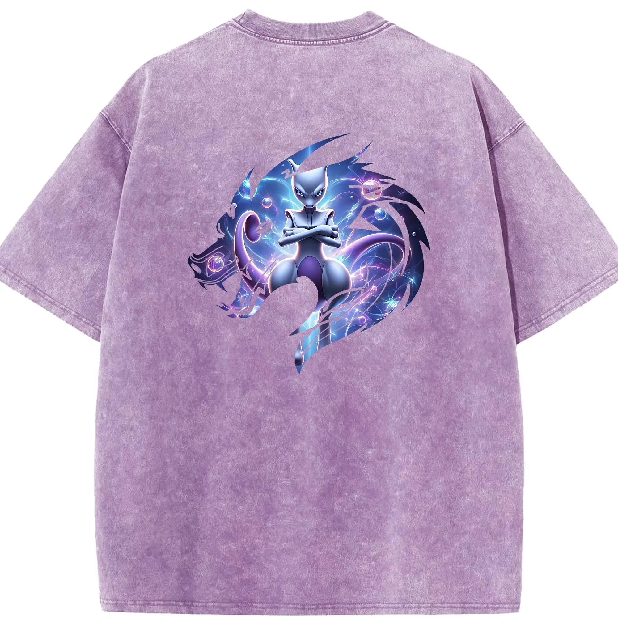 ポケモン グッズ,ミュウツー - 綿100% ヴィンテージ風 半袖Tシャツ ・ フロントプリント ・ 柔らか肌触り ・ 通気性 快適 ・ スポーツ カジュアル 外出用