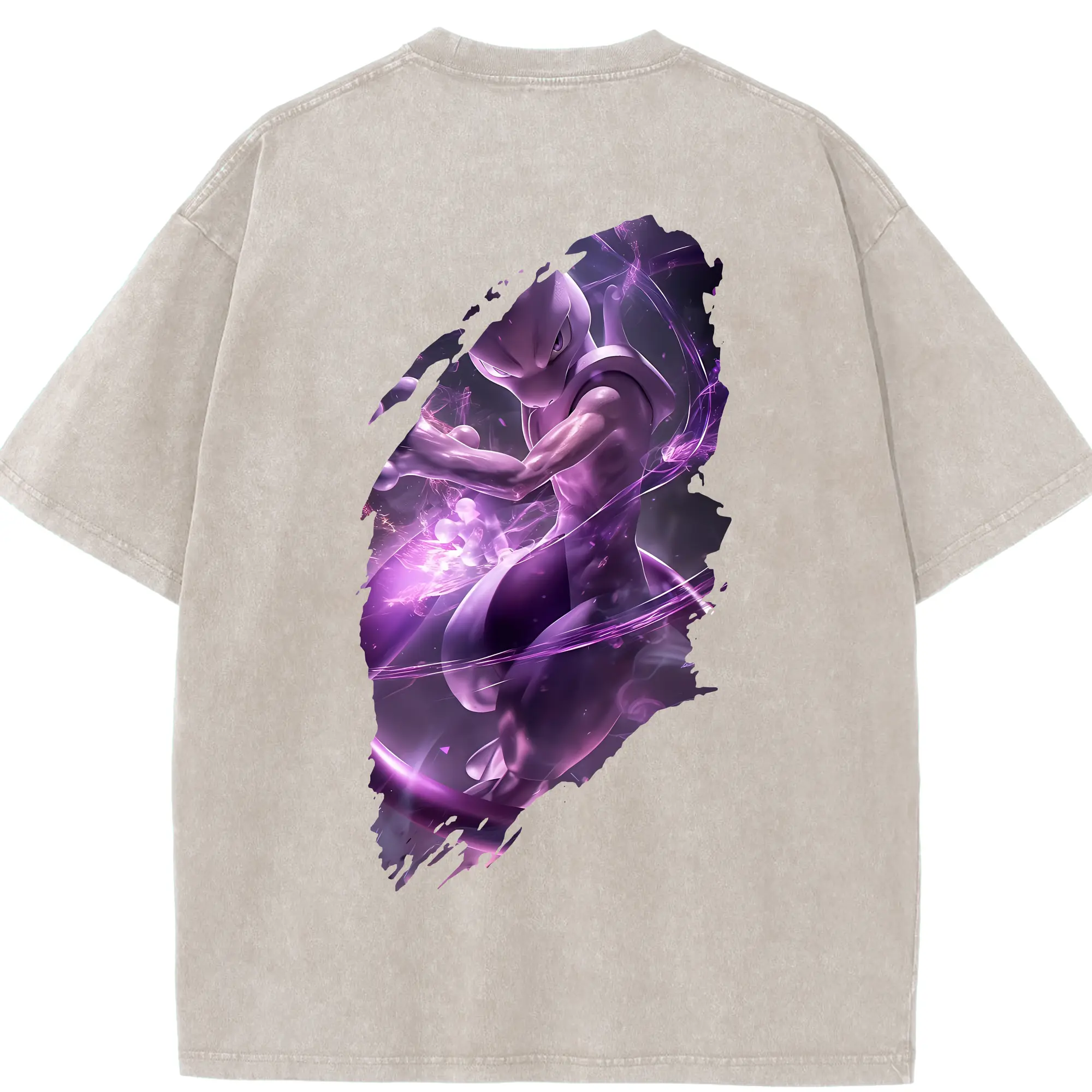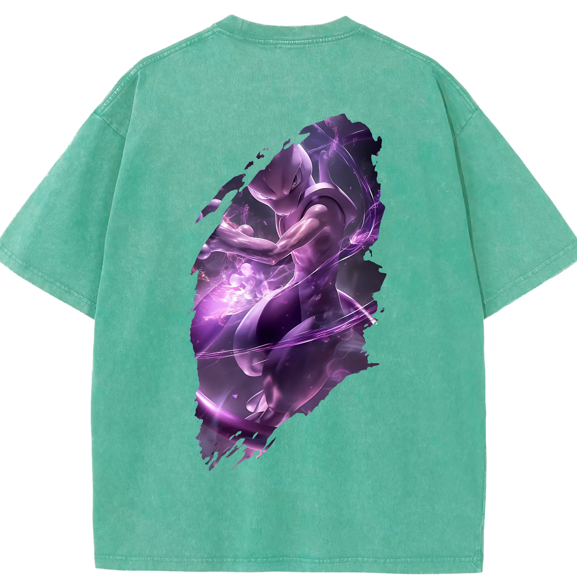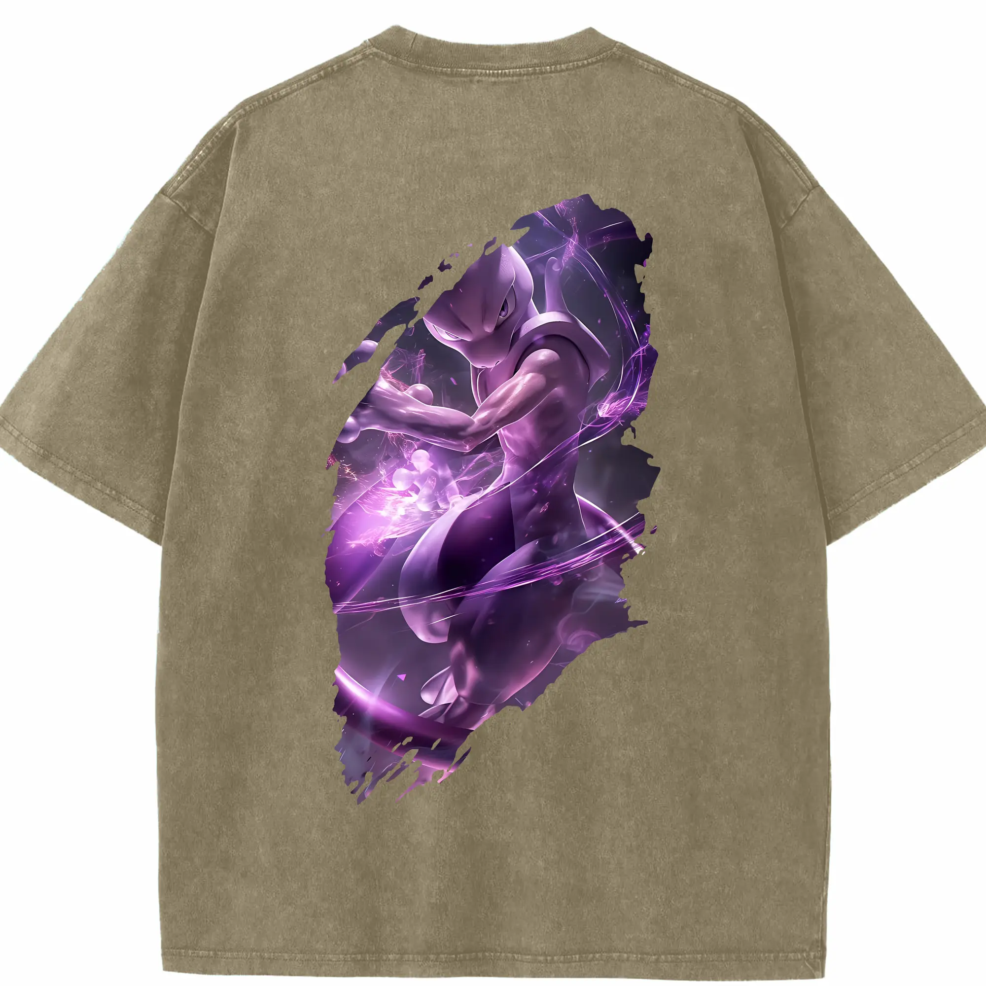ポケモン グッズ,ミュウツー - 綿100% ヴィンテージ風 半袖Tシャツ ・ フロントプリント ・ 柔らか肌触り ・ 通気性 快適 ・ スポーツ カジュアル 外出用