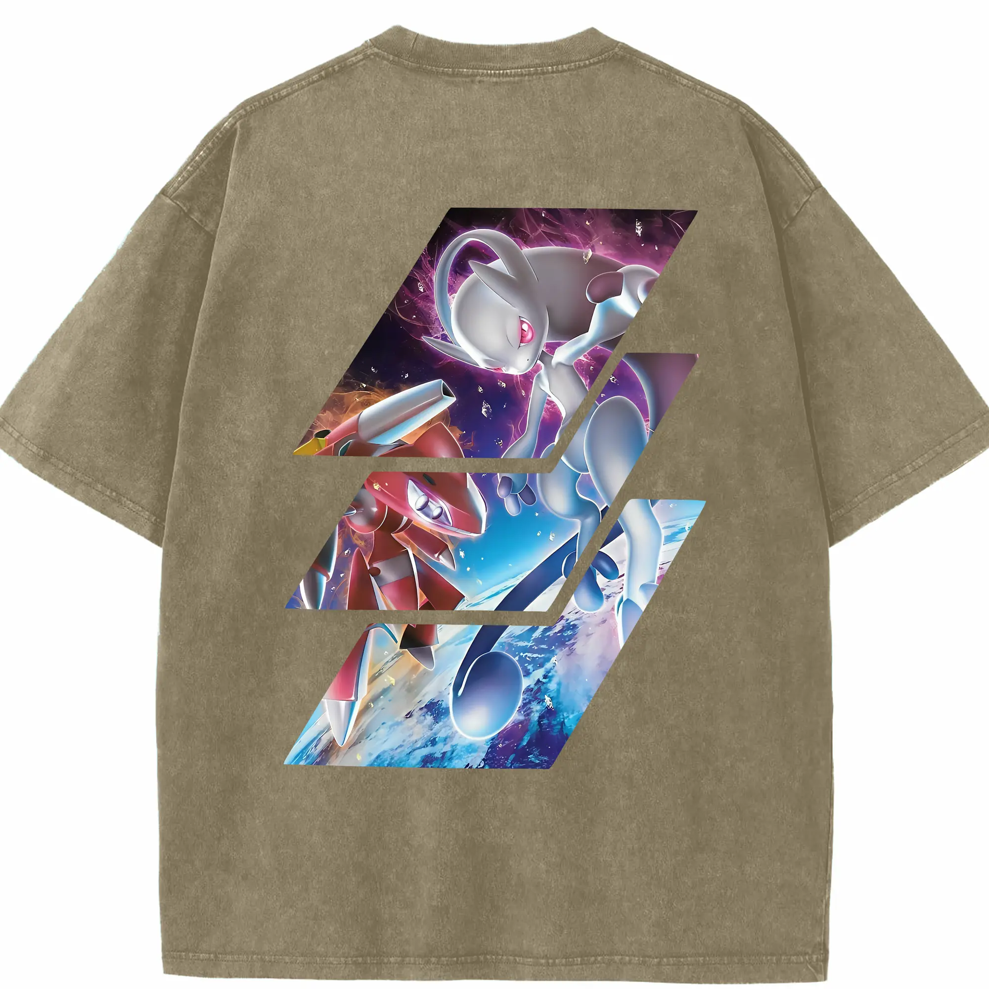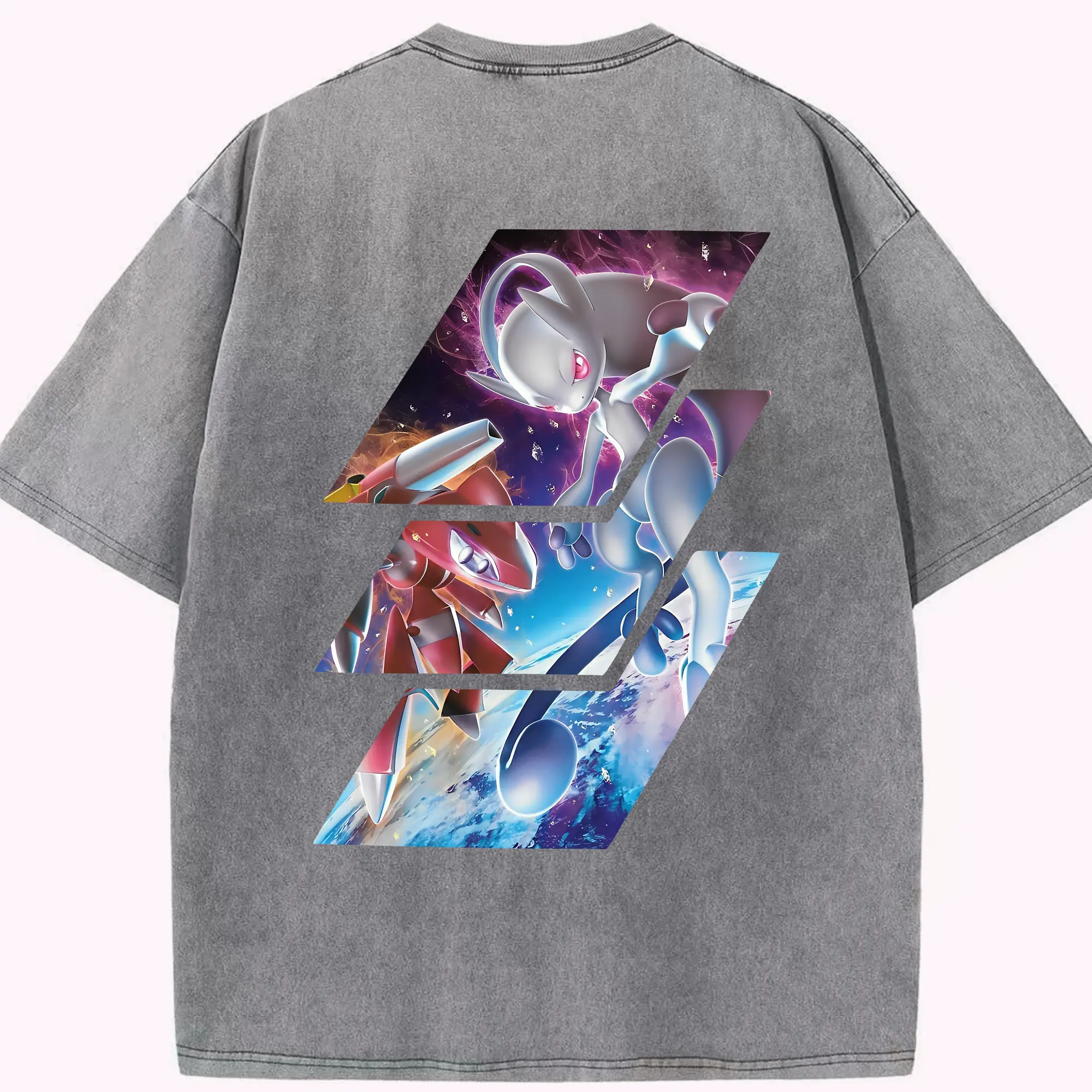 ポケモン グッズ,ミュウツー - 綿100% ヴィンテージ風 半袖Tシャツ ・ フロントプリント ・ 柔らか肌触り ・ 通気性 快適 ・ スポーツ カジュアル 外出用