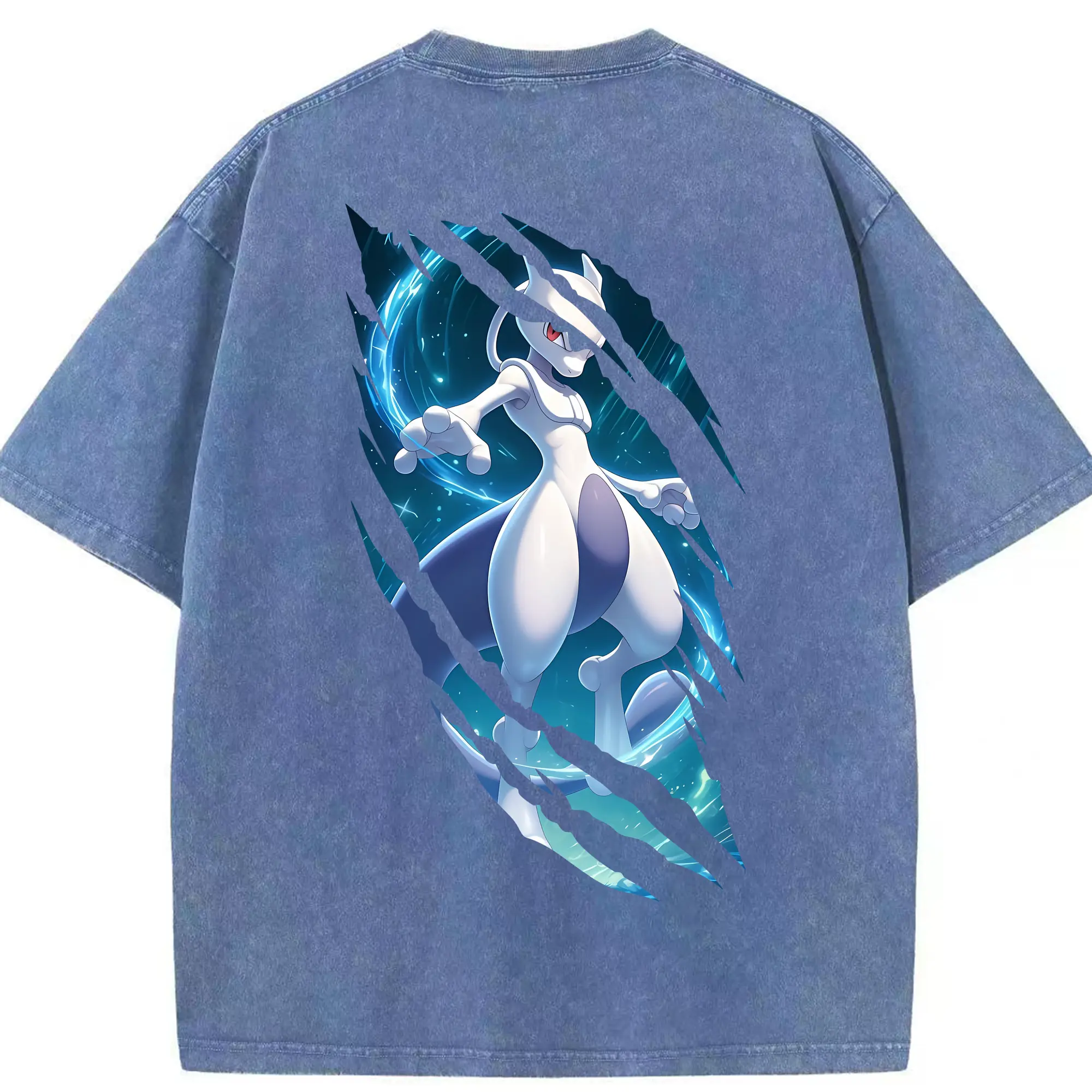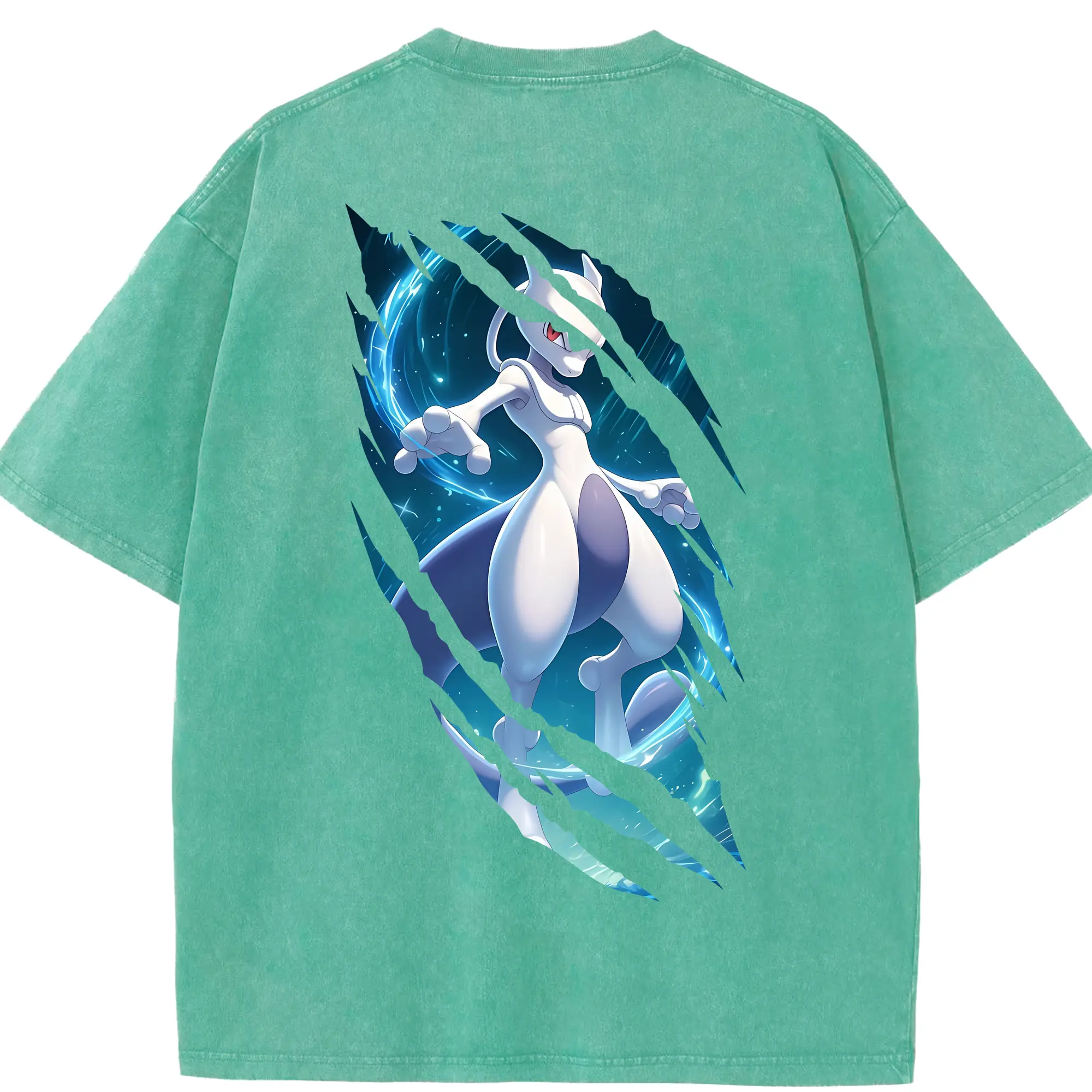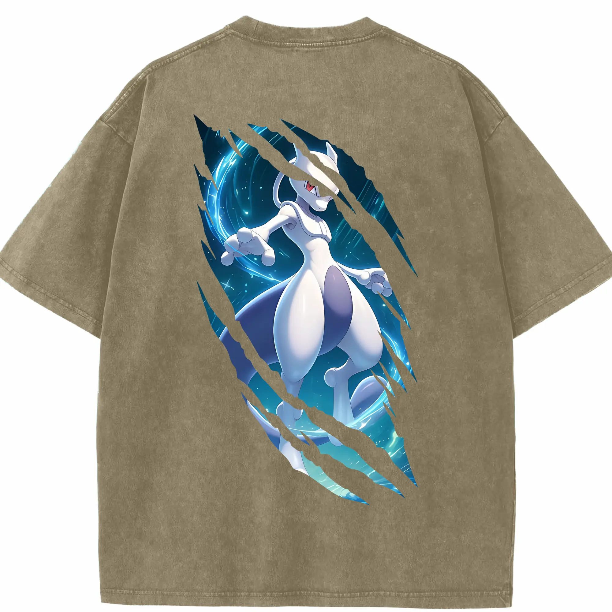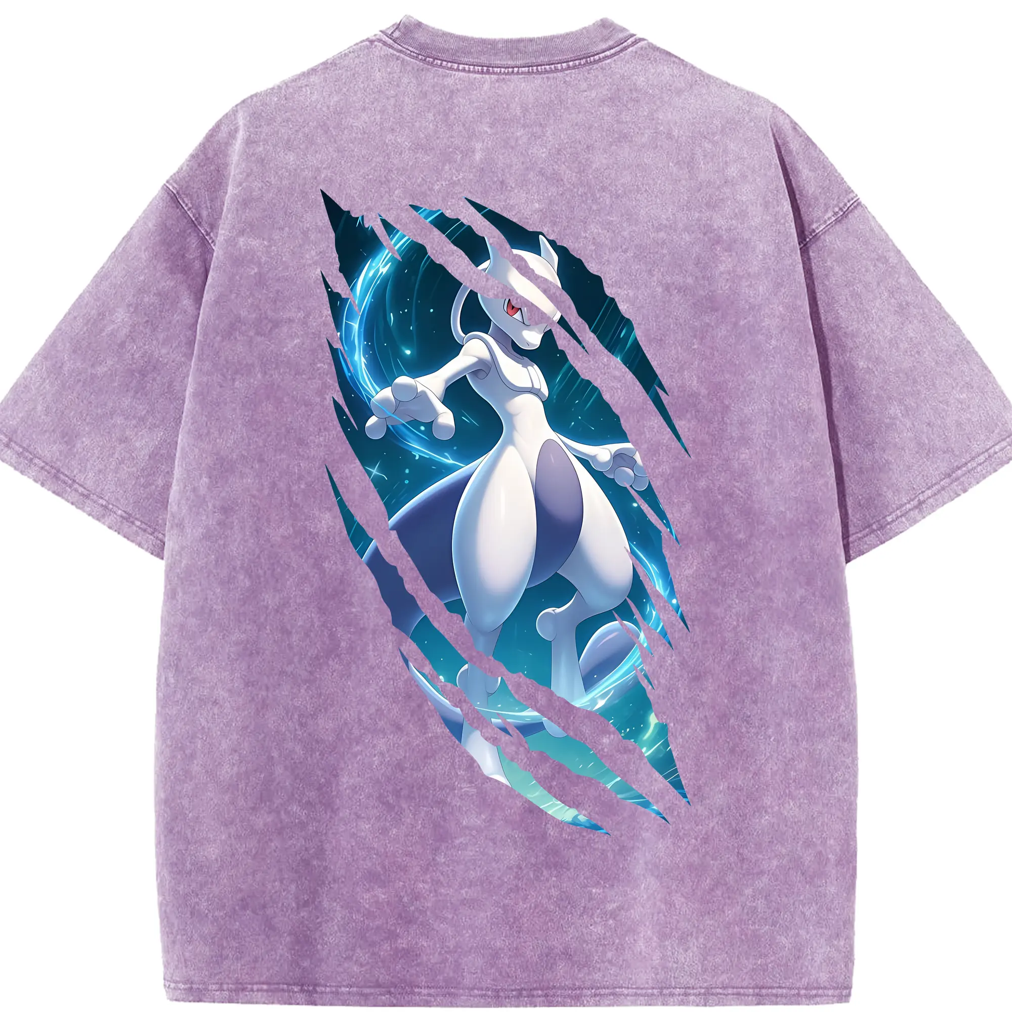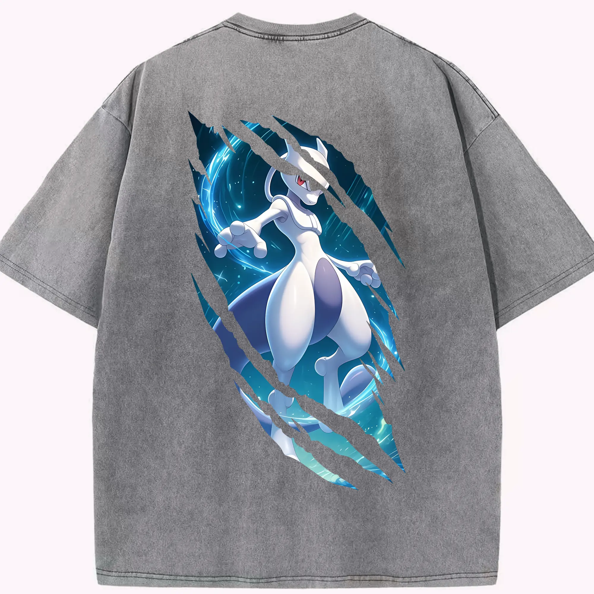 ポケモン グッズ,ミュウツー - 綿100% ヴィンテージ風 半袖Tシャツ ・ フロントプリント ・ 柔らか肌触り ・ 通気性 快適 ・ スポーツ カジュアル 外出用