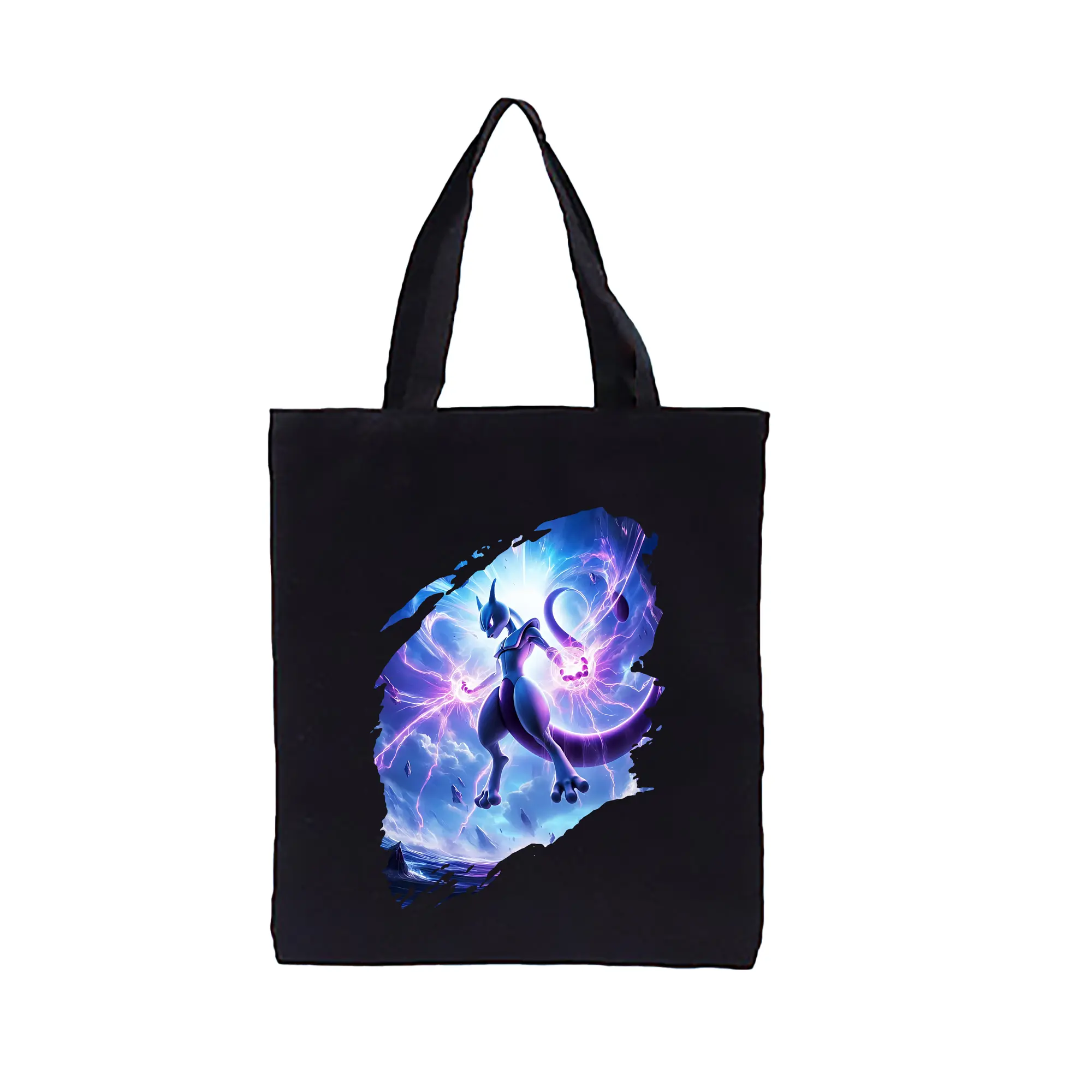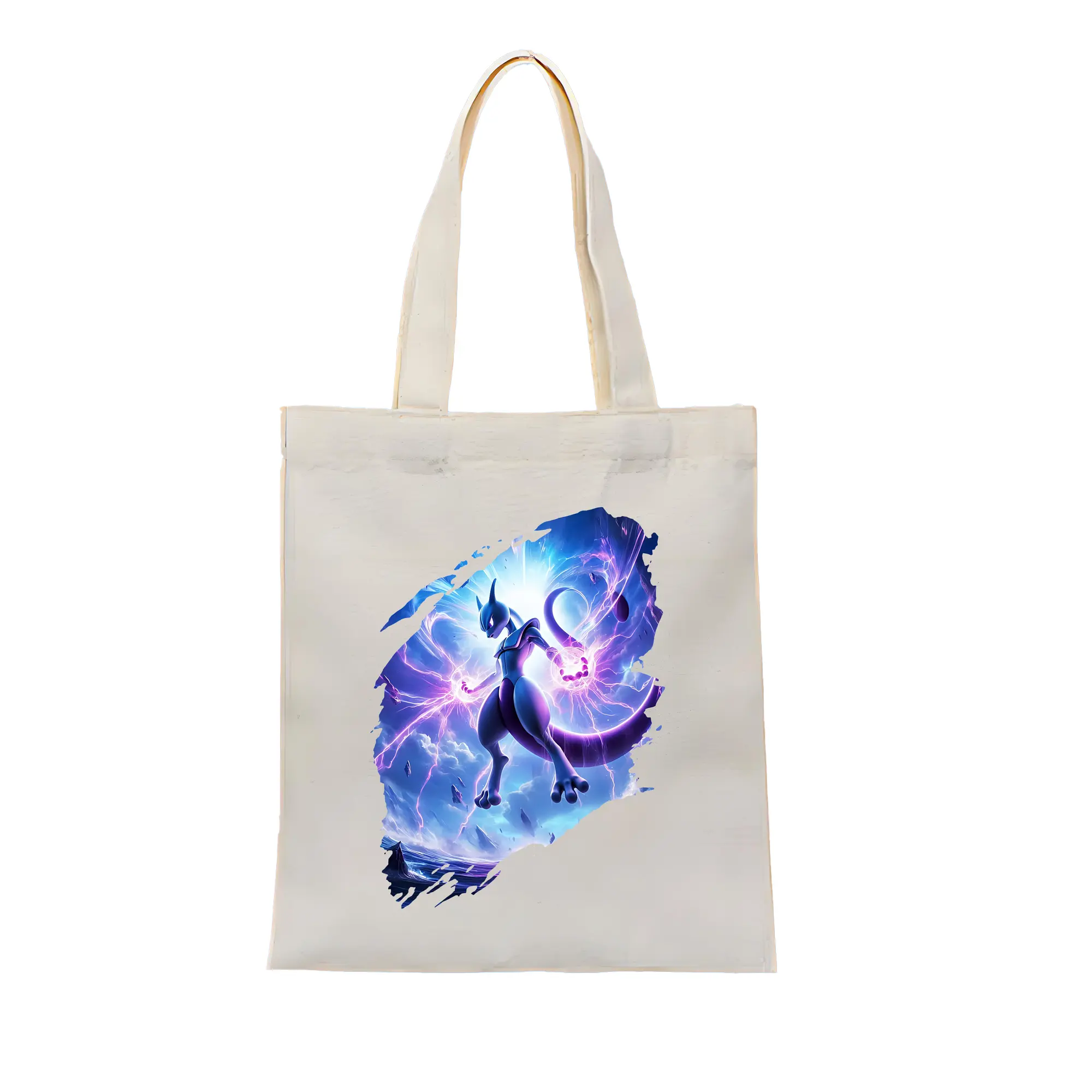 ポケモン グッズ,ミュウツー - 縦型キャンバス手提げバッグ(トートバッグ) ・ キャンバス素材 ・ ショッピング用 ・ 軽量 丈夫 お手入れ簡単