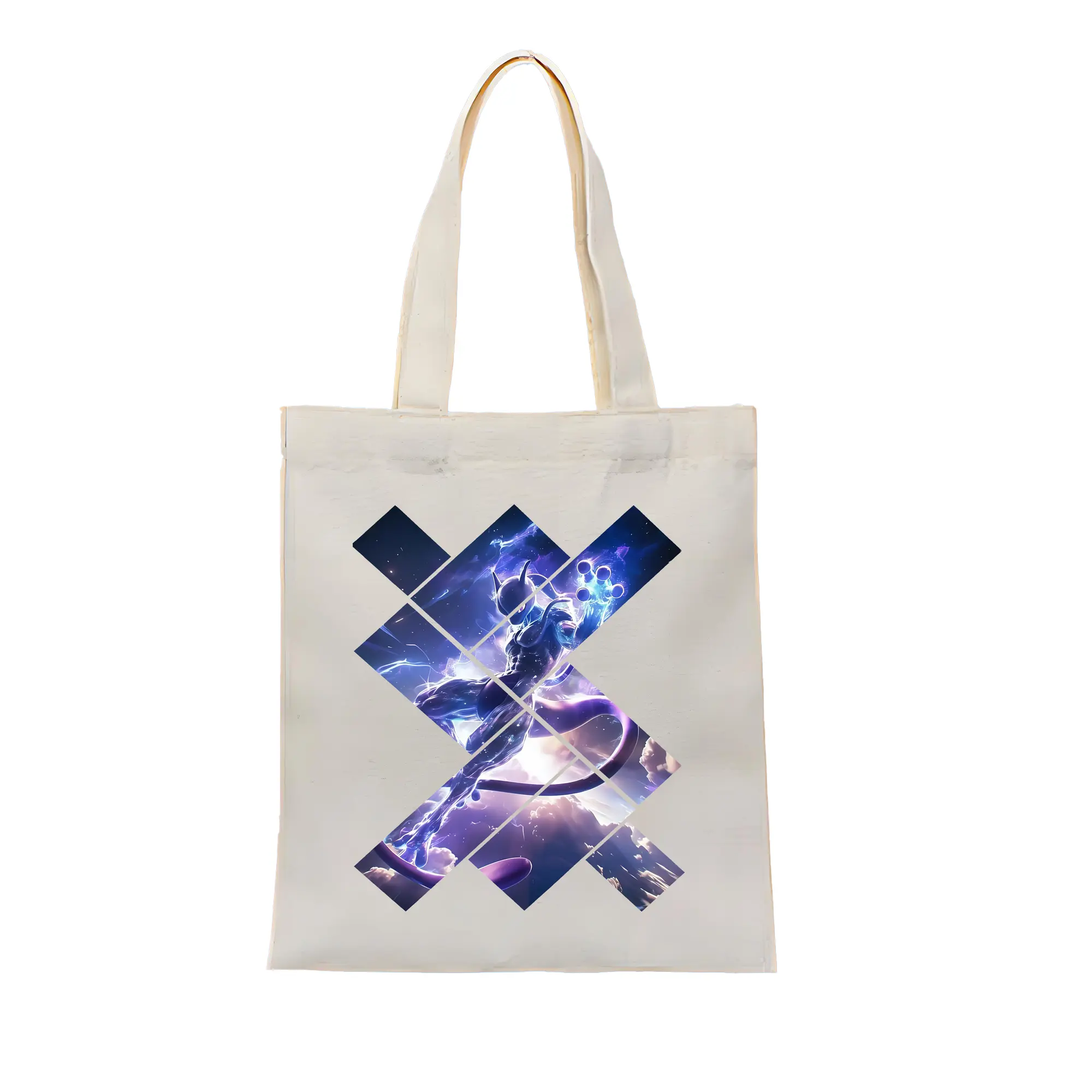ポケモン グッズ,ミュウツー - 縦型キャンバス手提げバッグ(トートバッグ) ・ キャンバス素材 ・ ショッピング用 ・ 軽量 丈夫 お手入れ簡単