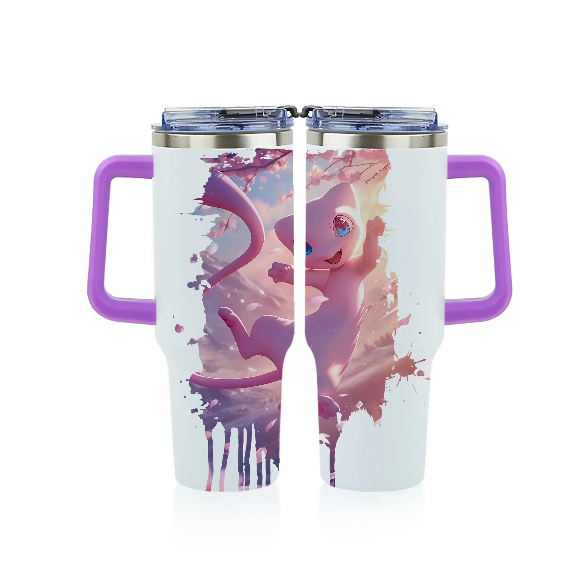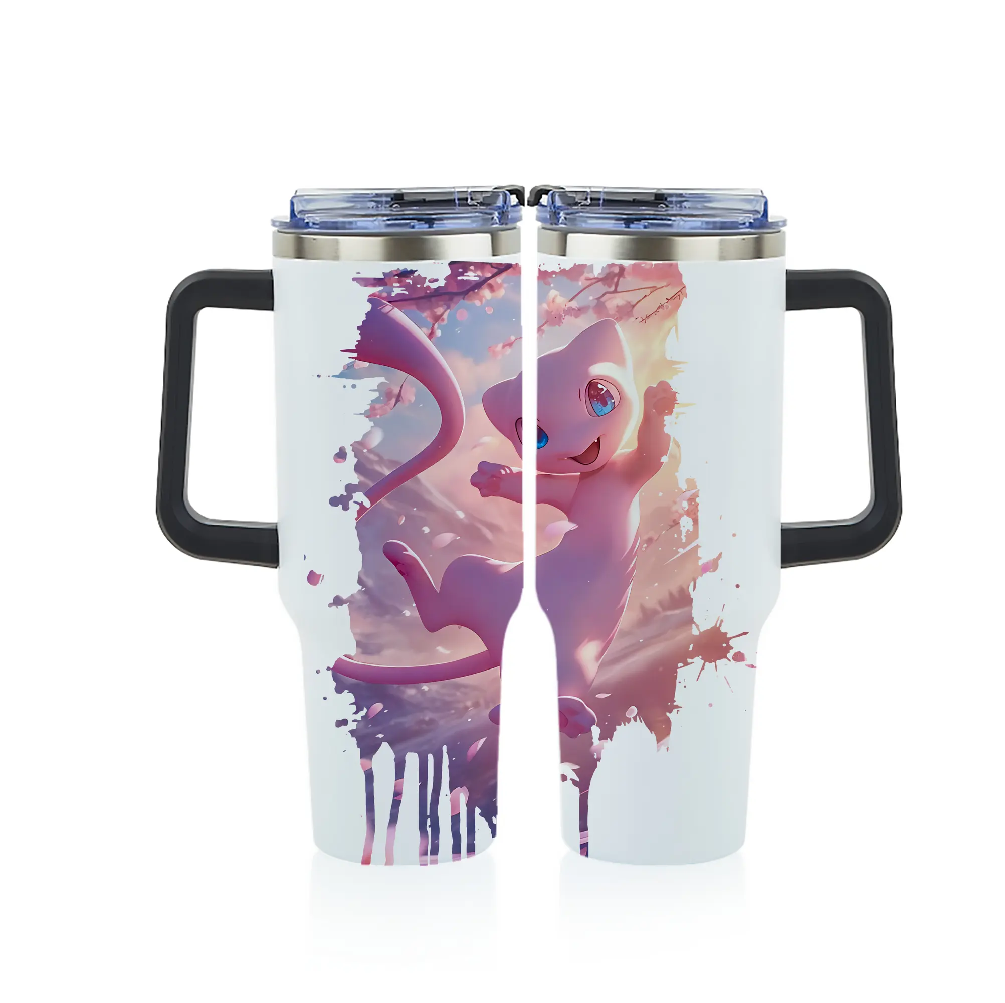 ポケモン グッズ,ミュウ - 1200mL フルプリント車用タンブラー ・ 304ステンレス 内側 ・ 201ステンレス 外側 ・ 保温 保冷 ・ 通勤 ドライブ アウトドア用