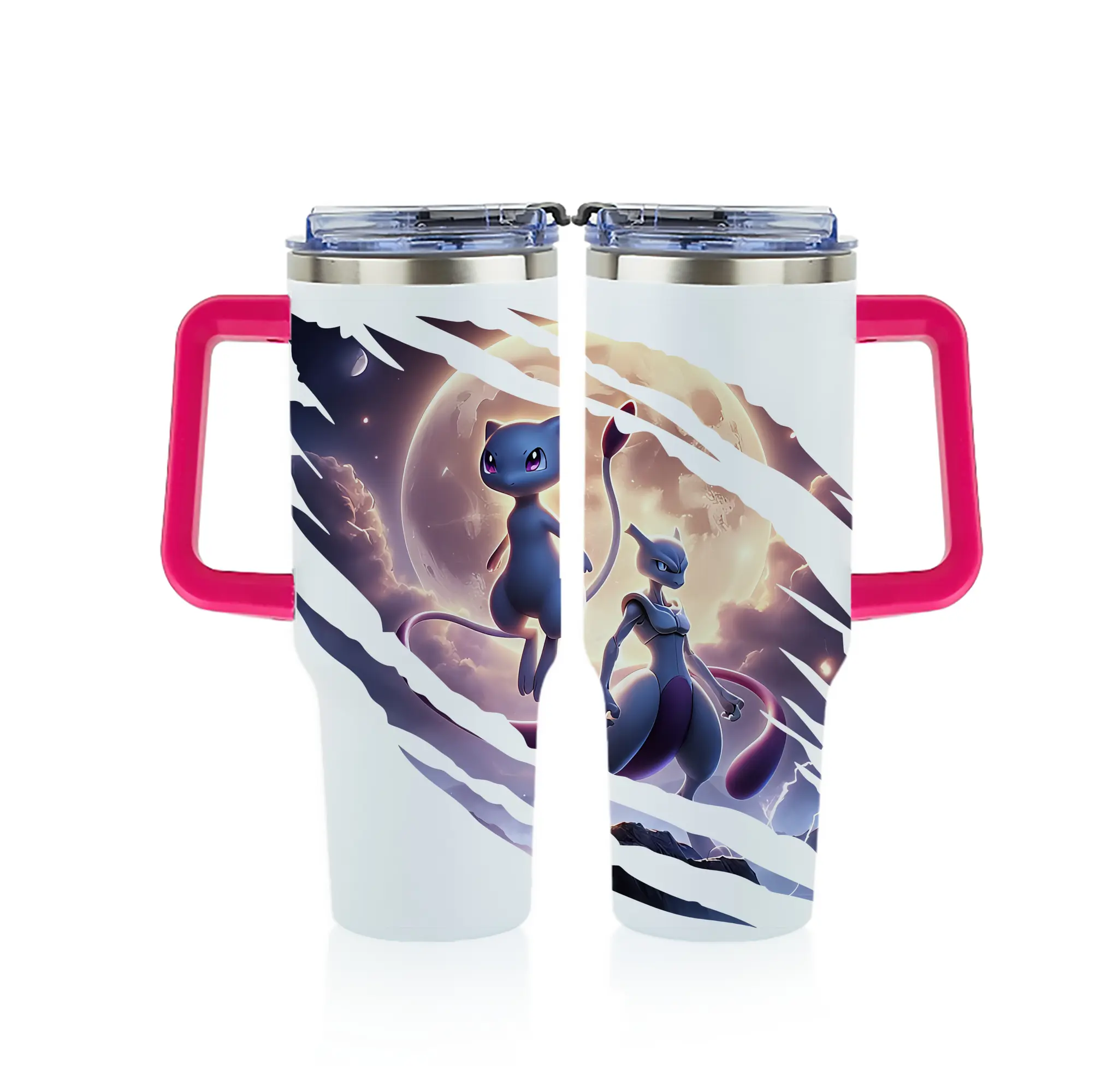 ポケモン グッズ,ミュウ - 1200mL フルプリント車用タンブラー ・ 304ステンレス 内側 ・ 201ステンレス 外側 ・ 保温 保冷 ・ 通勤 ドライブ アウトドア用