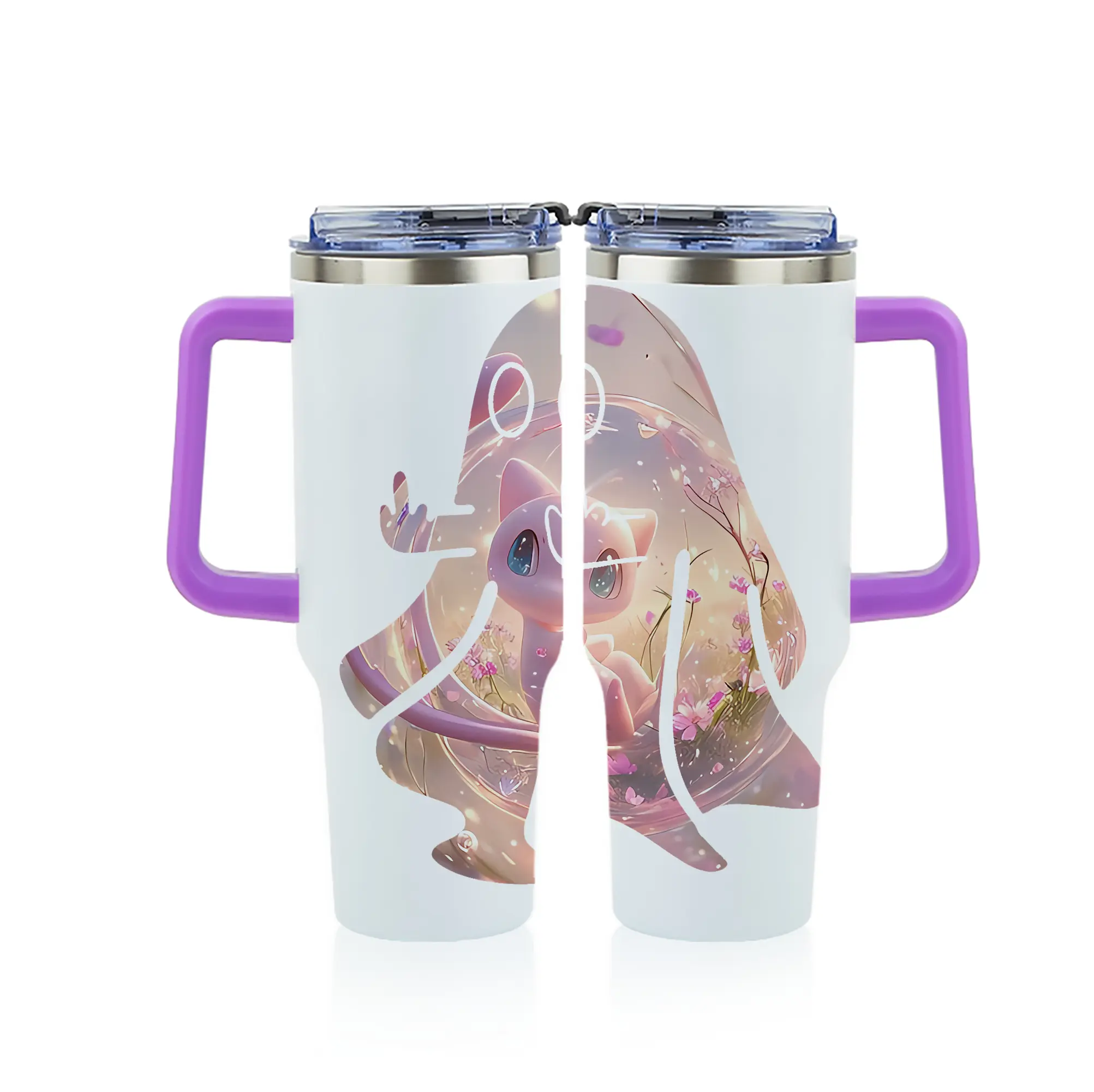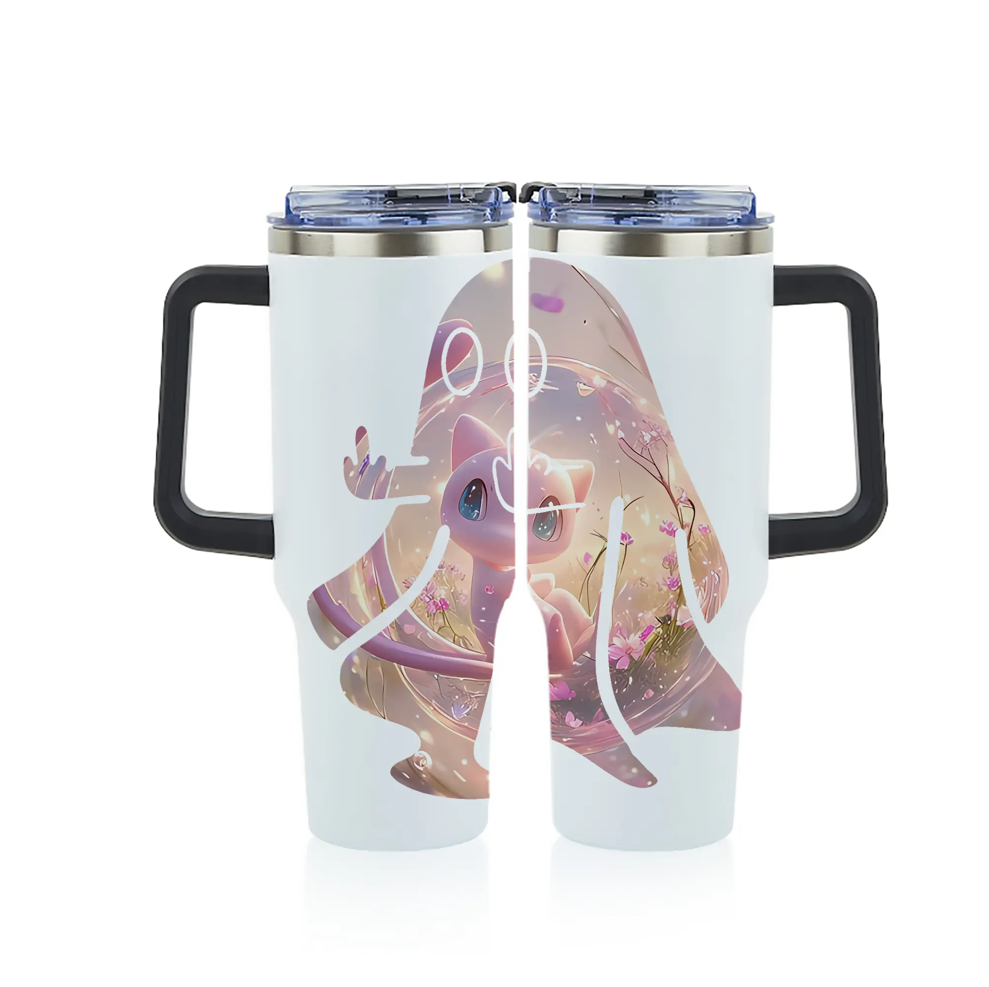 ポケモン グッズ,ミュウ - 1200mL フルプリント車用タンブラー ・ 304ステンレス 内側 ・ 201ステンレス 外側 ・ 保温 保冷 ・ 通勤 ドライブ アウトドア用