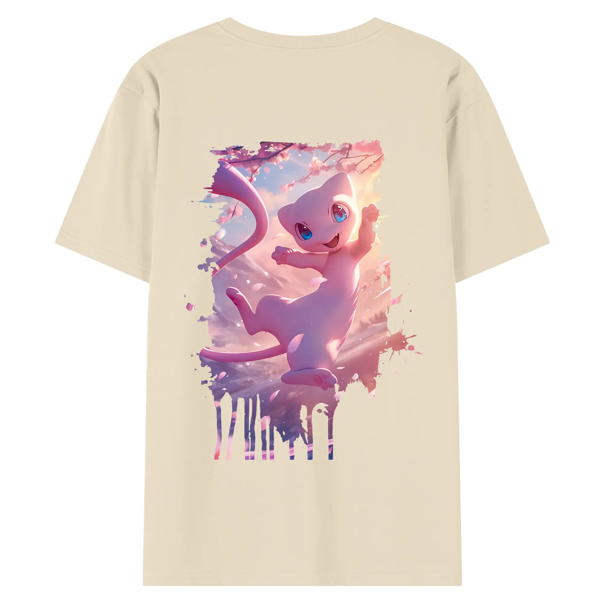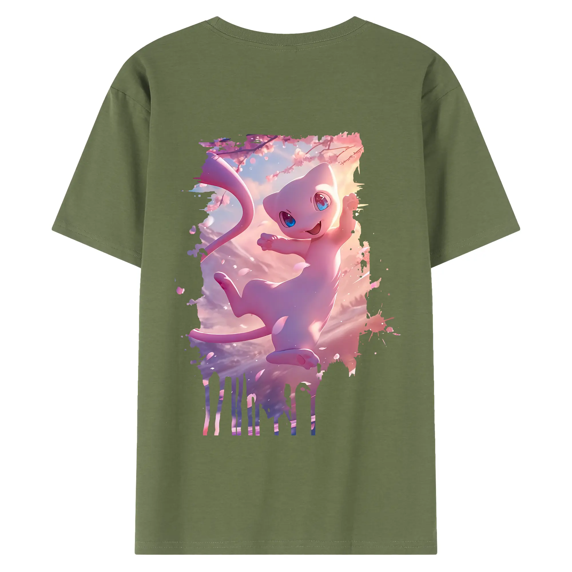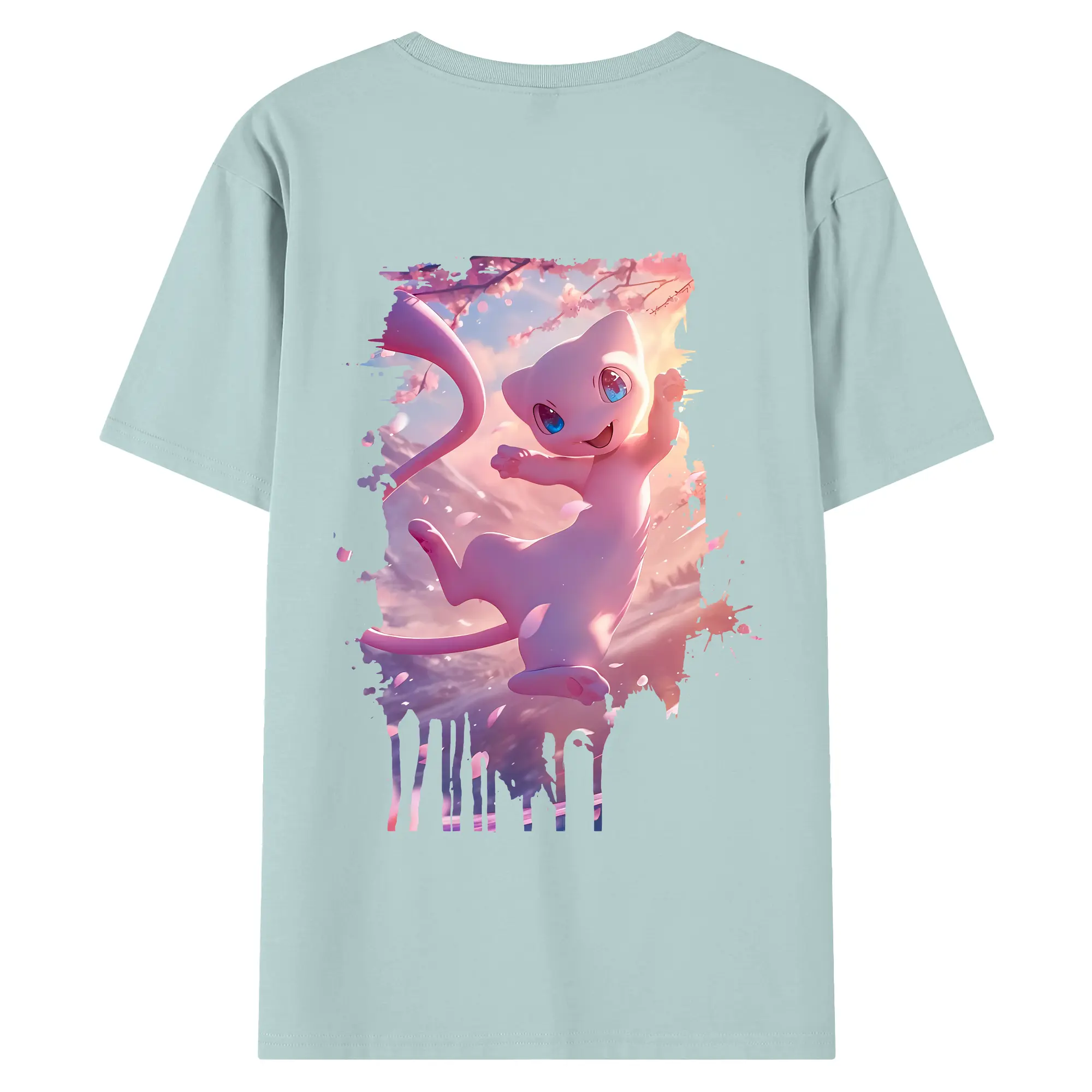 ポケモン グッズ,ミュウ - 綿100% ヴィンテージ風 半袖Tシャツ ・ 背面プリント ・ 柔らか肌触り ・ 通気性 快適 ・ スポーツ カジュアル 外出用