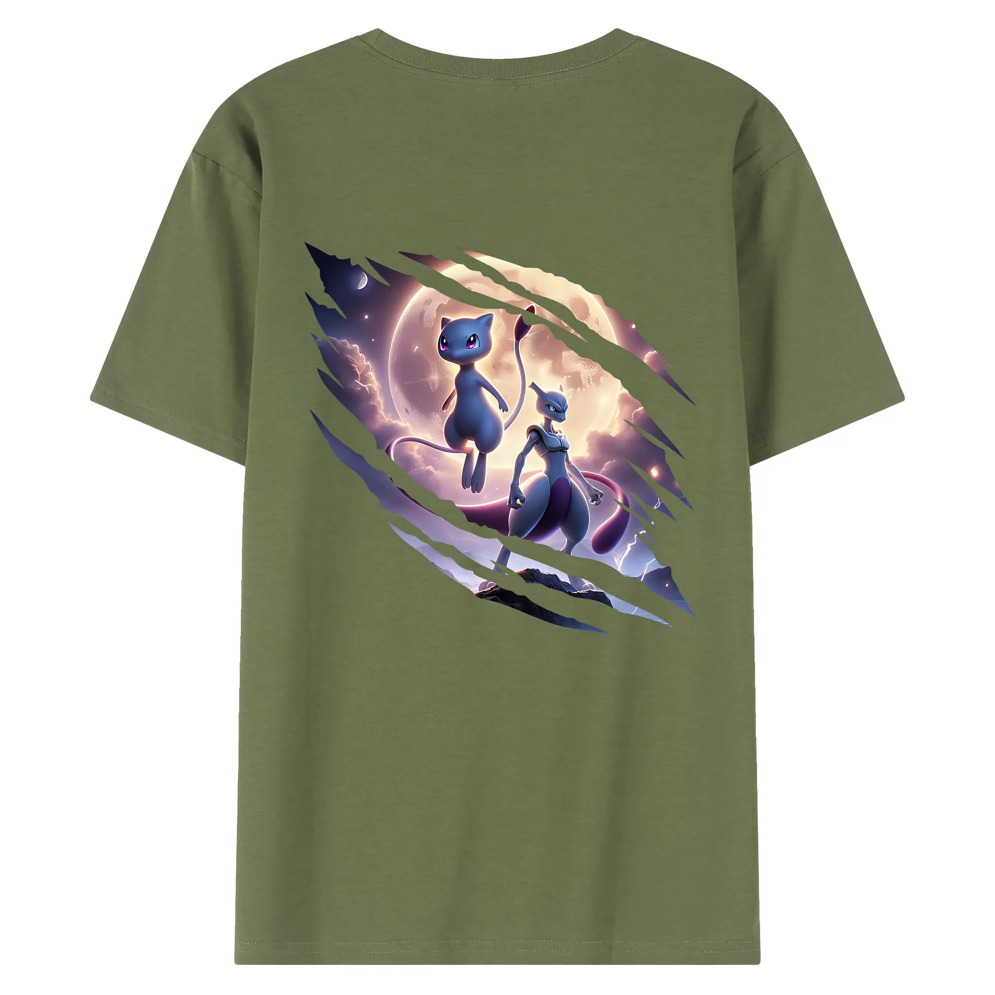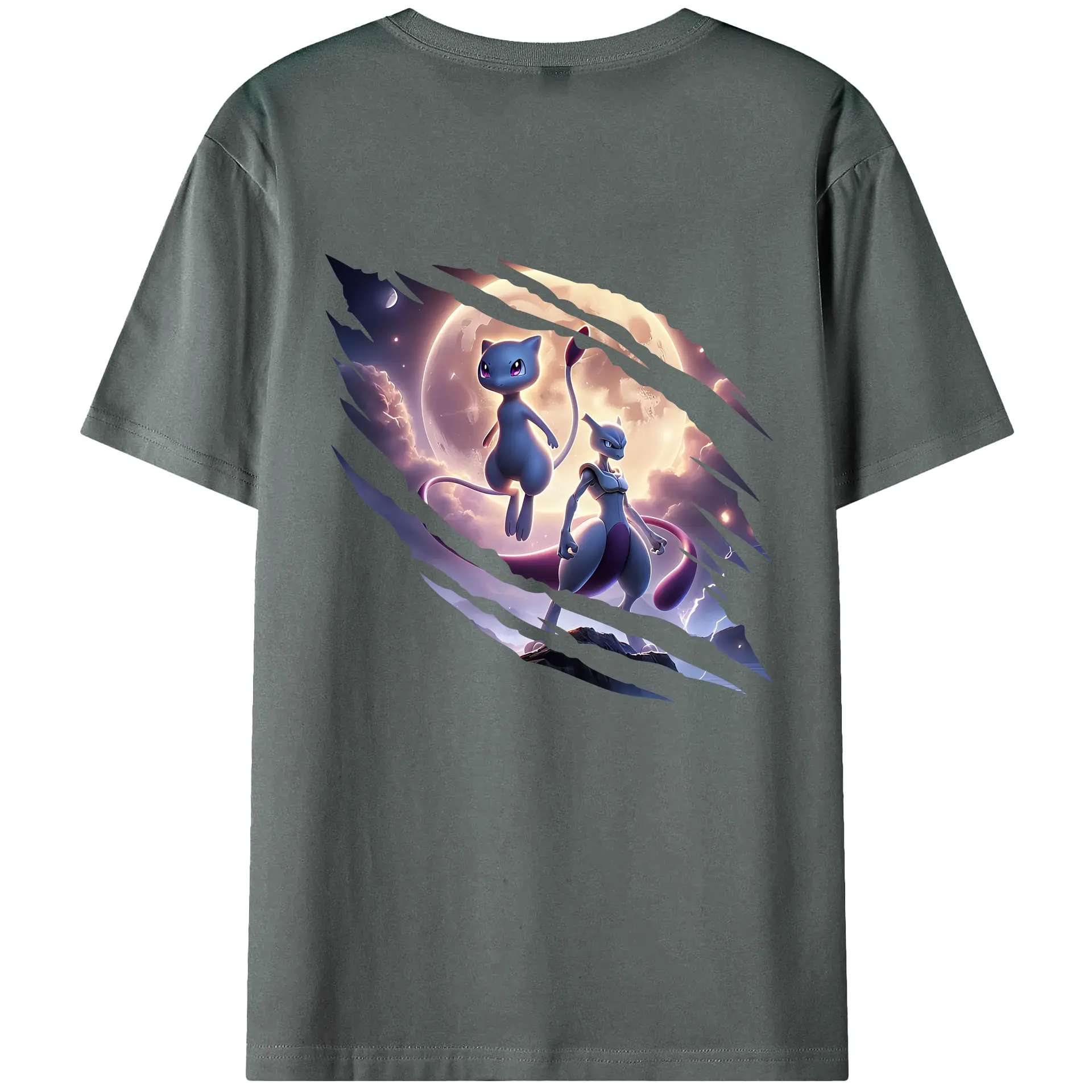 ポケモン グッズ,ミュウ - 綿100% ヴィンテージ風 半袖Tシャツ ・ 背面プリント ・ 柔らか肌触り ・ 通気性 快適 ・ スポーツ カジュアル 外出用