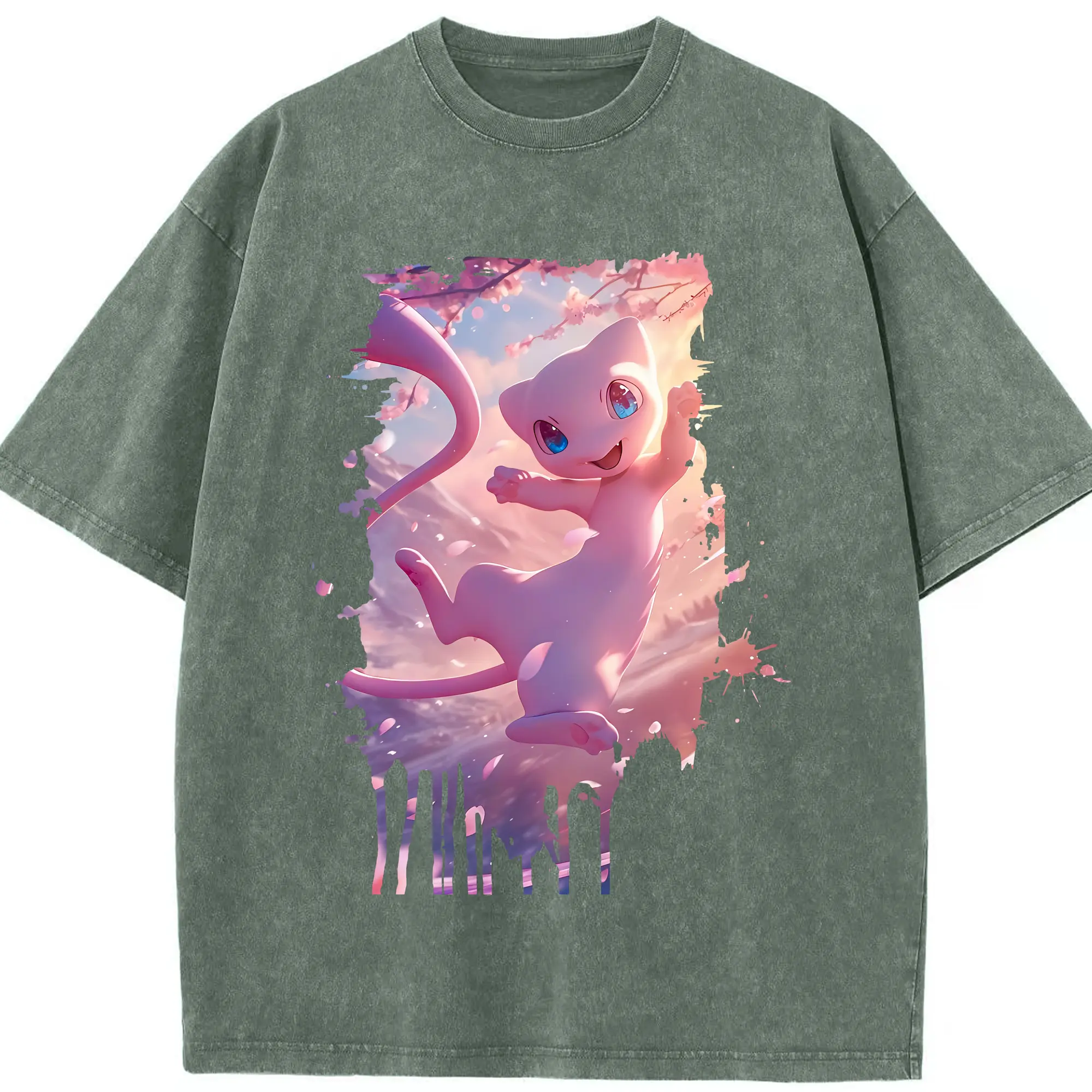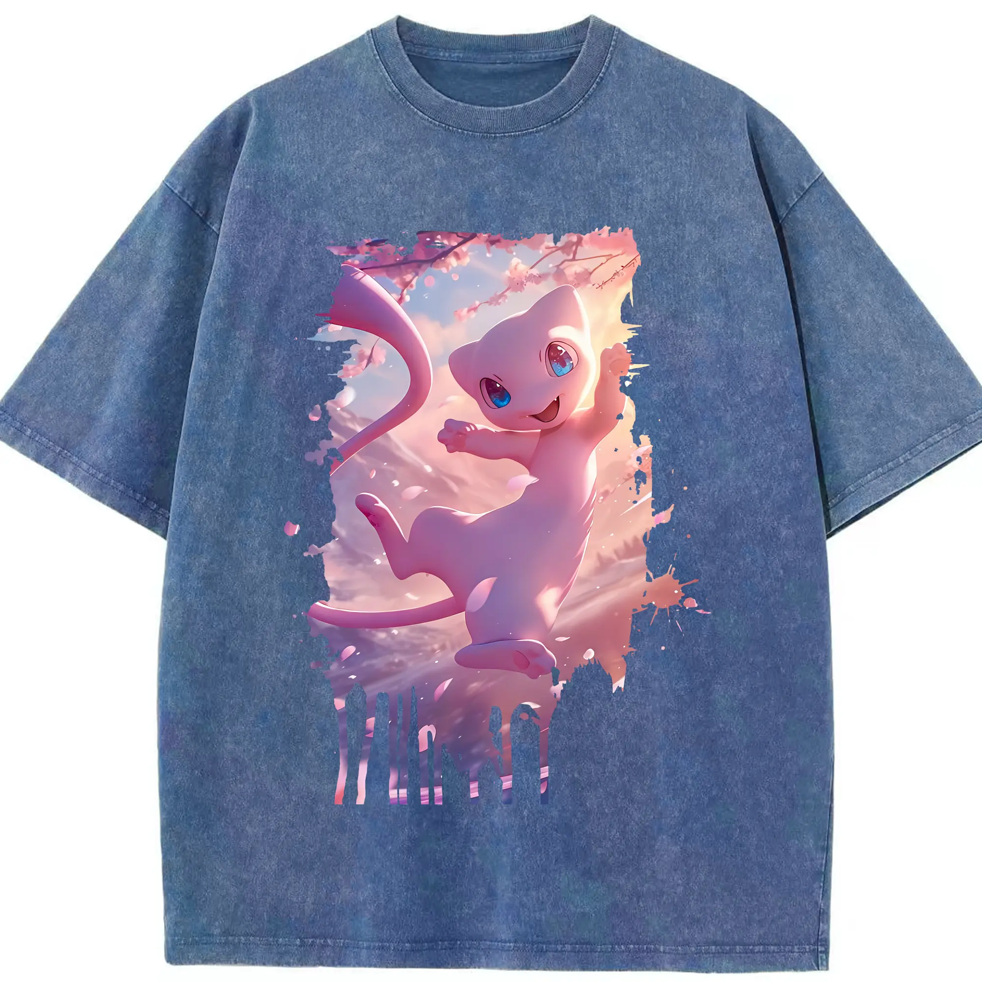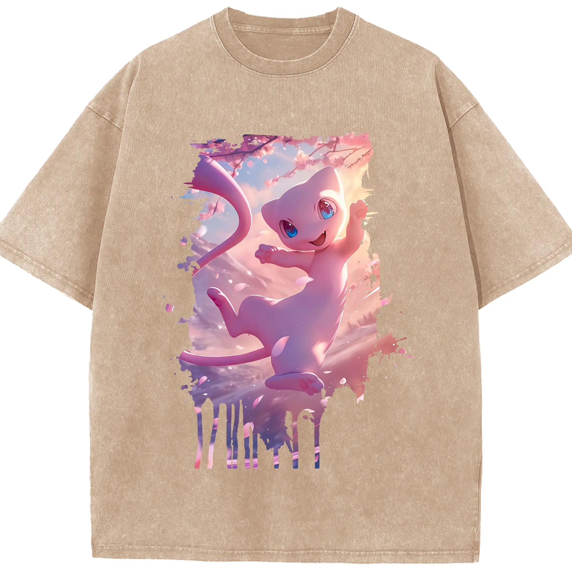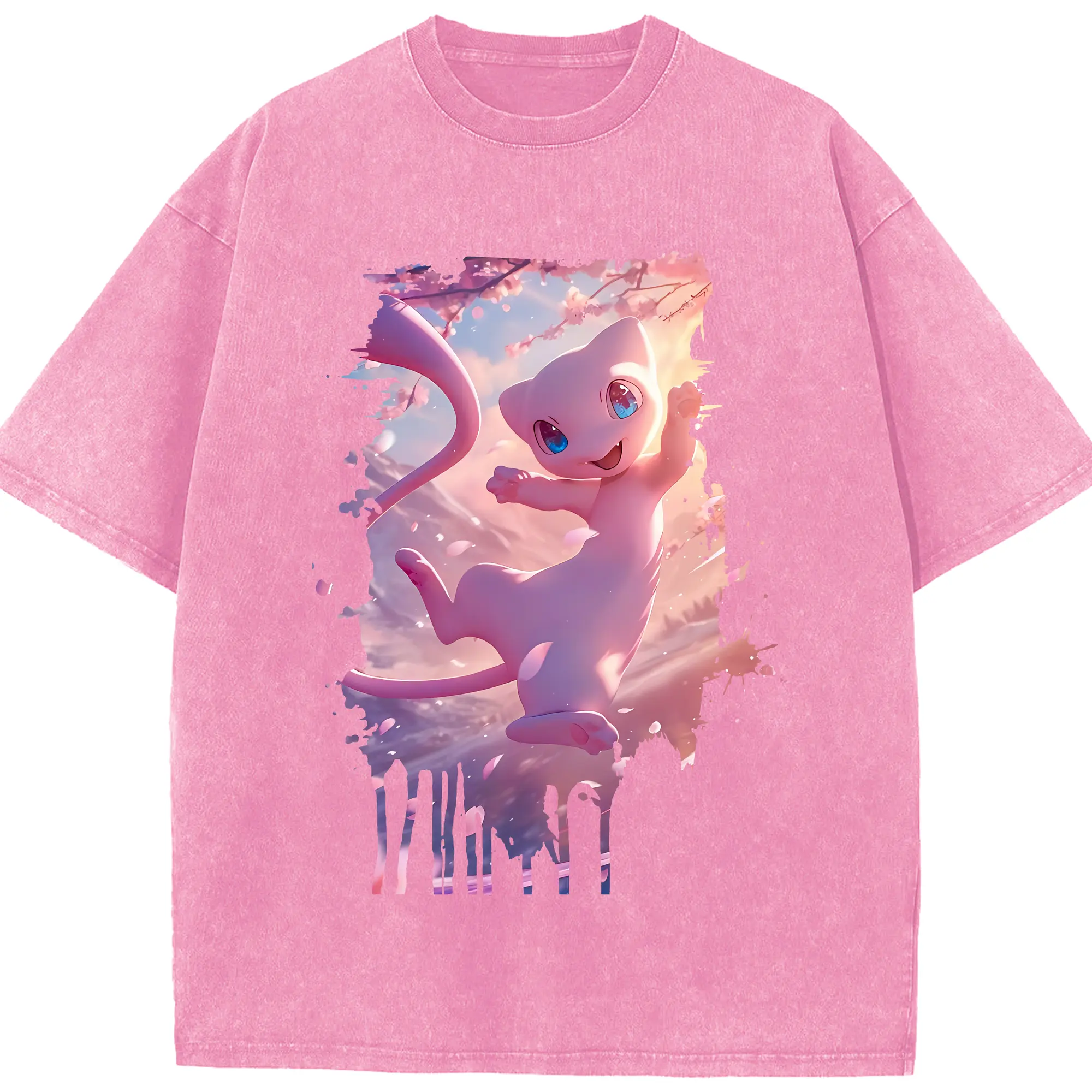 ポケモン グッズ,ミュウ - 綿100% ヴィンテージ風 半袖Tシャツ ・ 背面プリント ・ 柔らか肌触り ・ 通気性 快適 ・ スポーツ カジュアル 外出用