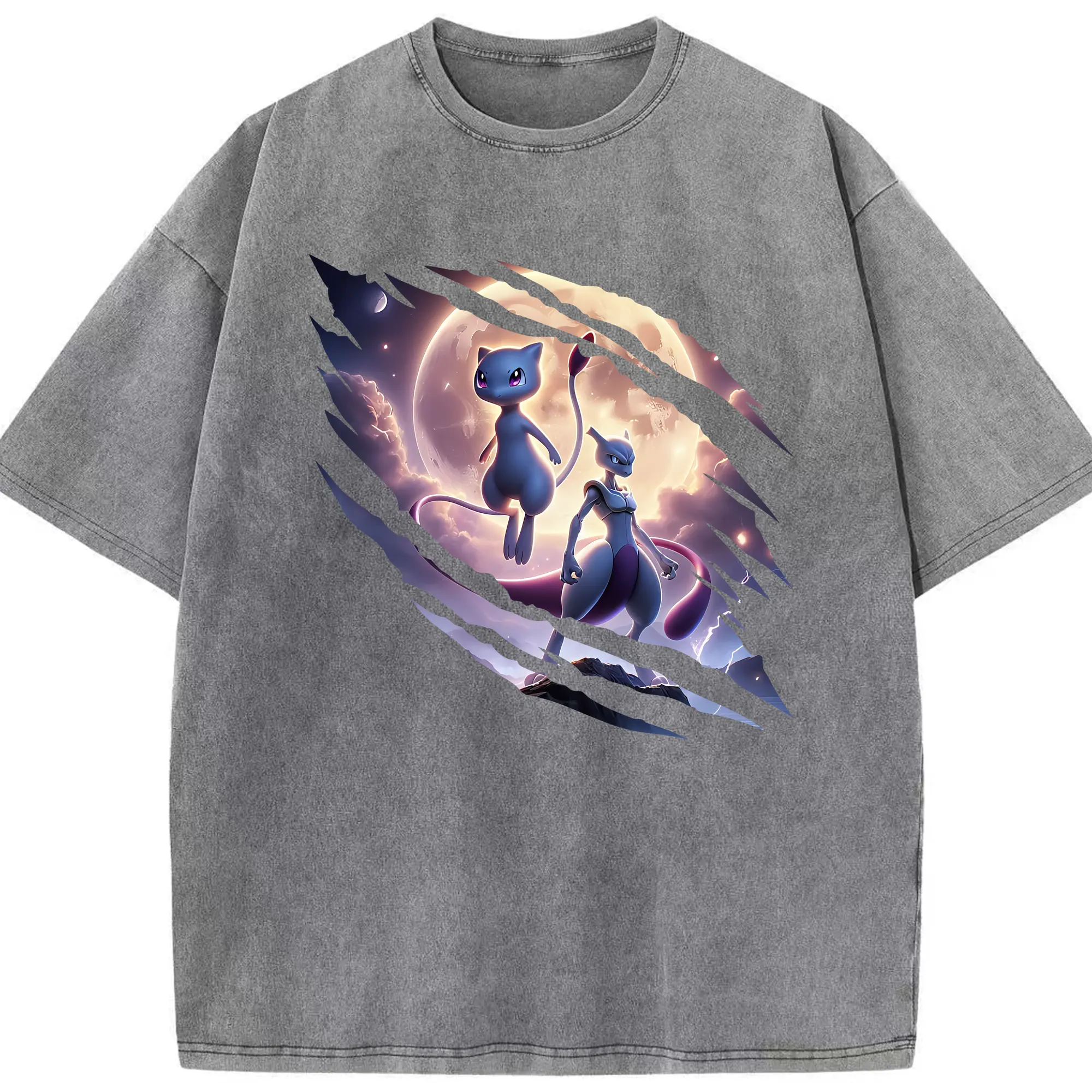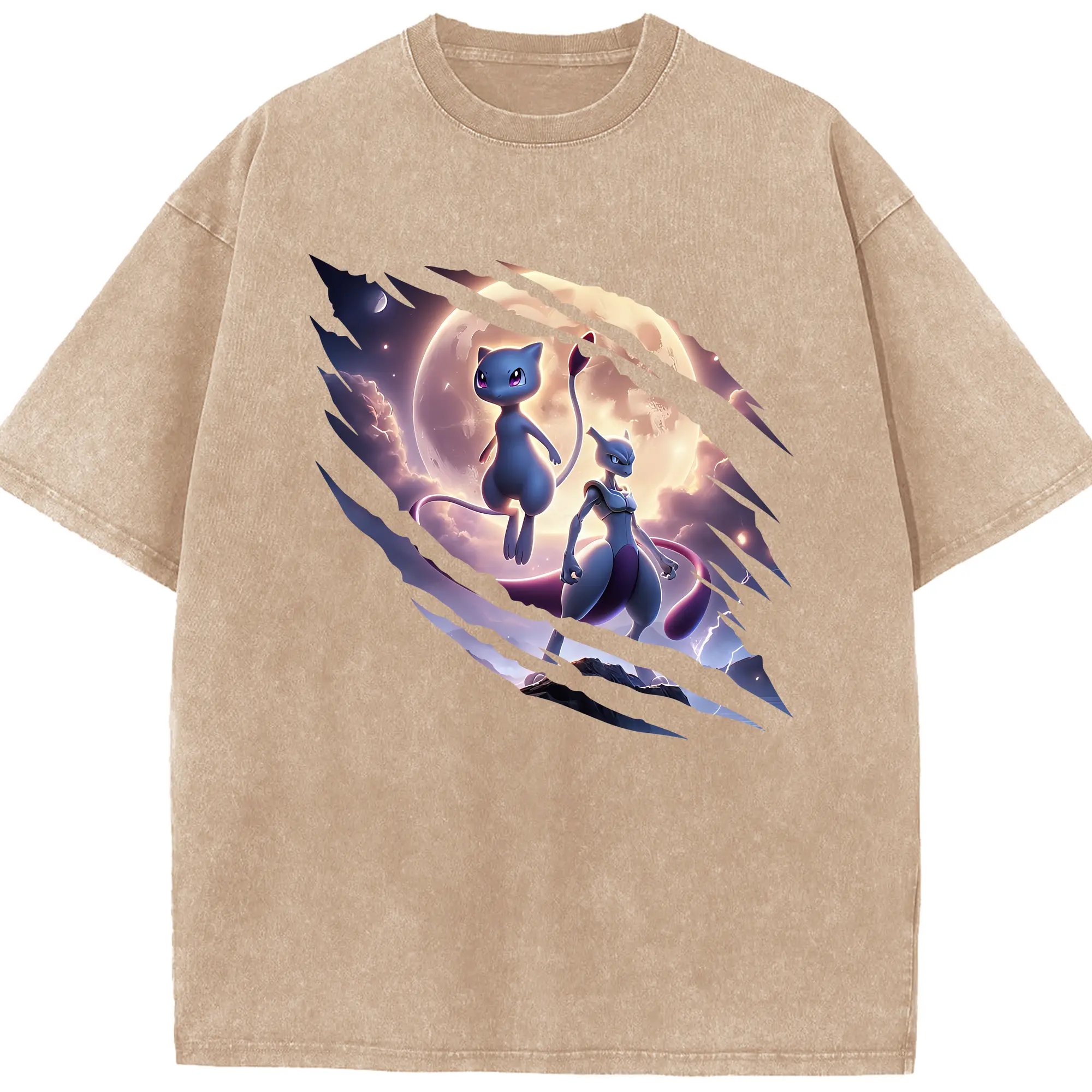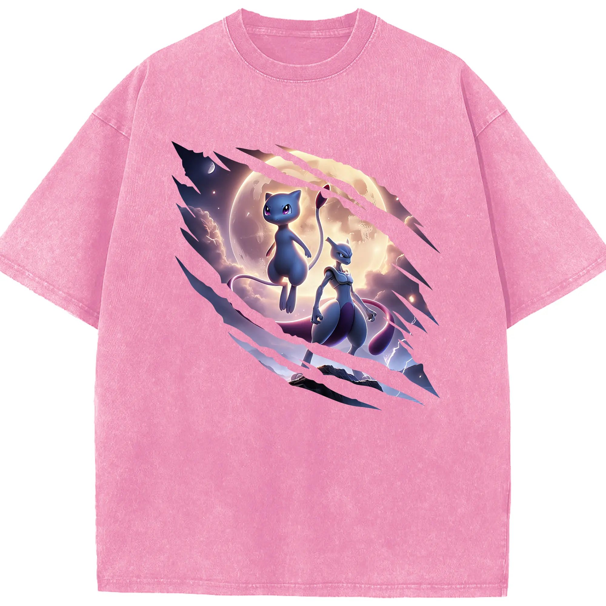 ポケモン グッズ,ミュウ - 綿100% ヴィンテージ風 半袖Tシャツ ・ 背面プリント ・ 柔らか肌触り ・ 通気性 快適 ・ スポーツ カジュアル 外出用