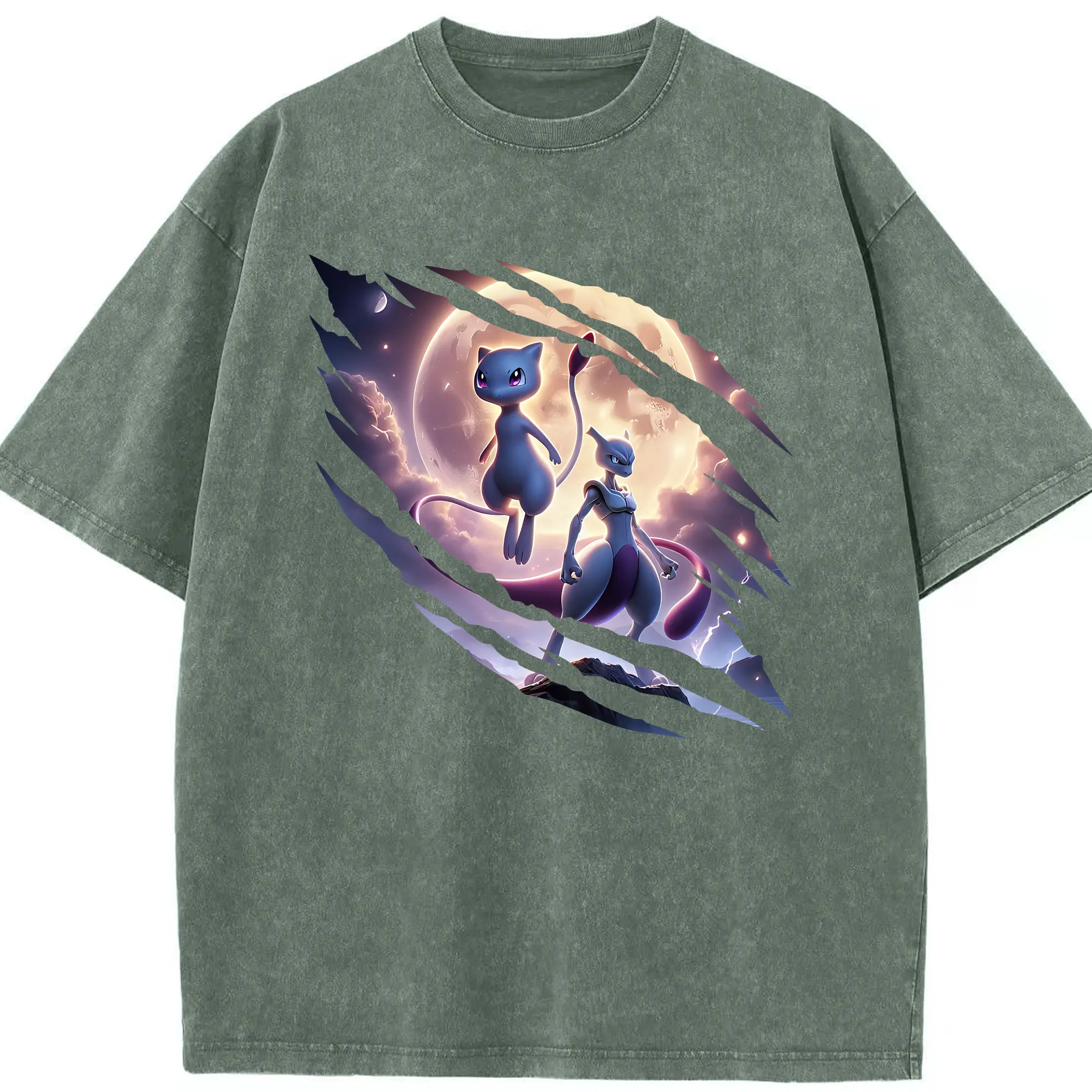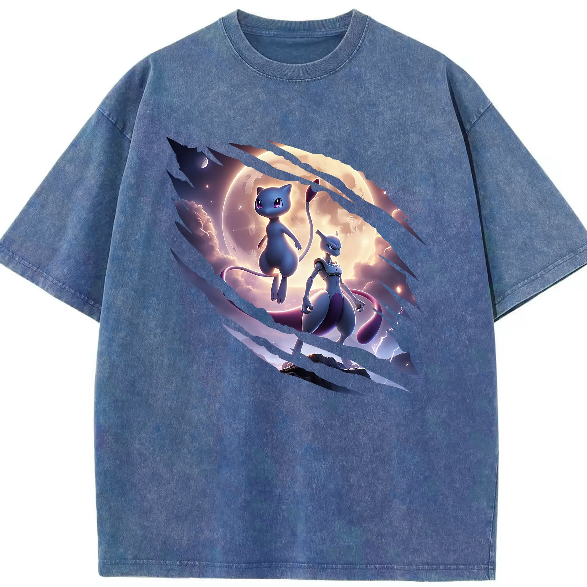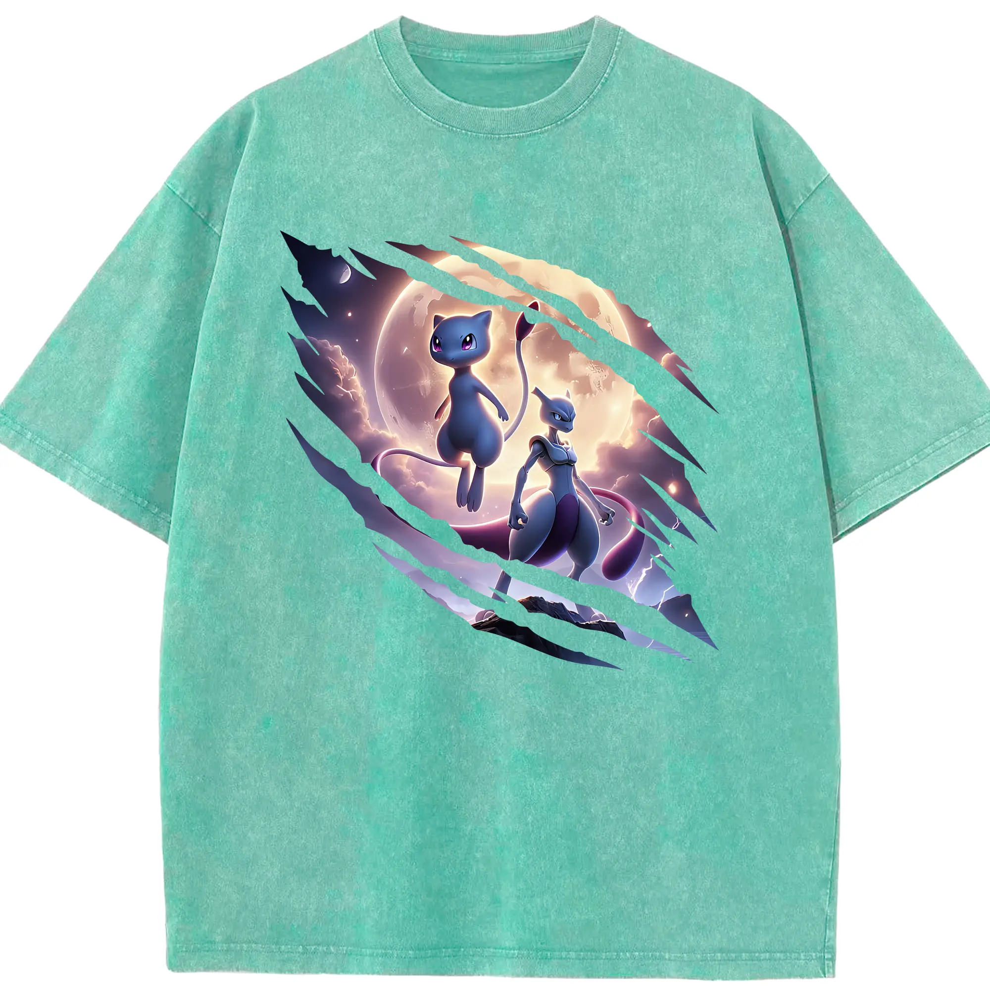 ポケモン グッズ,ミュウ - 綿100% ヴィンテージ風 半袖Tシャツ ・ 背面プリント ・ 柔らか肌触り ・ 通気性 快適 ・ スポーツ カジュアル 外出用