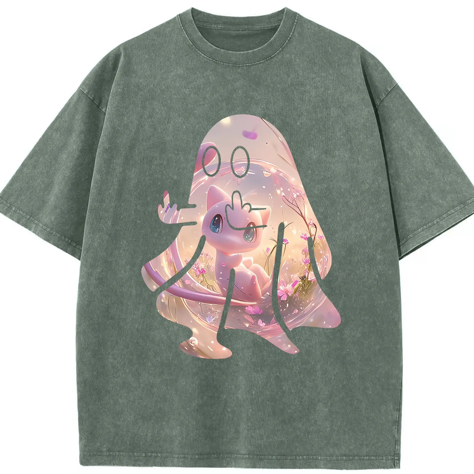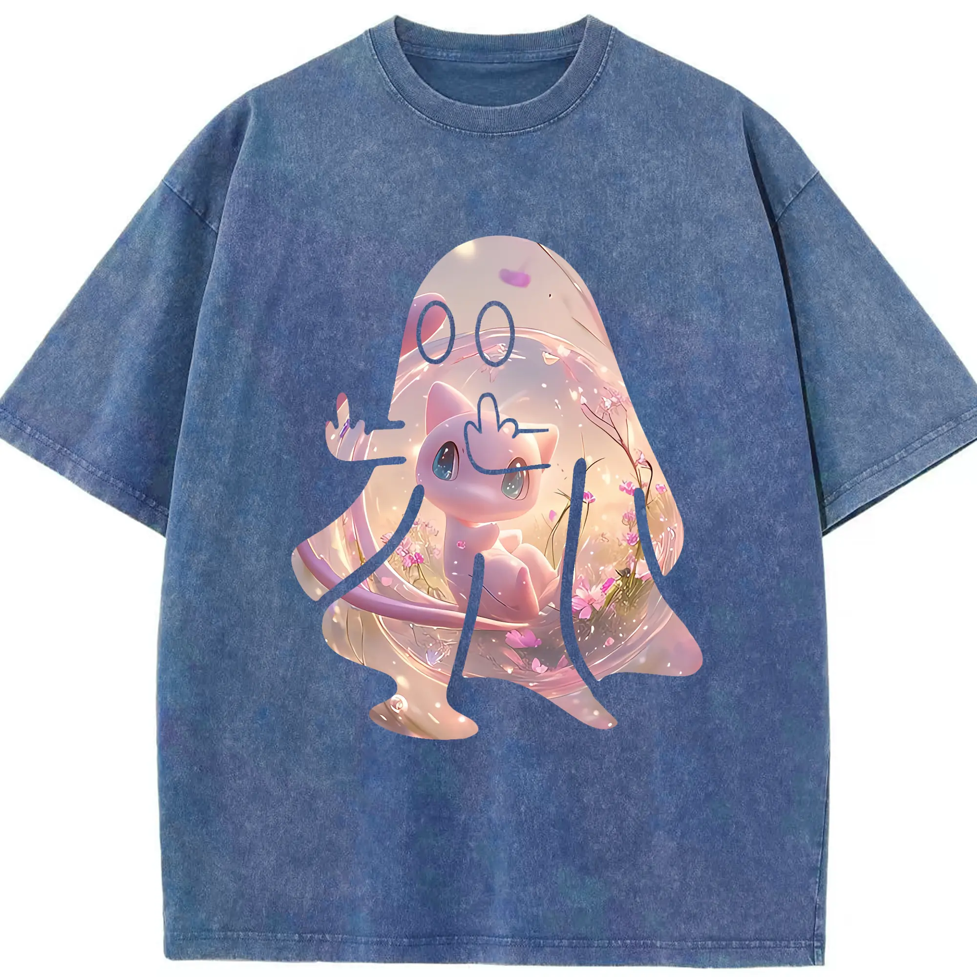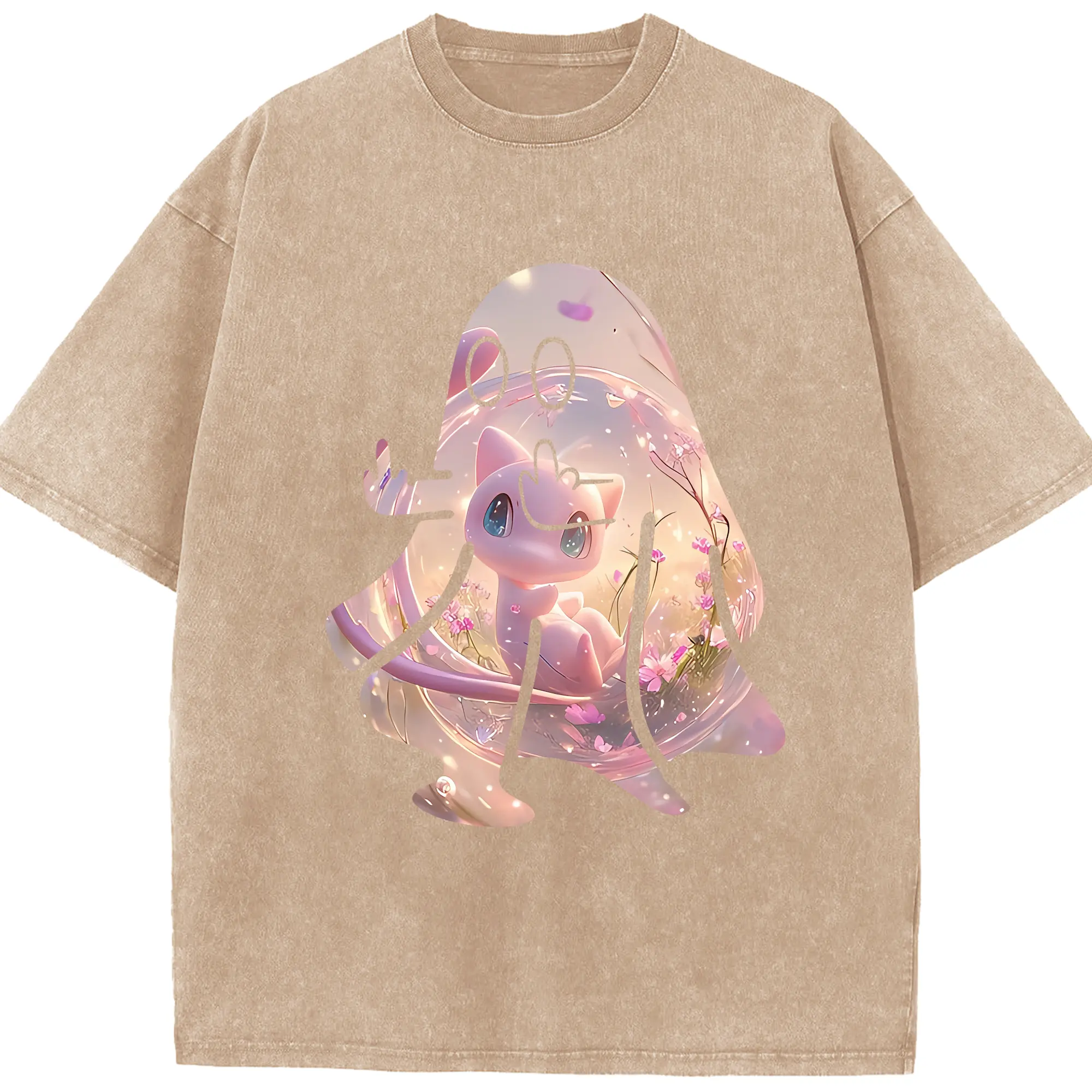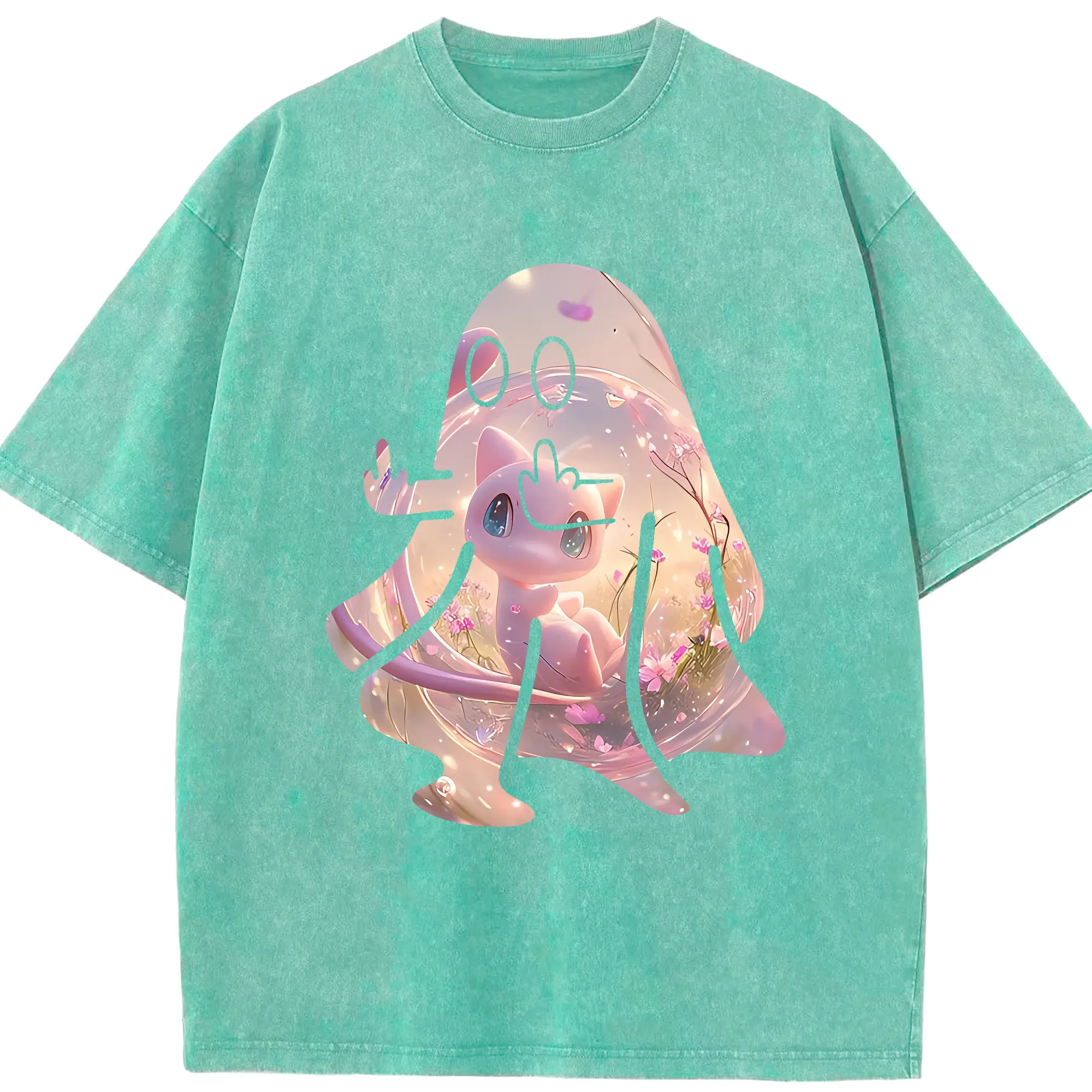 ポケモン グッズ,ミュウ - 綿100% ヴィンテージ風 半袖Tシャツ ・ 背面プリント ・ 柔らか肌触り ・ 通気性 快適 ・ スポーツ カジュアル 外出用
