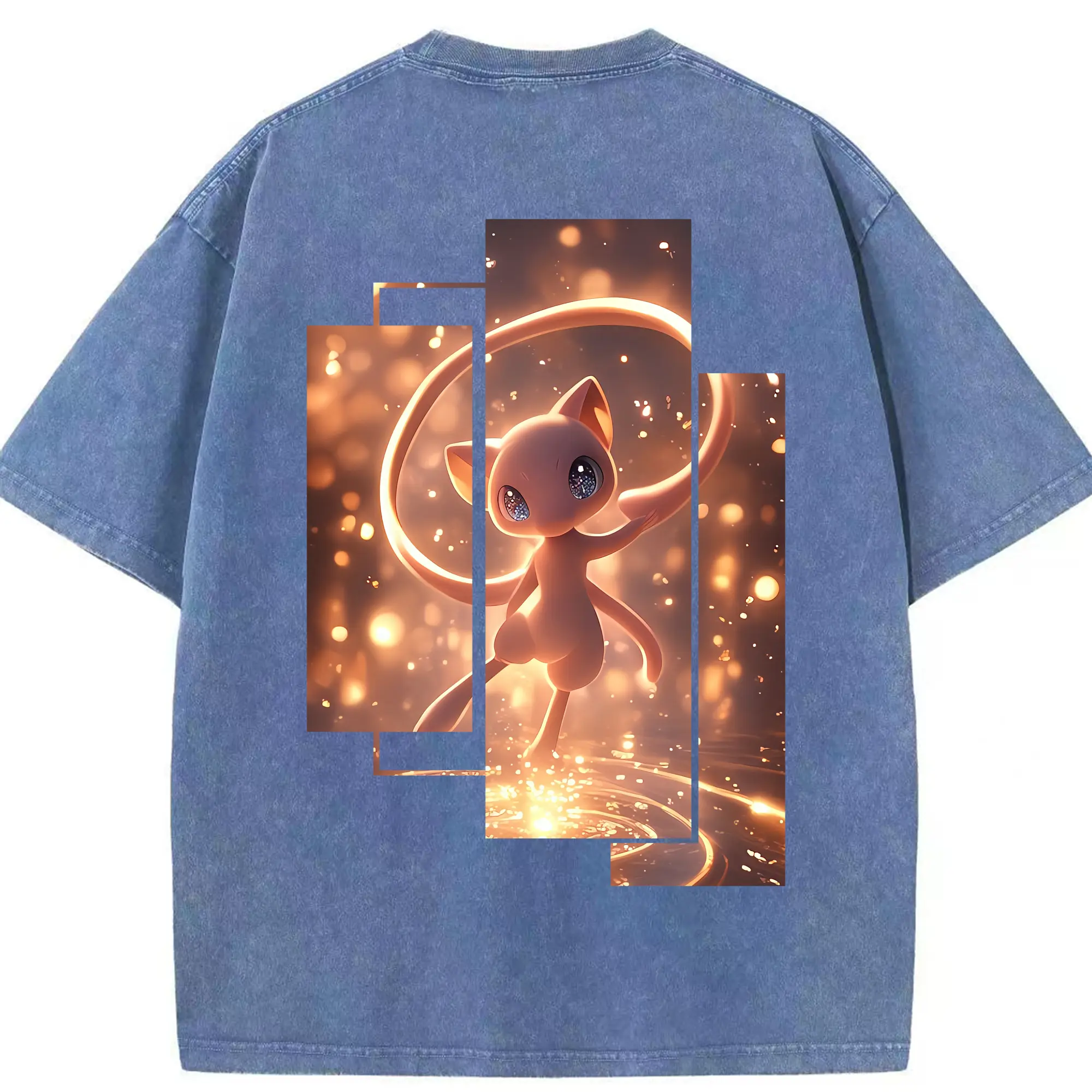 ポケモン グッズ,ミュウ - 綿100% ヴィンテージ風 半袖Tシャツ ・ フロントプリント ・ 柔らか肌触り ・ 通気性 快適 ・ スポーツ カジュアル 外出用