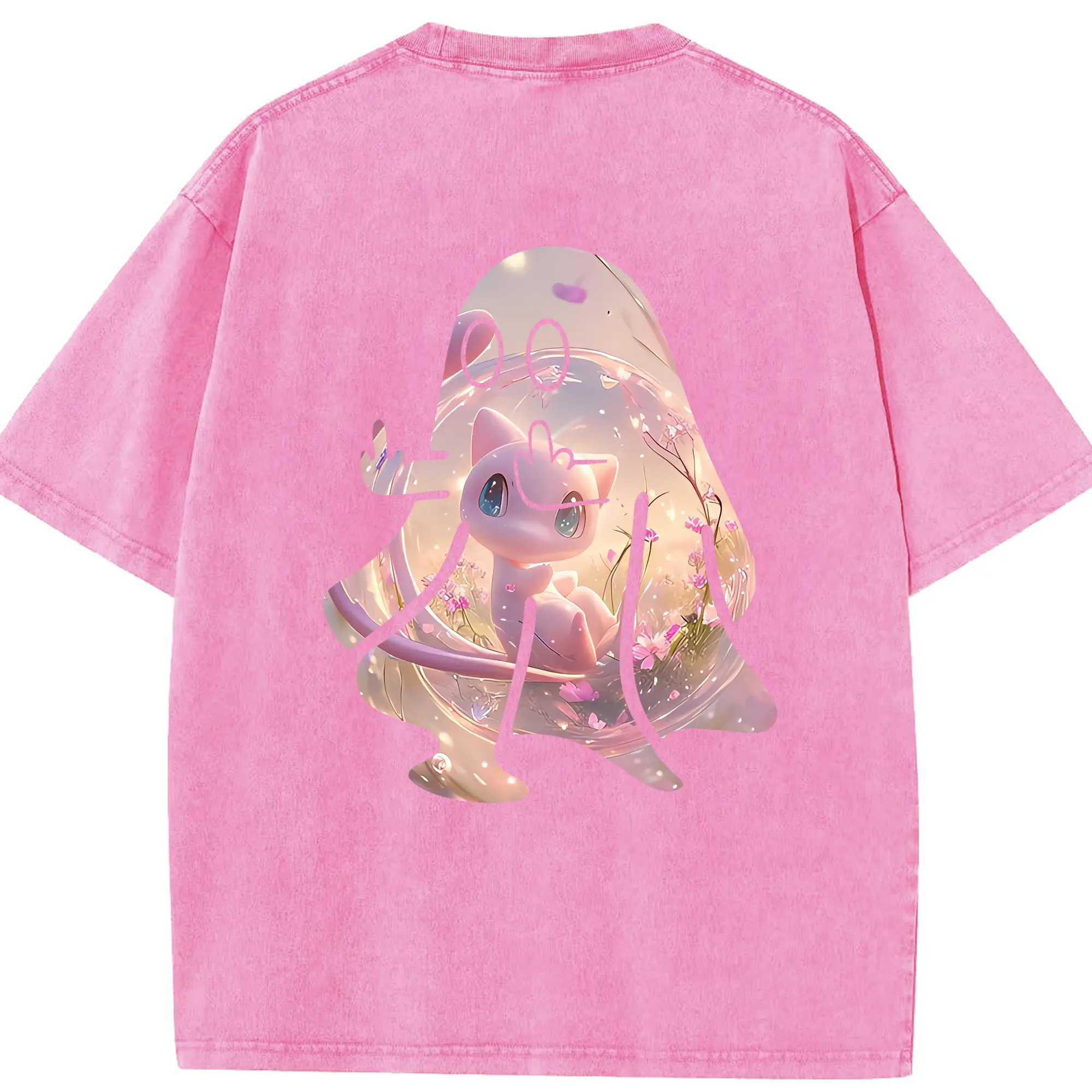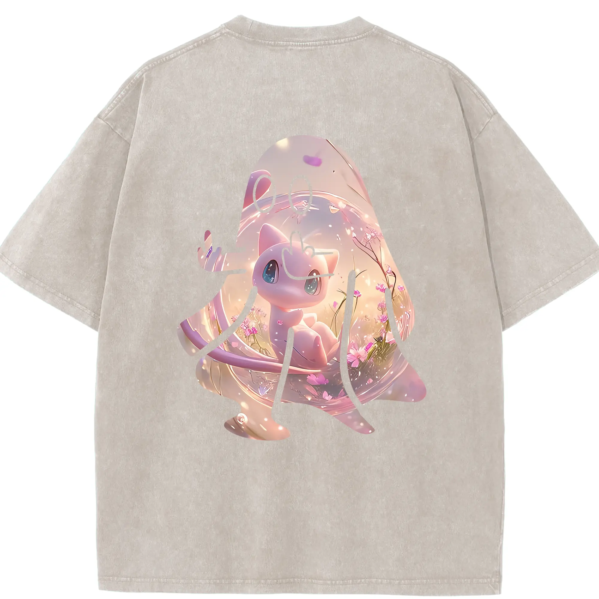 ポケモン グッズ,ミュウ - 綿100% ヴィンテージ風 半袖Tシャツ ・ フロントプリント ・ 柔らか肌触り ・ 通気性 快適 ・ スポーツ カジュアル 外出用