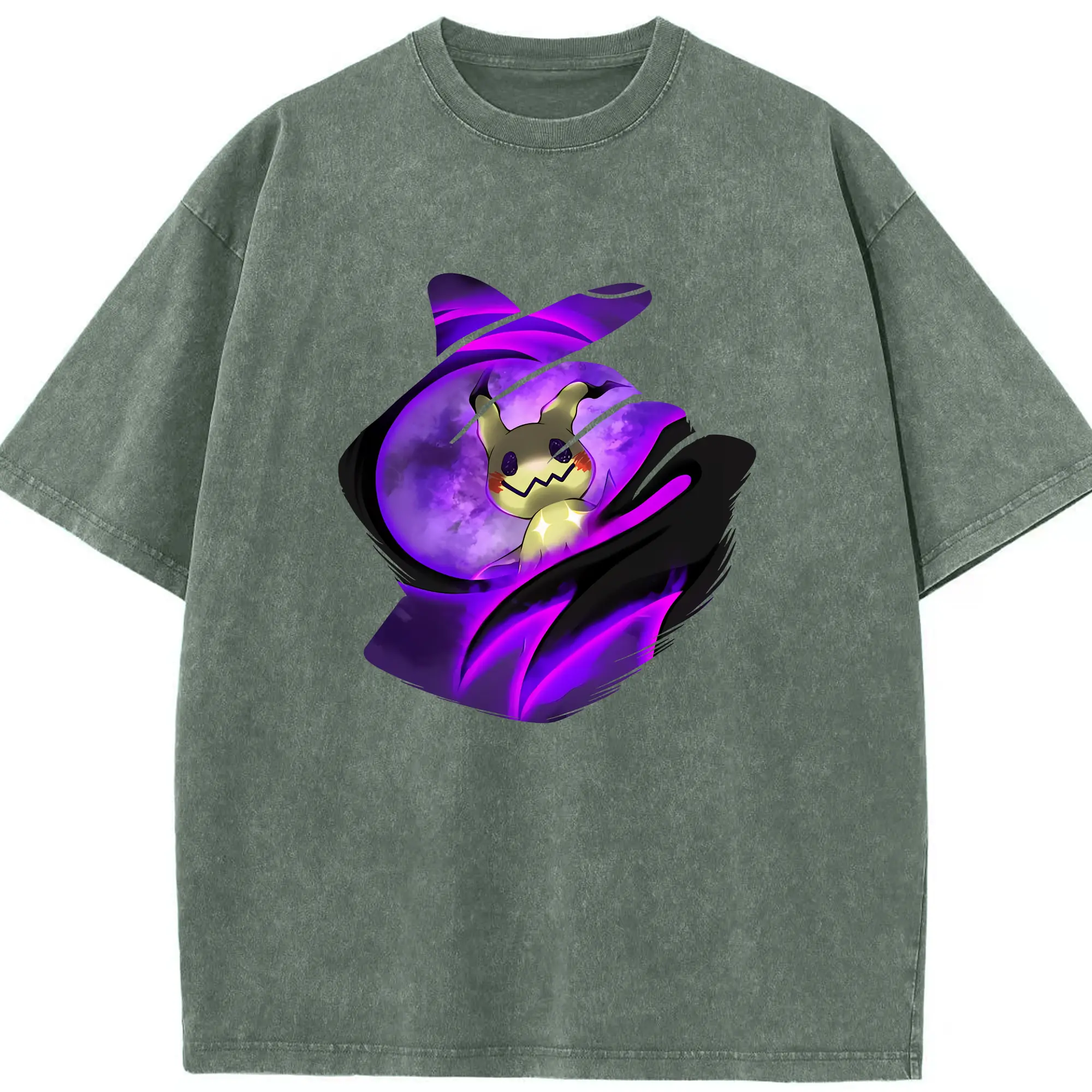 ポケモン グッズ,ミミッキュ - 綿100% ヴィンテージ風 半袖Tシャツ ・ 背面プリント ・ 柔らか肌触り ・ 通気性 快適 ・ スポーツ カジュアル 外出用