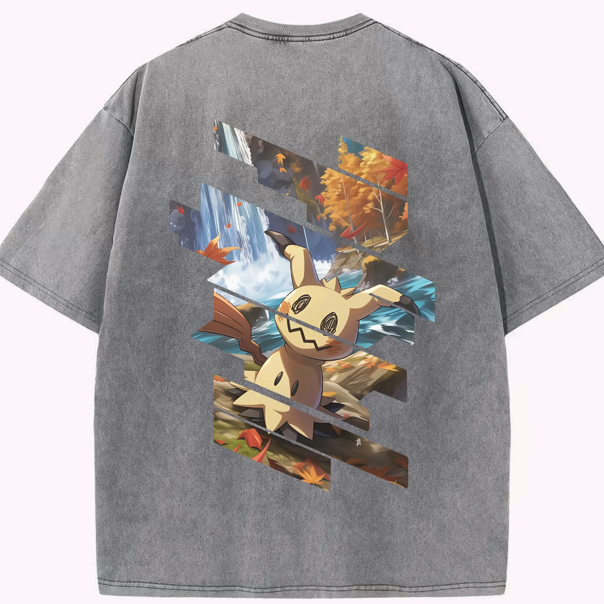 ポケモン グッズ,ミミッキュ - 綿100% ヴィンテージ風 半袖Tシャツ ・ フロントプリント ・ 柔らか肌触り ・ 通気性 快適 ・ スポーツ カジュアル 外出用