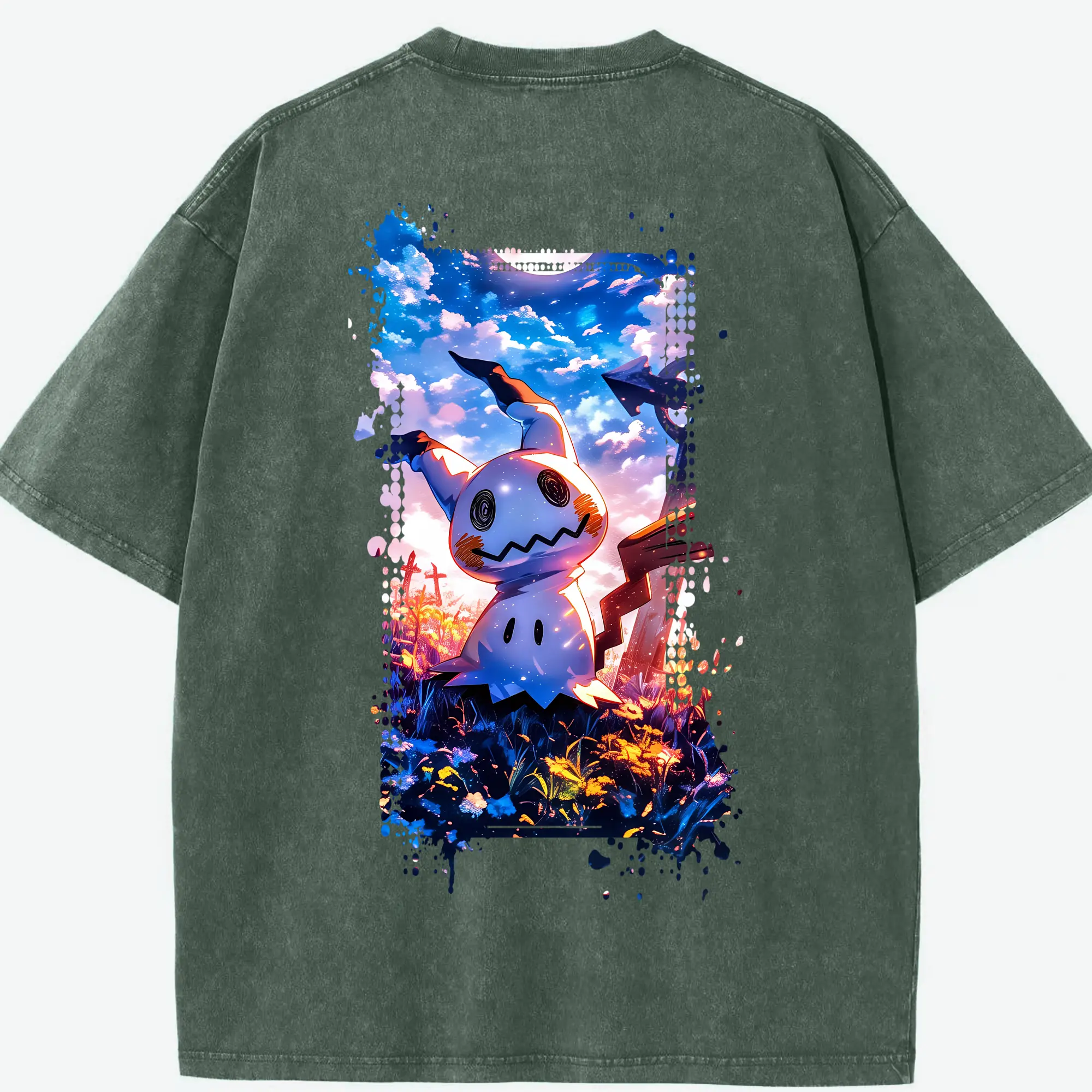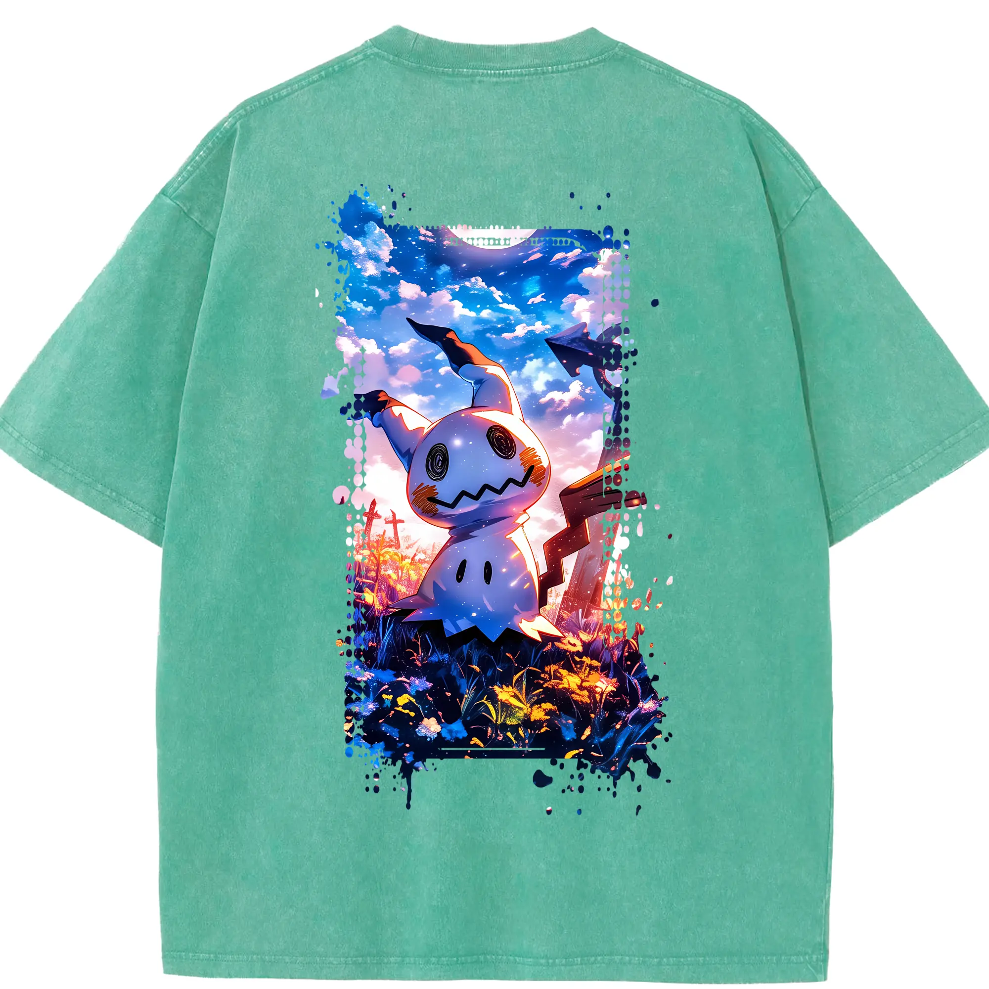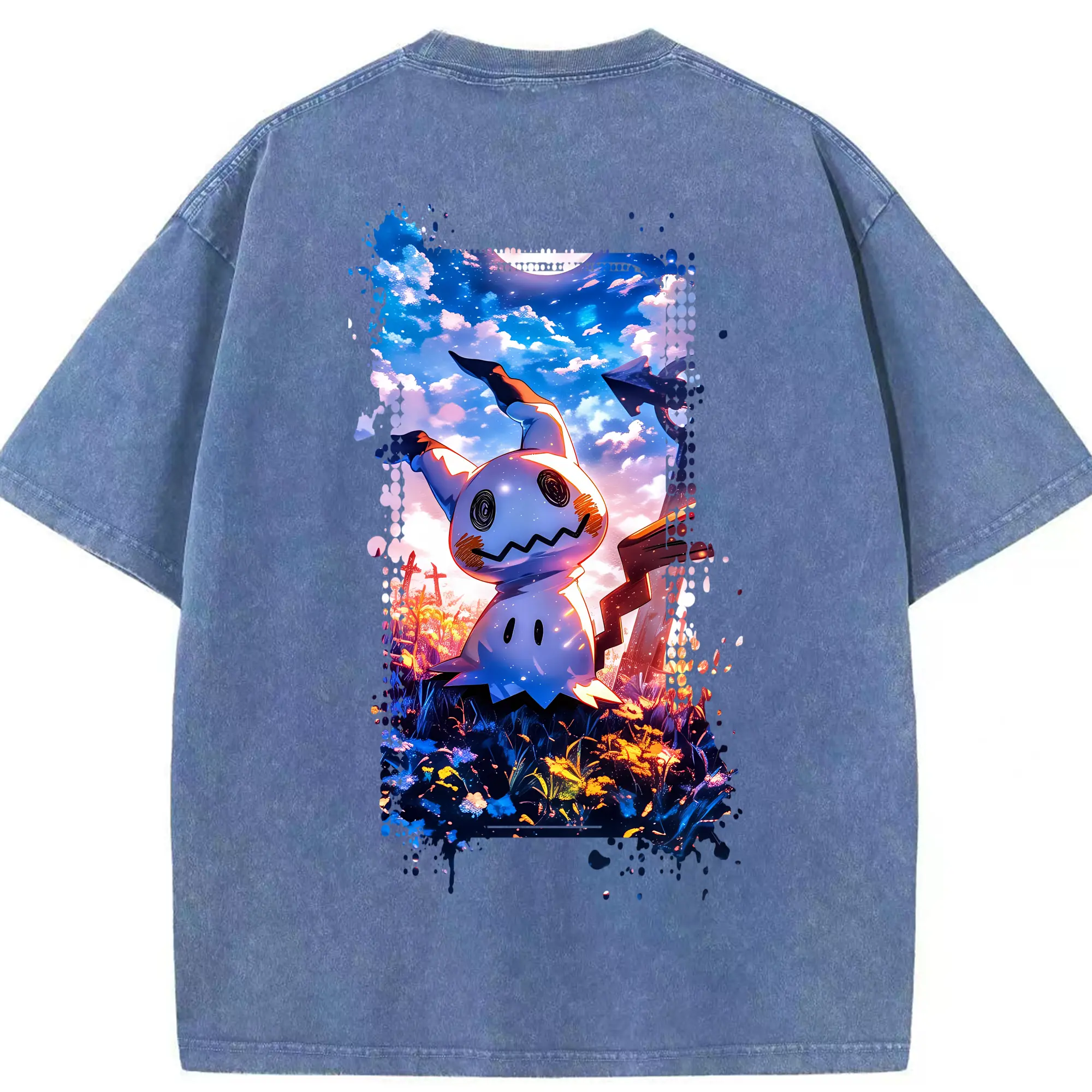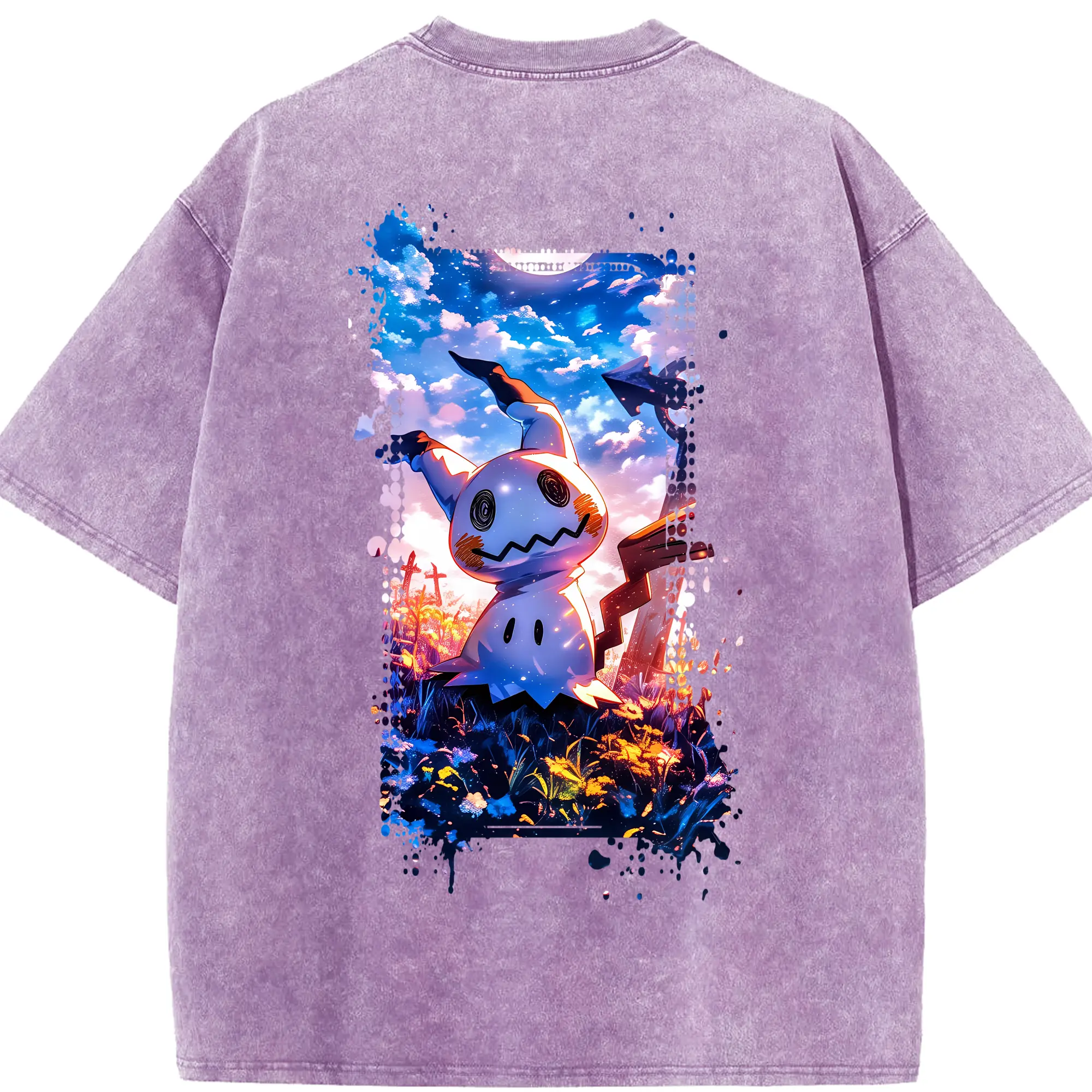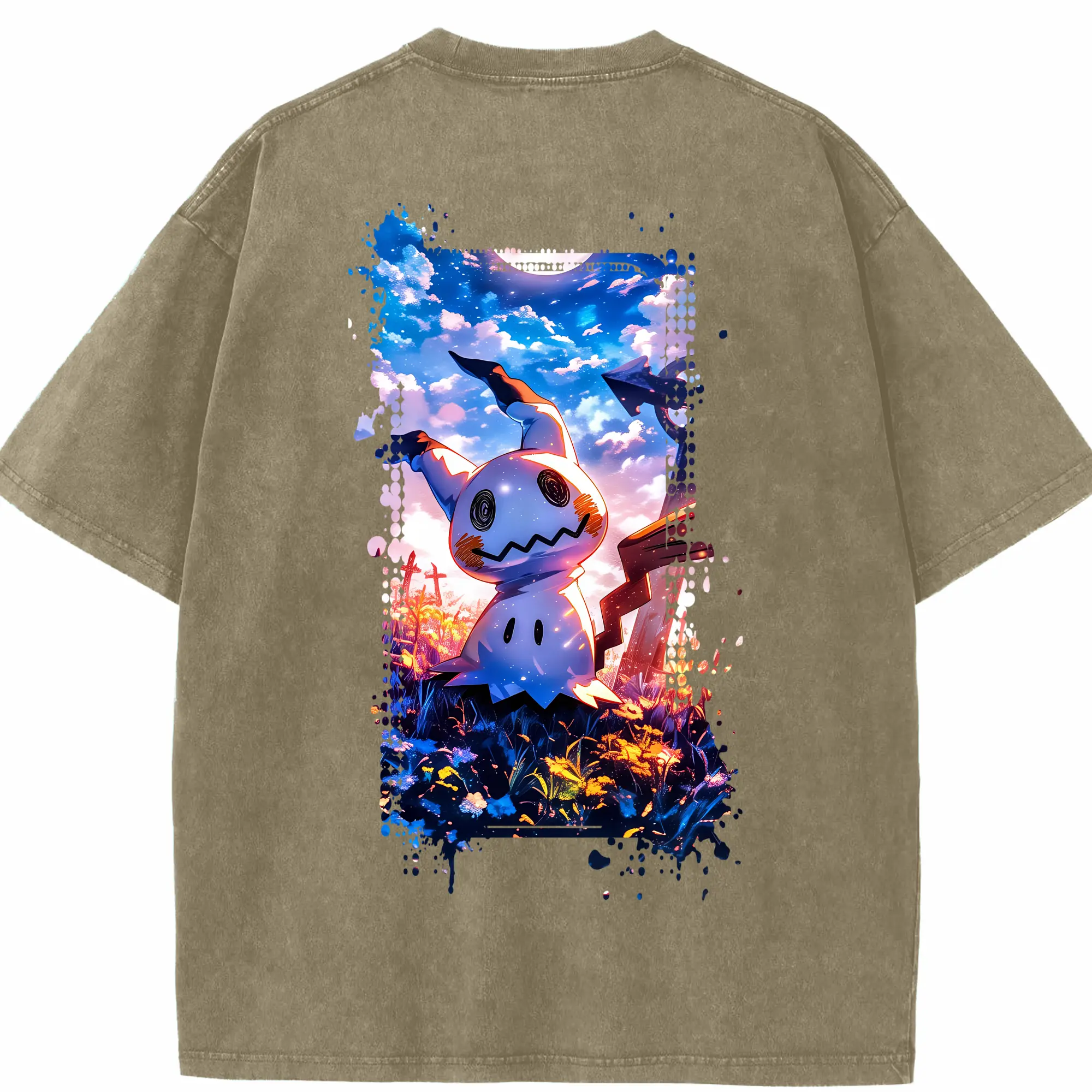 ポケモン グッズ,ミミッキュ - 綿100% ヴィンテージ風 半袖Tシャツ ・ フロントプリント ・ 柔らか肌触り ・ 通気性 快適 ・ スポーツ カジュアル 外出用