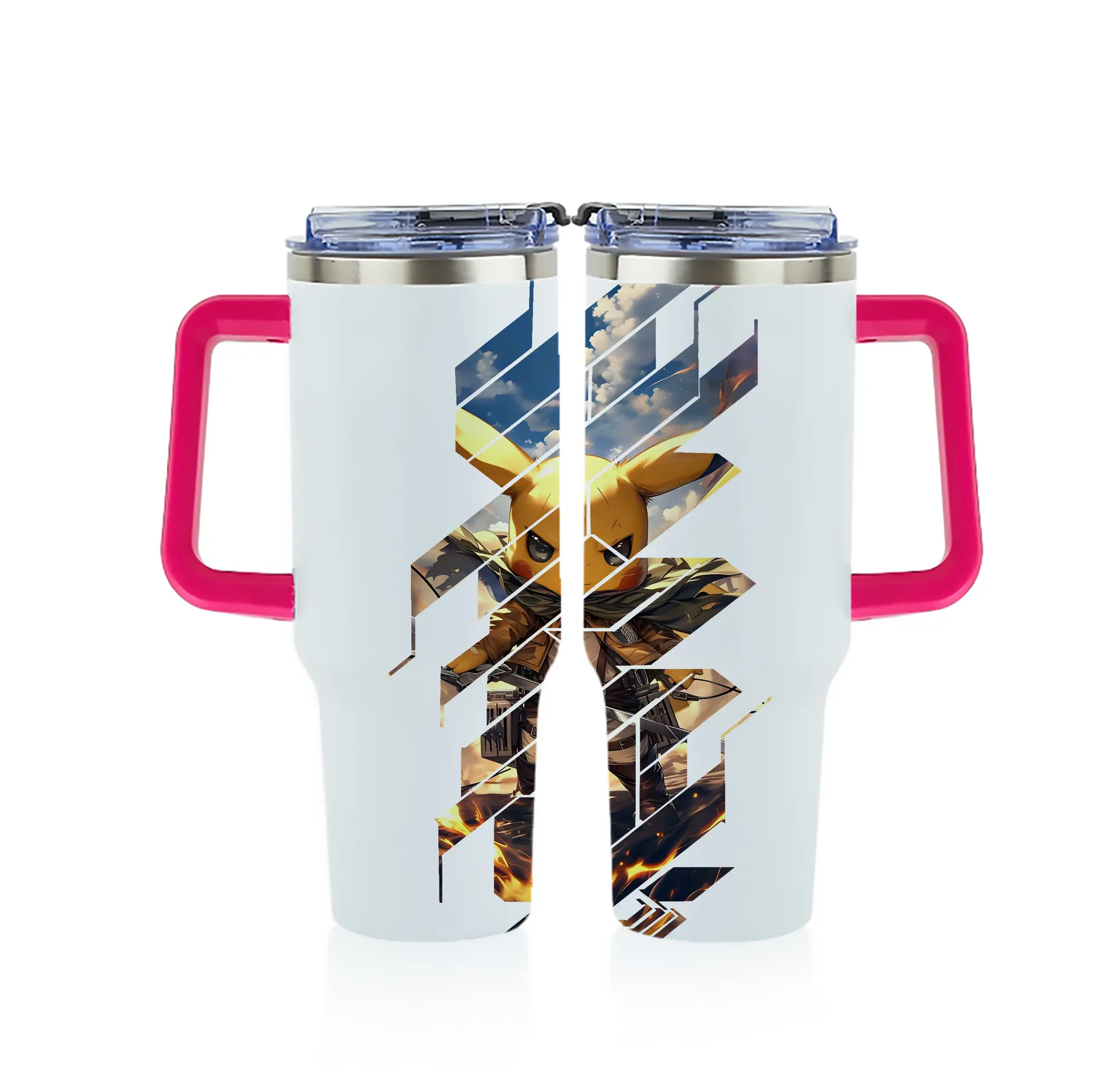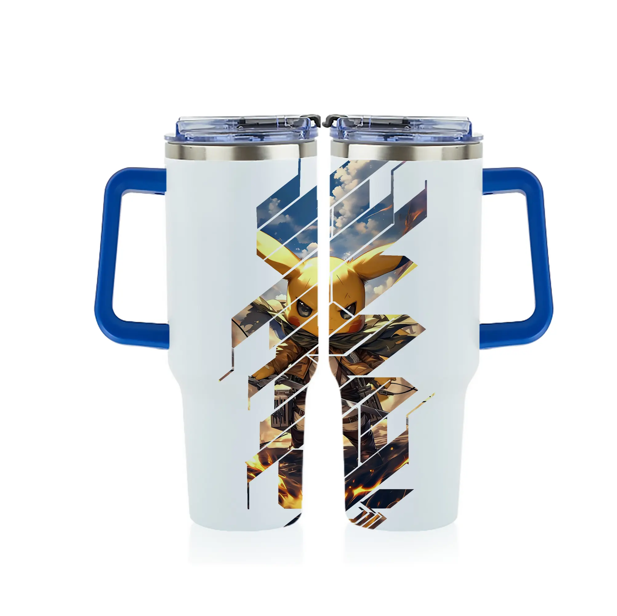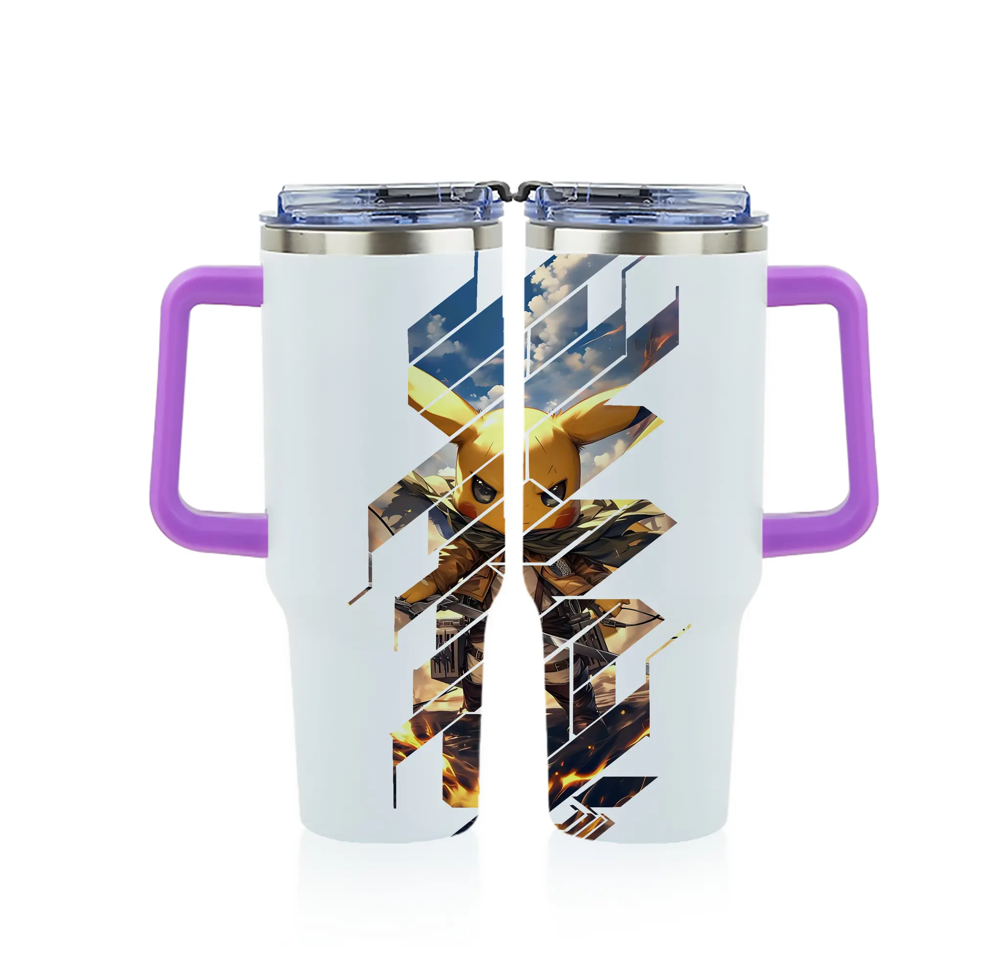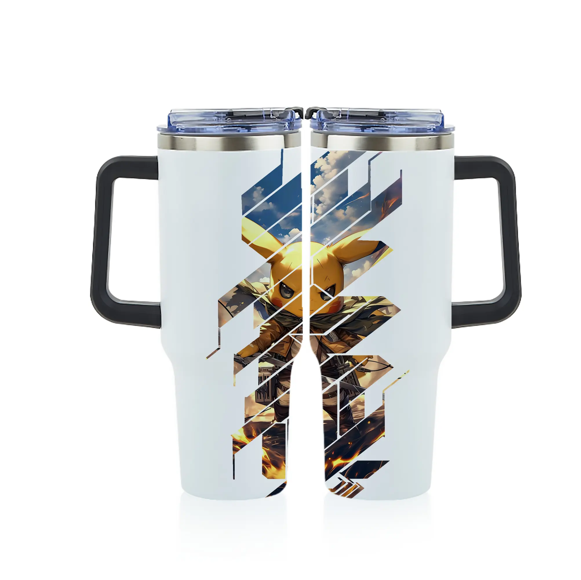 ポケモン グッズ,ピカチュウ - 1200mL フルプリント車用タンブラー ・ 304ステンレス 内側 ・ 201ステンレス 外側 ・ 保温 保冷 ・ 通勤 ドライブ アウトドア用