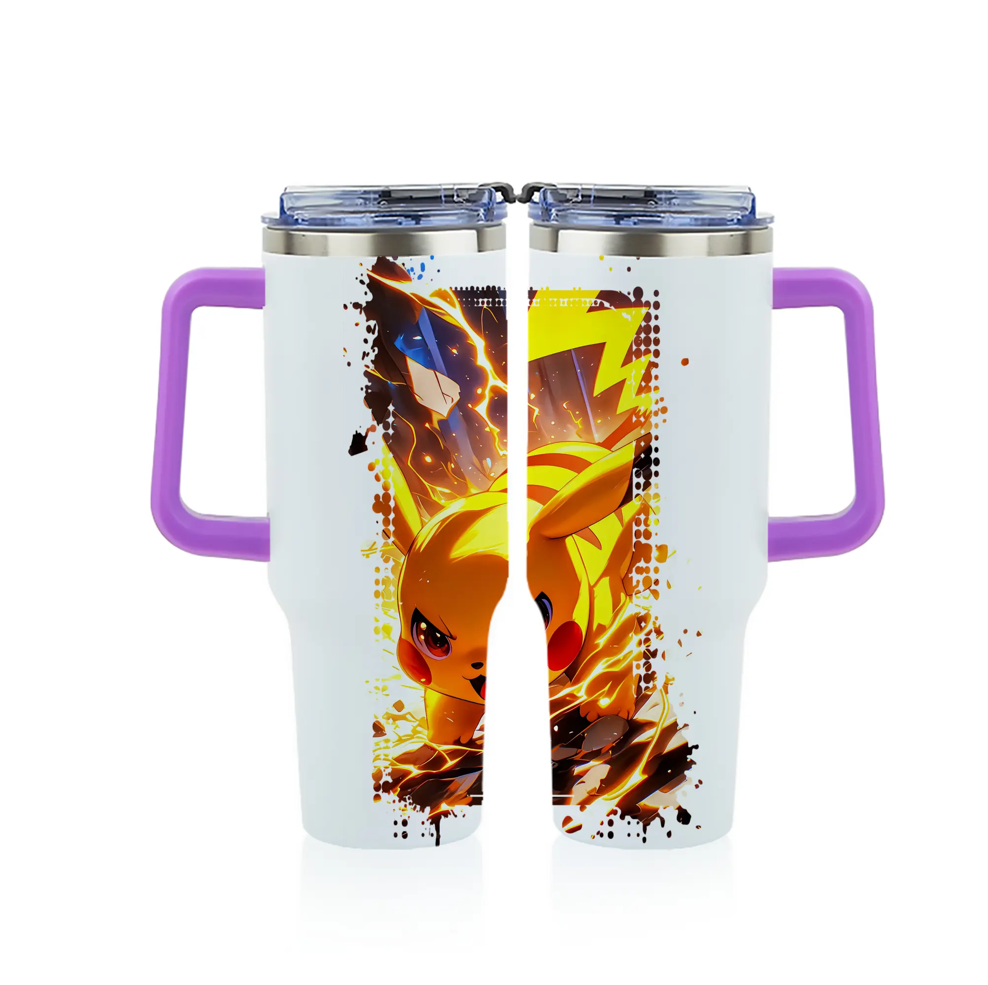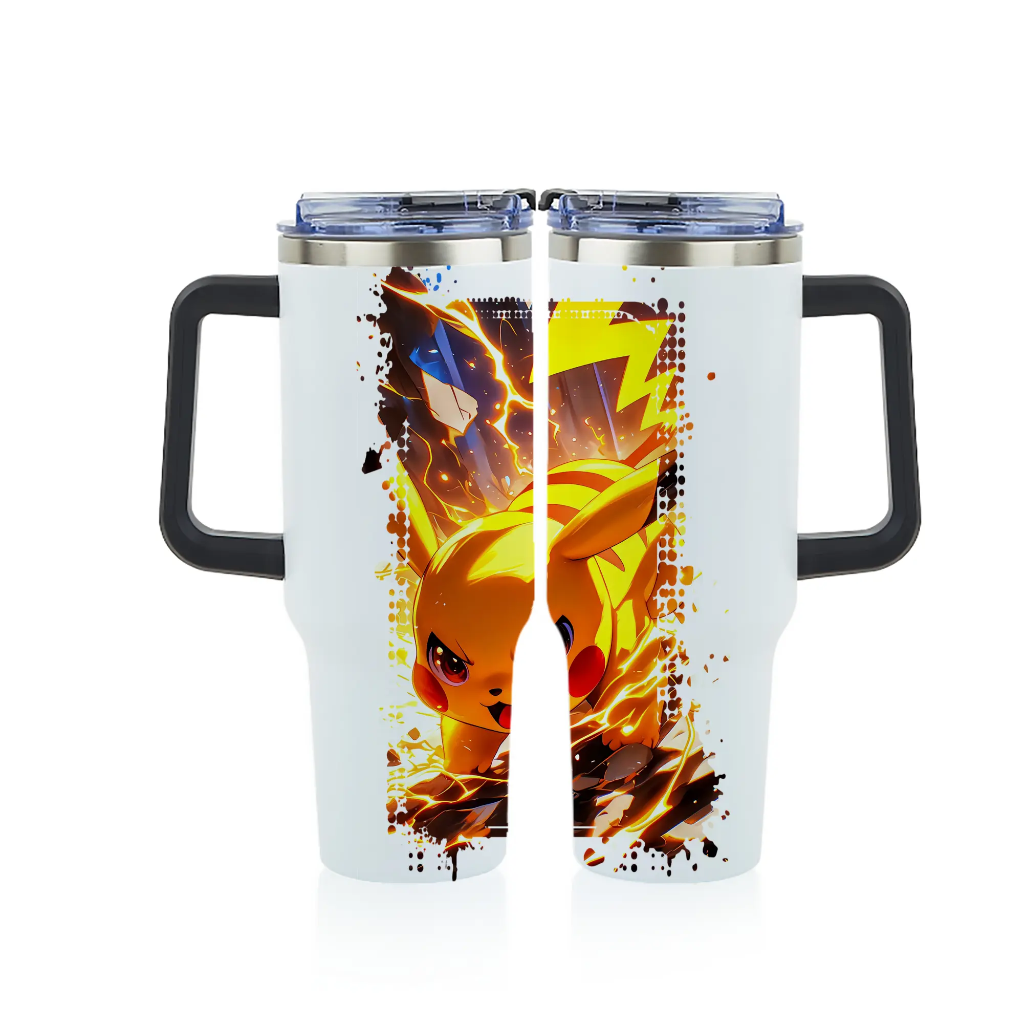 ポケモン グッズ,ピカチュウ - 1200mL フルプリント車用タンブラー ・ 304ステンレス 内側 ・ 201ステンレス 外側 ・ 保温 保冷 ・ 通勤 ドライブ アウトドア用