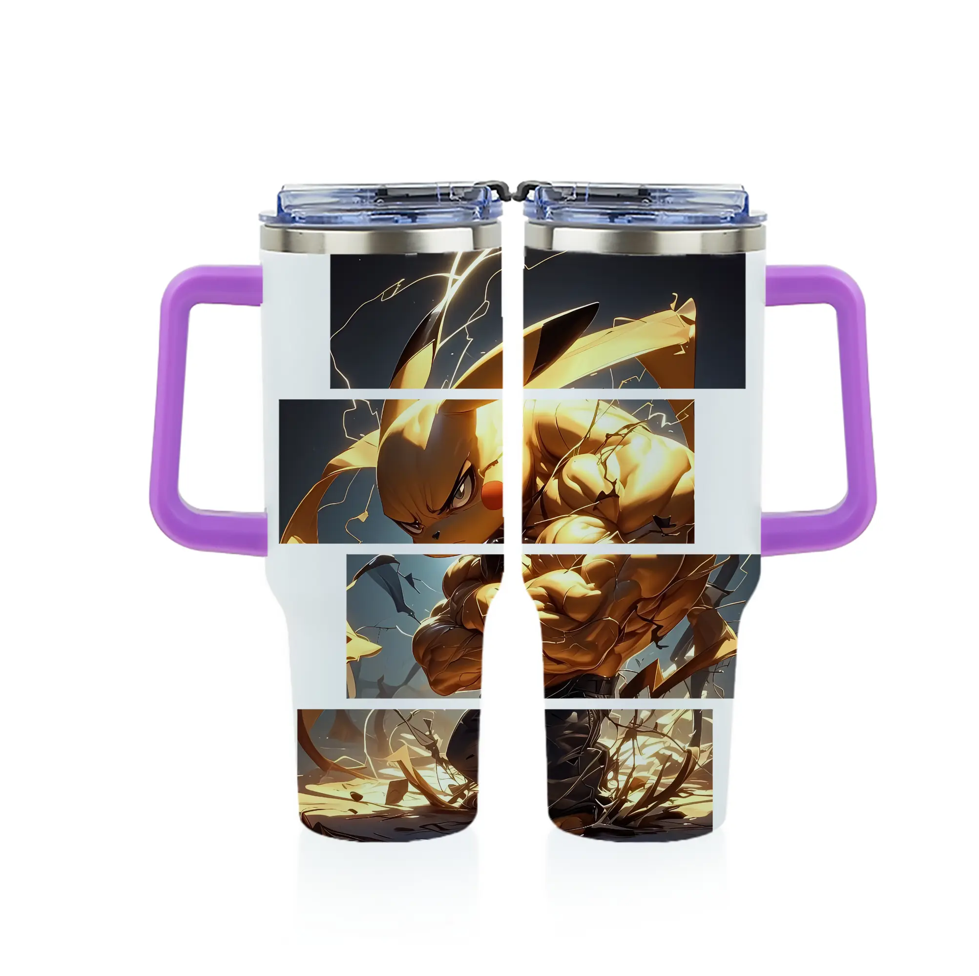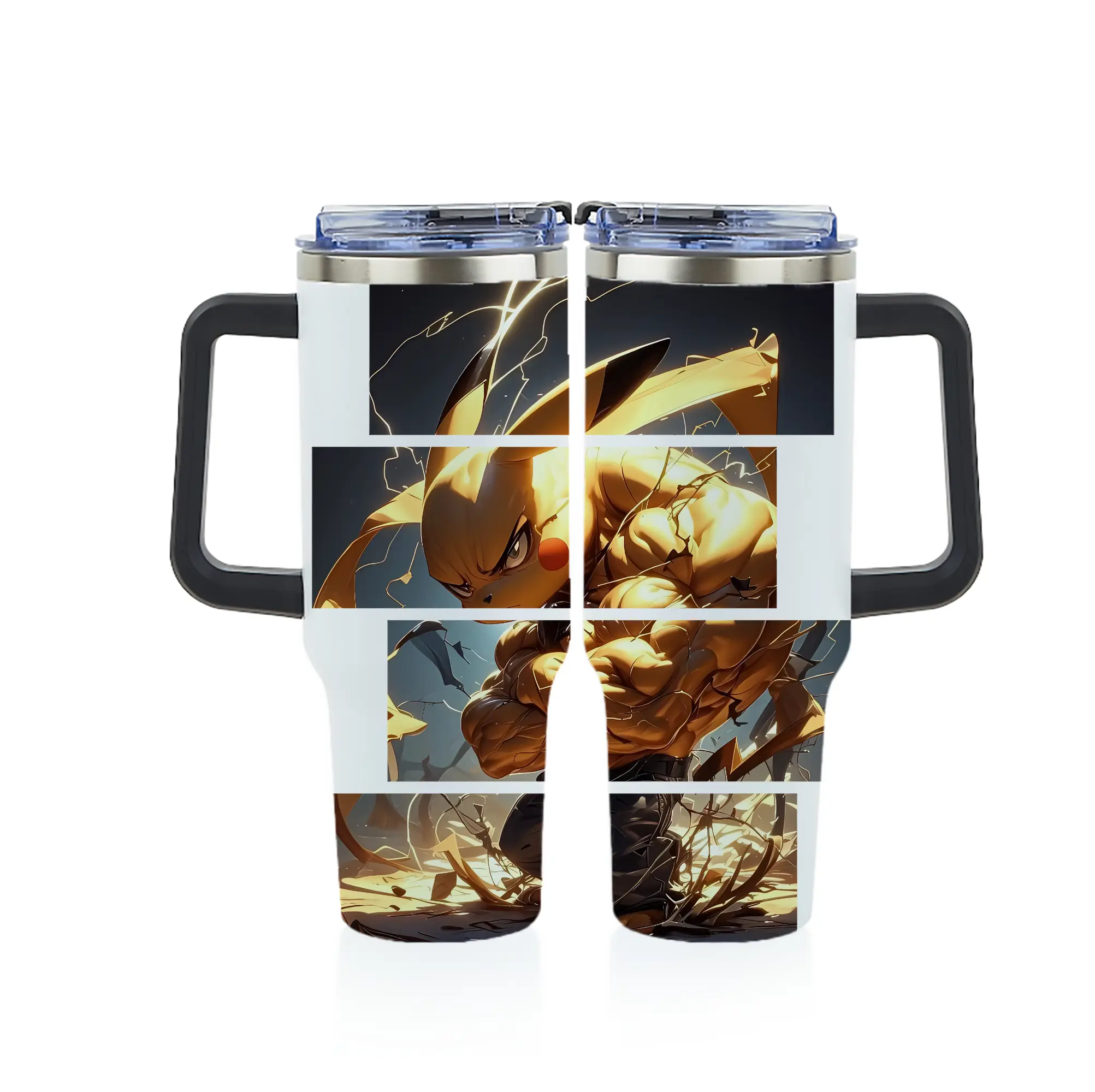 ポケモン グッズ,ピカチュウ - 1200mL フルプリント車用タンブラー ・ 304ステンレス 内側 ・ 201ステンレス 外側 ・ 保温 保冷 ・ 通勤 ドライブ アウトドア用