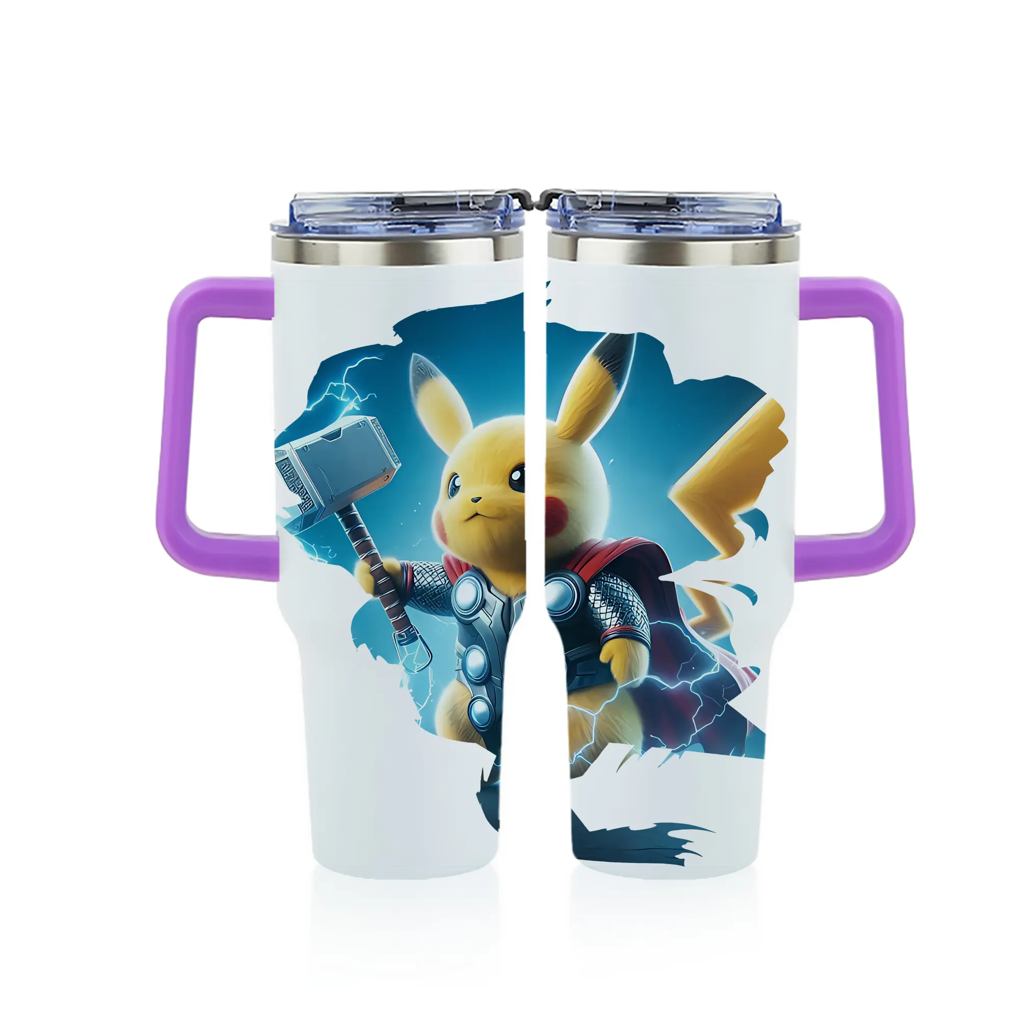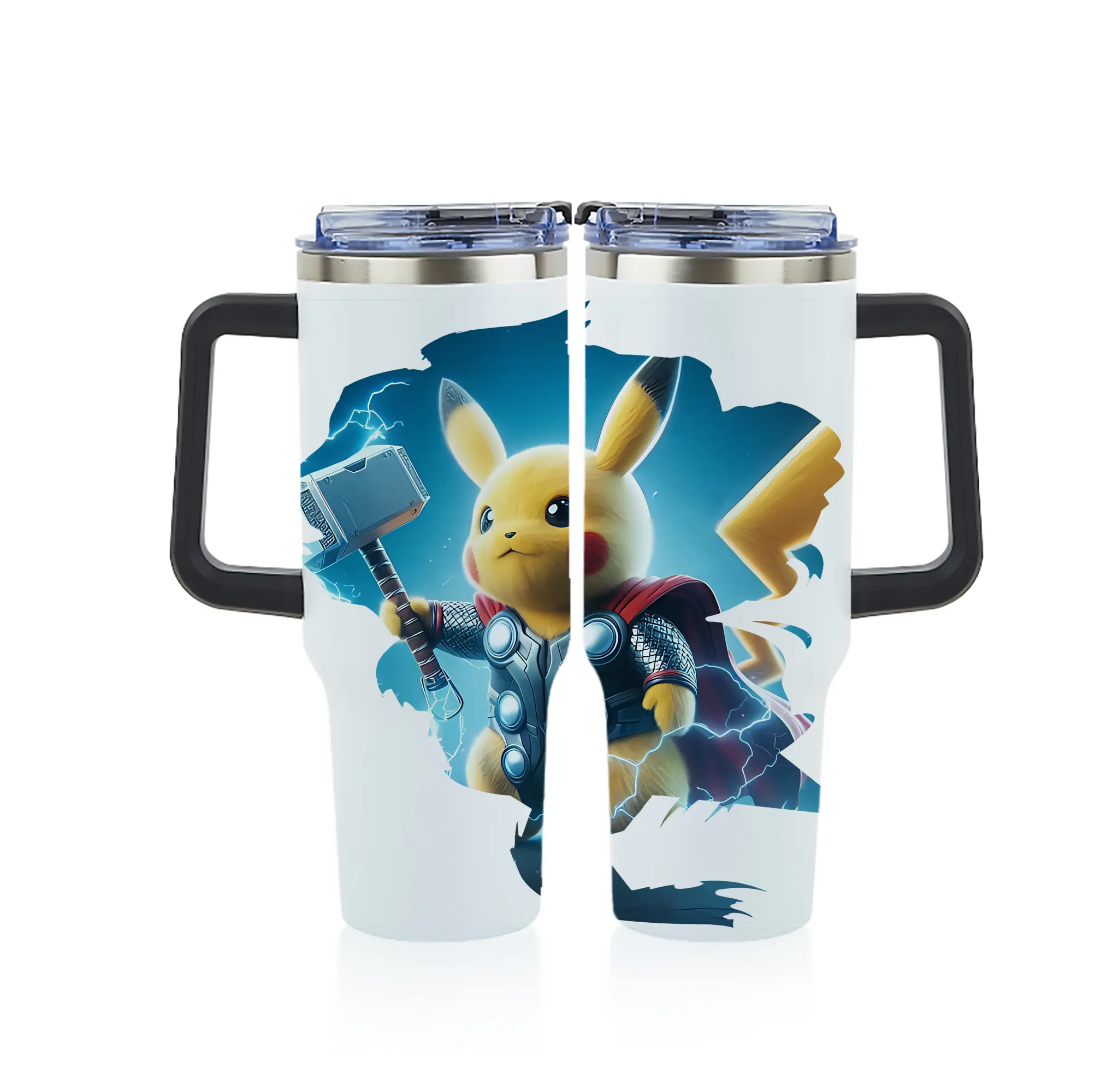 ポケモン グッズ,ピカチュウ - 1200mL フルプリント車用タンブラー ・ 304ステンレス 内側 ・ 201ステンレス 外側 ・ 保温 保冷 ・ 通勤 ドライブ アウトドア用