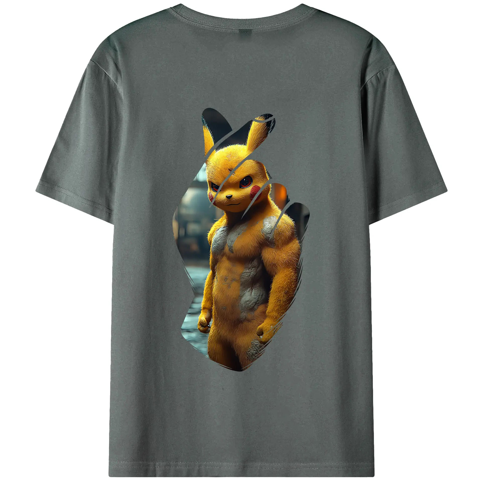 ポケモン グッズ,ピカチュウ - 綿100% ヴィンテージ風 半袖Tシャツ ・ 背面プリント ・ 柔らか肌触り ・ 通気性 快適 ・ スポーツ カジュアル 外出用